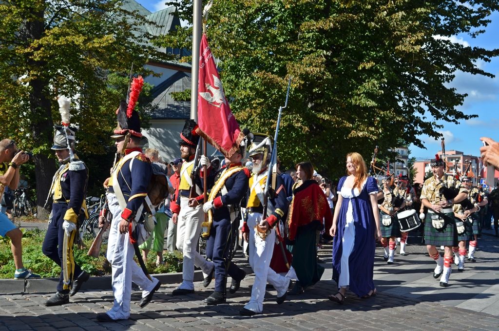 Wojskowy korowód przeszedł w sobotę ulicami miasta. Uczestniczyli w nim rekonstruktorzy biorący udział w tegorocznych Dniach Twierdzy. Na czele pochodu szła fenomenalna, częstochowska orkiestra Pipes & Drums. Grając wojskowe pieśni na swoich Wielkich Dudach Szkockich podawała rytm marszu dla ponad setki rekonstruktorów maszerujących w zwartym szyku. Ponadto podziwiać mogliśmy trzydziestotonowego kolosa- amerykański czołg średni Sherman M4, kawalerzystów ze Szczecinka i kilka innych pojazdów wojskowych.
