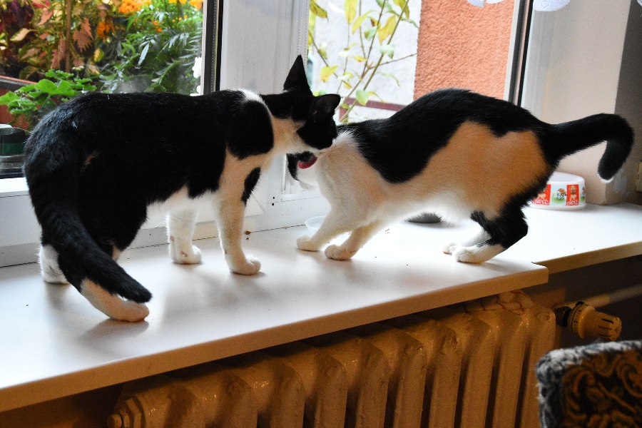 Kiara i Nala to sześciomiesięczne koteczki szukające domu. Kiara ma czarną bródkę, uwielbia drapanie po brzuszku zaś Nala ma biały paseczek między oczami i jest bardzo karną koteczką. Obie zostały uratowane i wykarmione butelką. Ich kocia mama zginęła, pozostawione bez opieki maleńkie pełzające kotki długo nie wytrzymałyby same na dworze. Zostały uratowane przed zjedzeniem przez drapieżniki więc można powiedzieć, że miały dużo szczęścia. Jednak te szczęście ich opuściło… Nikt do tej pory się w nich nie zakochał. Już mają 6 miesięcy, telefony milczą, nikt nie pyta, nikt ich nie chce… Są zdrowe, zadbane, nie mają pcheł, korzystają z kuwetki i są takie śliczne jednak dalej bez swojego stałego domku. Dobrze by było gdyby zostały adoptowane razem jednak jeśli ktoś chciałby dać domek tylko jednej z nich, jest też taka możliwość.