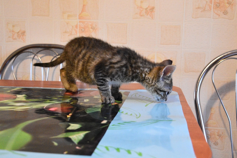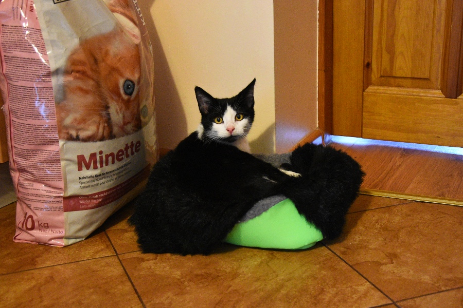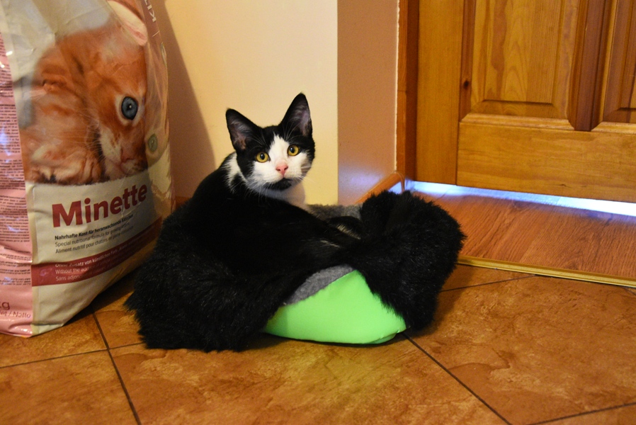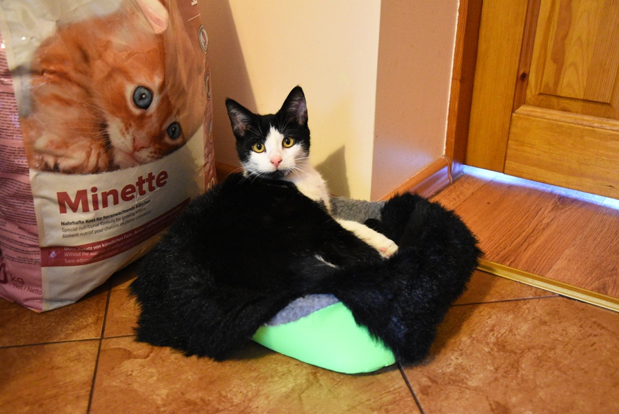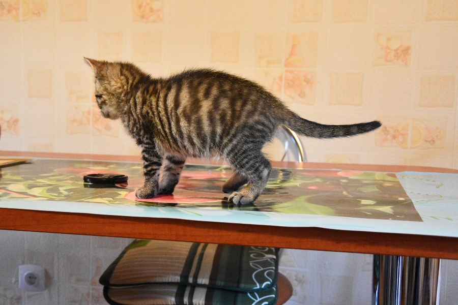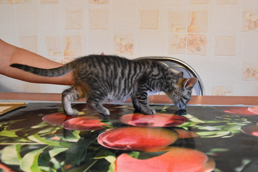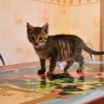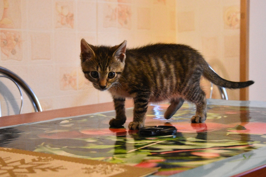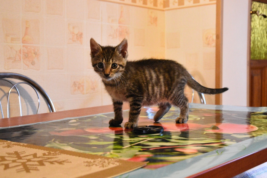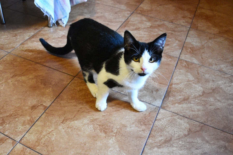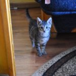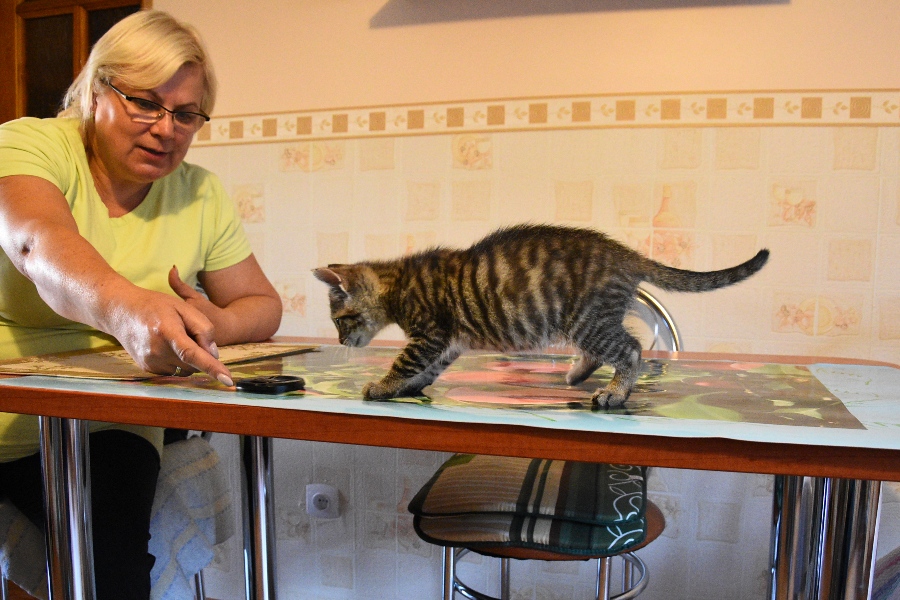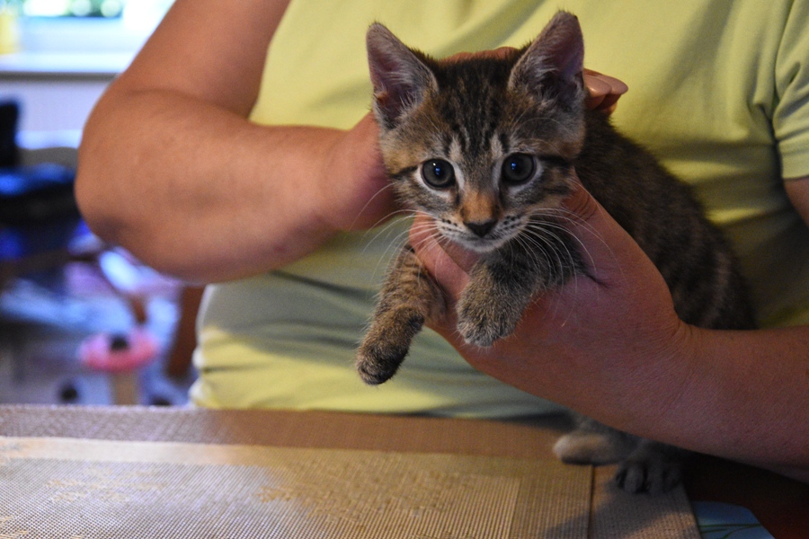 Na zdjęciach jest też przedstawiona malusieńka pręgowana koteczka Tigra. Podobnie jak dwie siostry została uratowana i wykarmiona. Mimo tak małego wieku przeszła już wiele. Wskutek pogryzienia straciła kawałeczek łapki jednak mimo tego defektu, koteczka doskonale sobie radzi. Biega, psoci jak każdy mały zdrowy kociak. Tigra również czeka na domek.