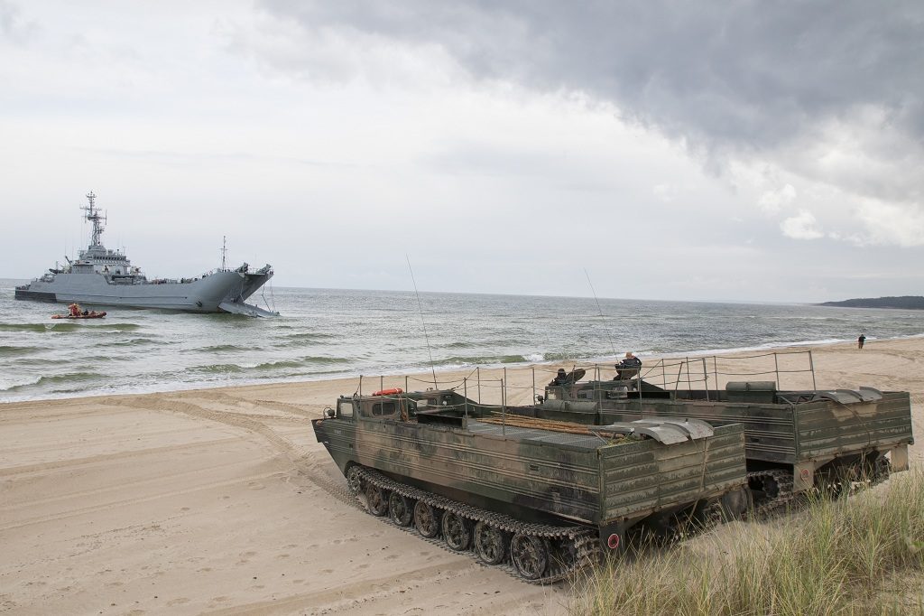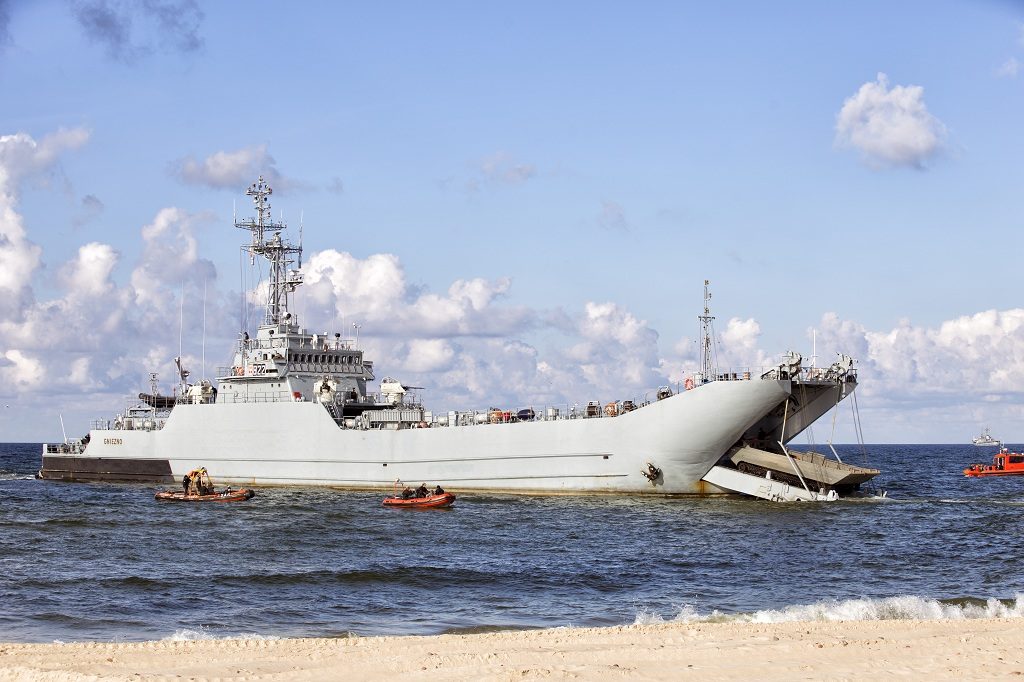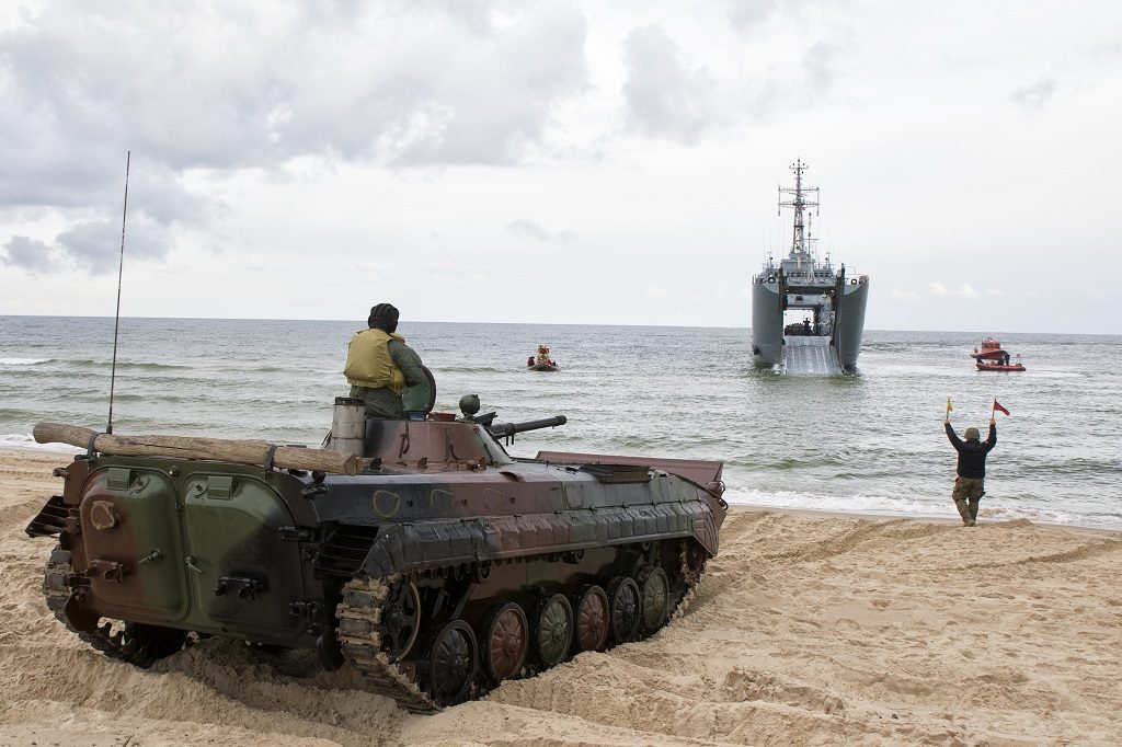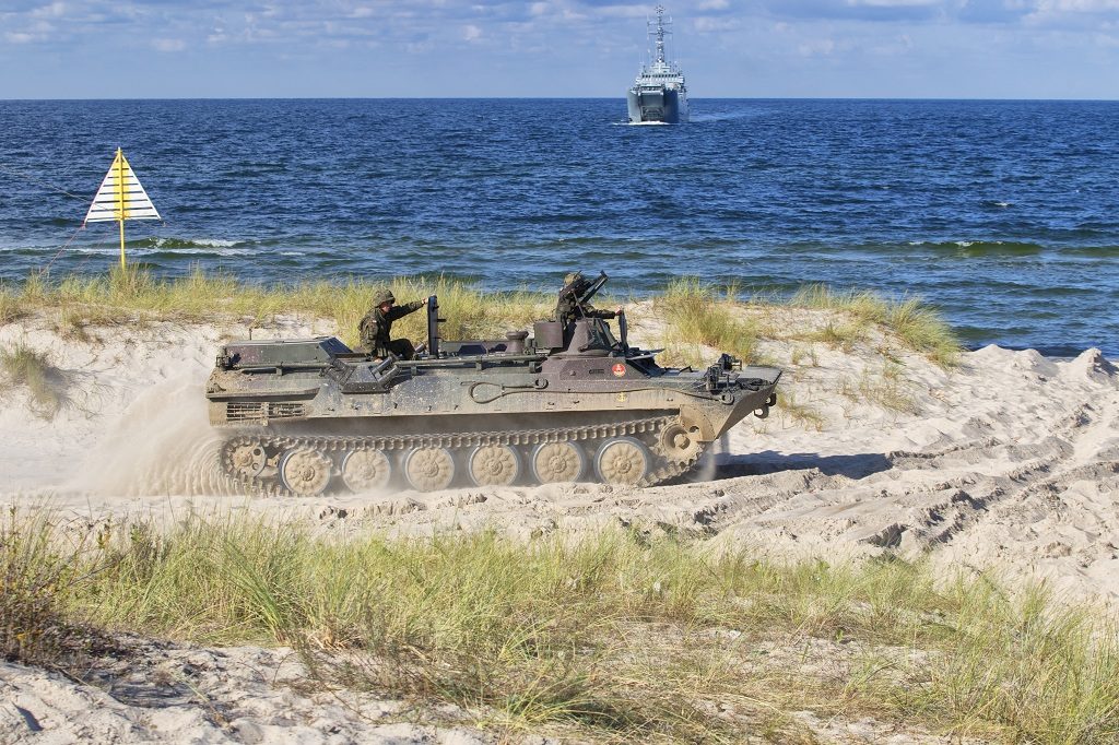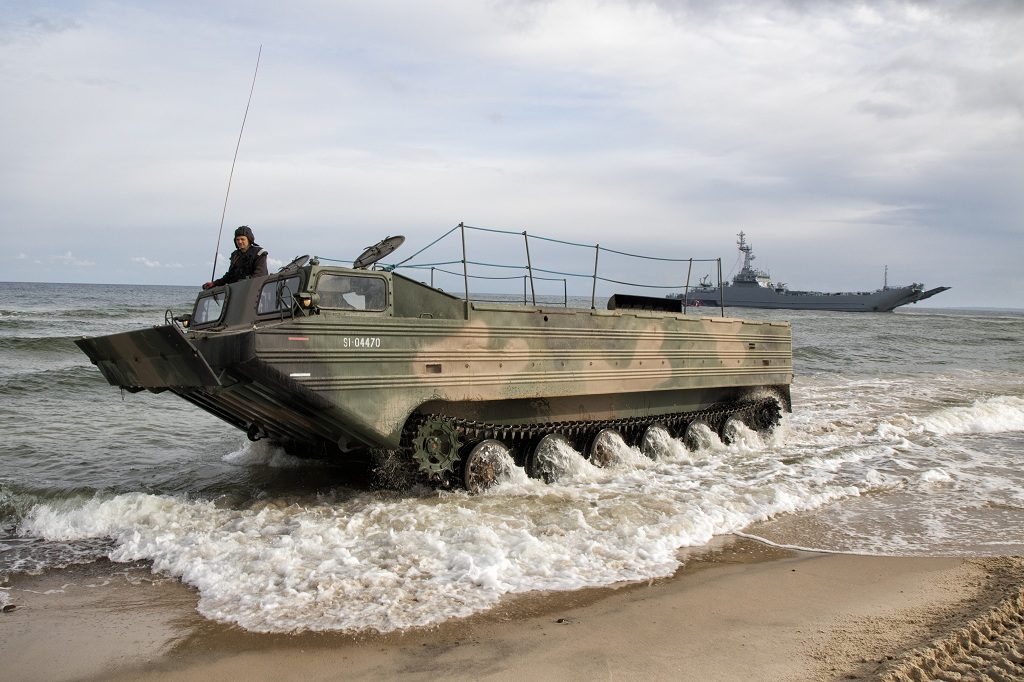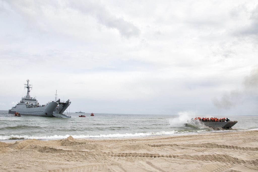 Podczas szkolenia w Ustce siły 8. Flotylli Obrony Wybrzeża współpracowały także z 16. Batalionem Zmechanizowanym (20. Bartoszycka Brygada Zmechanizowana). Na okręt transportowo – minowy ORP „GNIEZNO” ze składu 2. Dywizjonu Okrętów Transportowo – Minowych załadowano bojowe wozy piechoty (BWP). Aby dostać się na pokład musiały one najpierw brodzić w płytkich przybrzeżnych wodach, a następnie podpłynąć pod rampę oddalonego kilkadziesiąt metrów od brzegu okrętu. Marynarze z 8. Batalionu Saperów w celu realizacji załadunku zamknęli odcinek wybrzeża, rozstawili posterunki oraz wystawili nabieżnik – dwa trójkątne znaki wskazujące dowódcy „Gniezna” miejsce przeprowadzenia operacji załadunku sprzętu. Na plaży w gotowości do użycia były również pływające transportery samobieżne (PTS), a na morzu łodzie z nurkami. W razie sytuacji awaryjnej gotowe były podjąć interwencje. Okręt z załadowaną techniką wojskową oraz żołnierzami desantu skierował się ku Portowi Wojennemu w Gdyni gdzie zakończono współpracę 8.FOW z 16.BZ. Trening w załadunku sił 16. Batalionu Zmechanizowanego stanowił etap przygotowań do „Wargacza-16”, największych tegorocznych ćwiczeń 8. Flotylli Obrony Wybrzeża, bowiem siły batalionu pierwszy raz będą brały w nich udział.