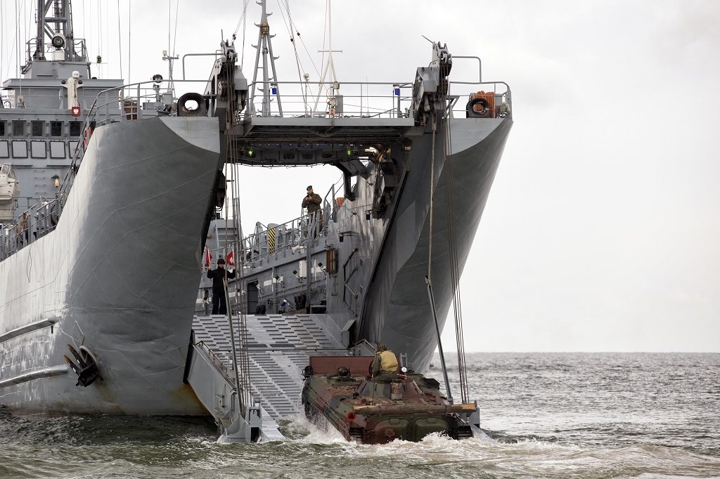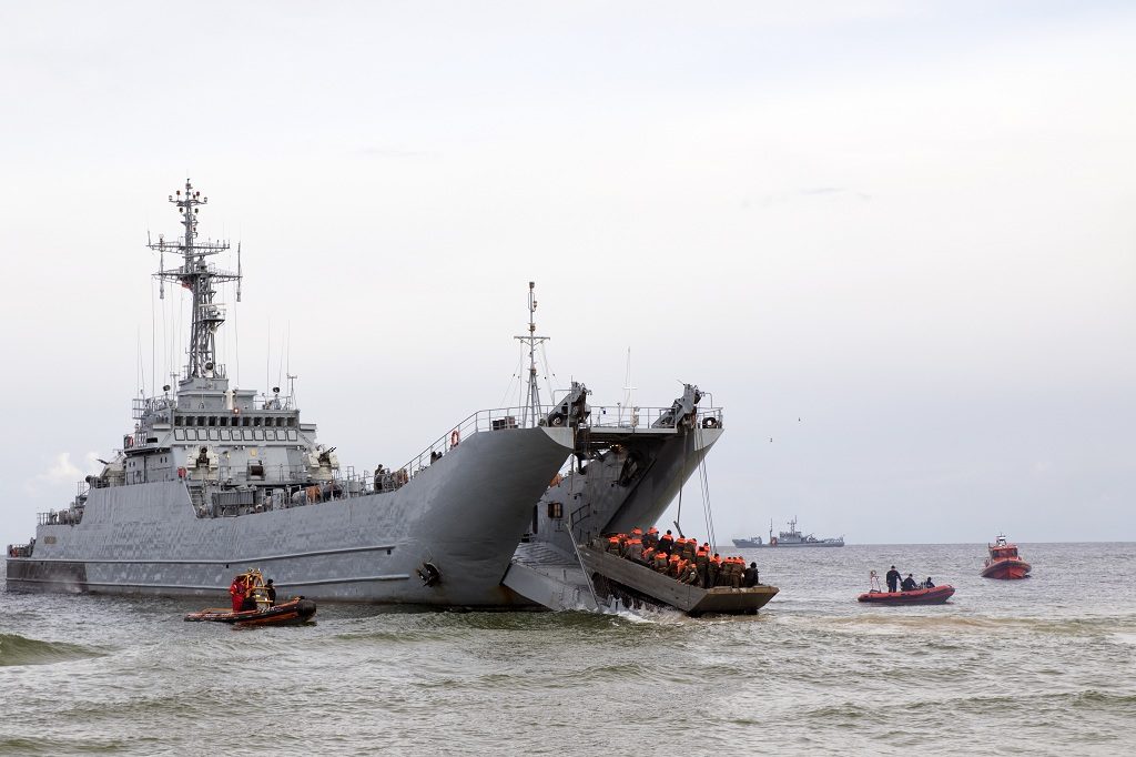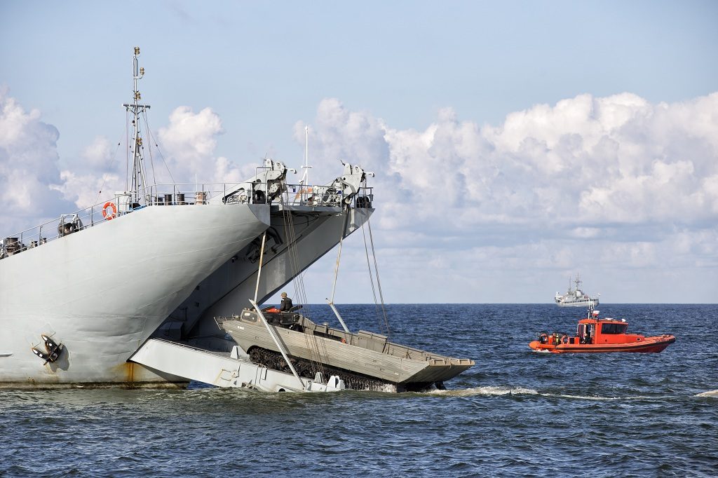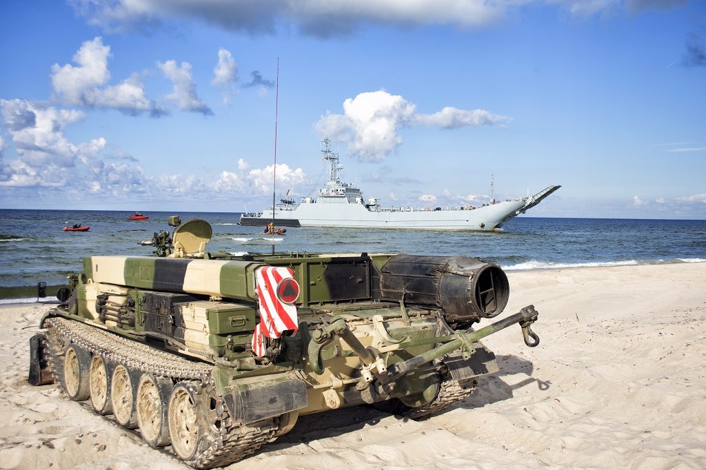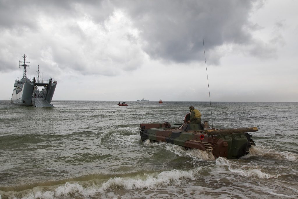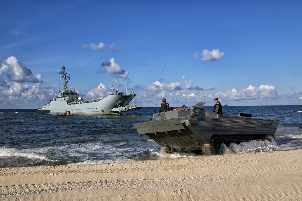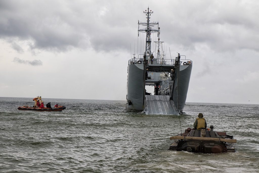 Podczas szkolenia w Ustce siły 8. Flotylli Obrony Wybrzeża współpracowały także z 16. Batalionem Zmechanizowanym (20. Bartoszycka Brygada Zmechanizowana). Na okręt transportowo – minowy ORP „GNIEZNO” ze składu 2. Dywizjonu Okrętów Transportowo – Minowych załadowano bojowe wozy piechoty (BWP). Aby dostać się na pokład musiały one najpierw brodzić w płytkich przybrzeżnych wodach, a następnie podpłynąć pod rampę oddalonego kilkadziesiąt metrów od brzegu okrętu. Marynarze z 8. Batalionu Saperów w celu realizacji załadunku zamknęli odcinek wybrzeża, rozstawili posterunki oraz wystawili nabieżnik – dwa trójkątne znaki wskazujące dowódcy „Gniezna” miejsce przeprowadzenia operacji załadunku sprzętu. Na plaży w gotowości do użycia były również pływające transportery samobieżne (PTS), a na morzu łodzie z nurkami. W razie sytuacji awaryjnej gotowe były podjąć interwencje. Okręt z załadowaną techniką wojskową oraz żołnierzami desantu skierował się ku Portowi Wojennemu w Gdyni gdzie zakończono współpracę 8.FOW z 16.BZ. Trening w załadunku sił 16. Batalionu Zmechanizowanego stanowił etap przygotowań do „Wargacza-16”, największych tegorocznych ćwiczeń 8. Flotylli Obrony Wybrzeża, bowiem siły batalionu pierwszy raz będą brały w nich udział.