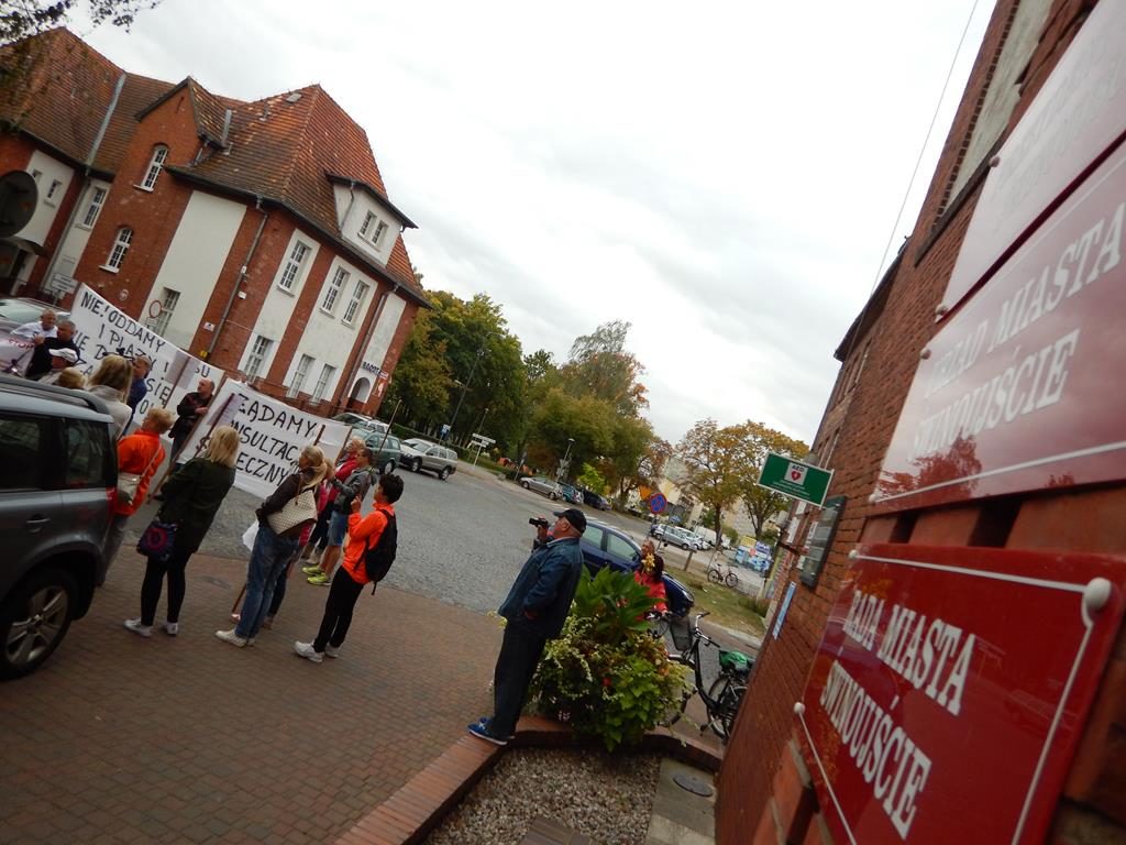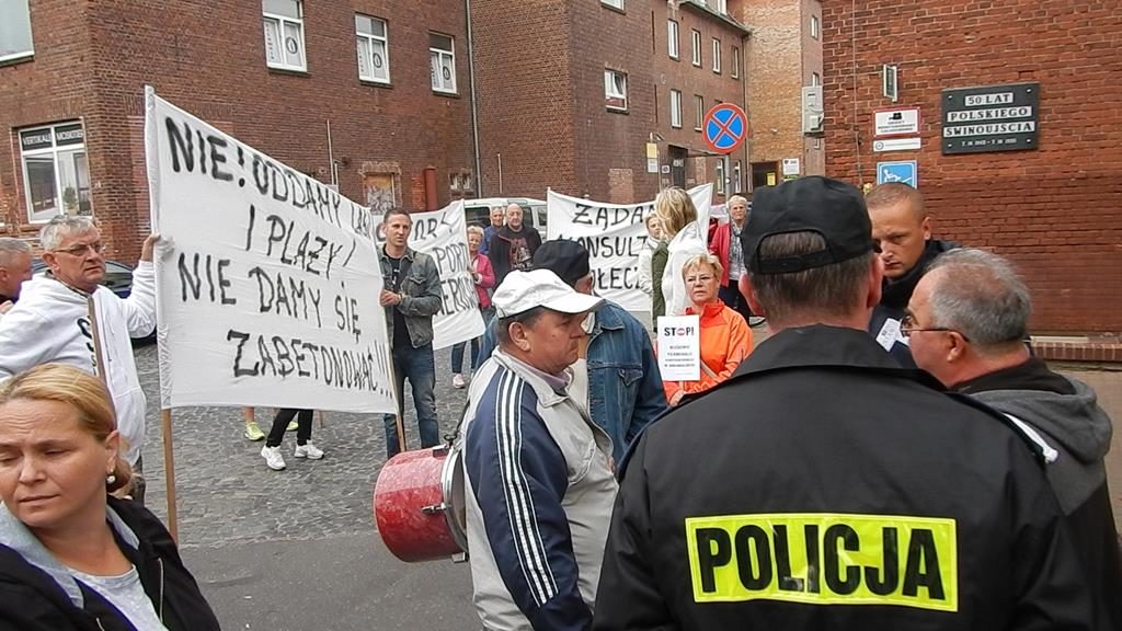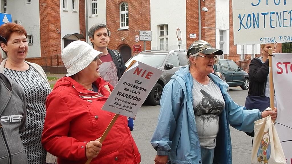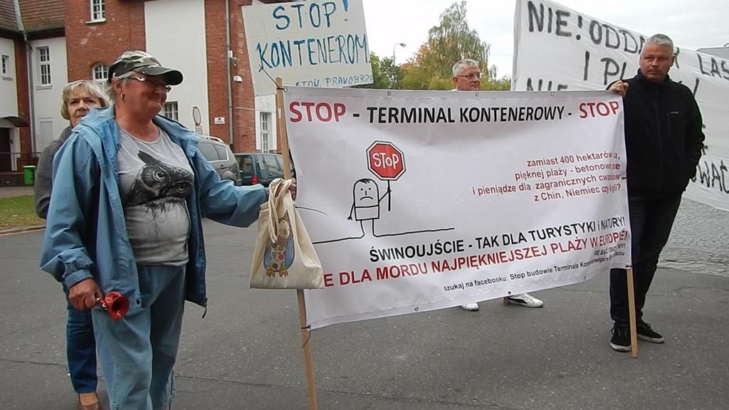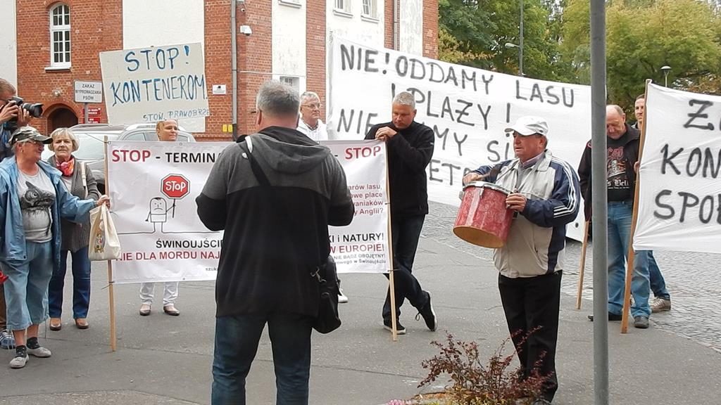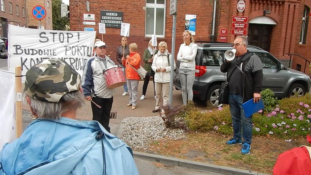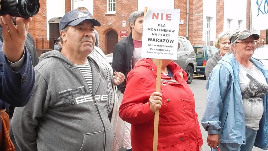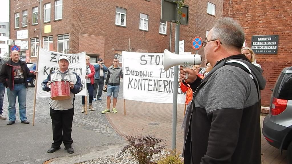 Przed czwartkową sesją Rady Miasta, przed budynkiem magistratu zebrała się grupa mieszkańców Świnoujścia, aby wyrazić swój sprzeciw planom budowy terminalu kontenerowego na Warszowie. Manifestanci mieli transparenty z hasłami: „Nie dla kontenerów na plaży Warszów”, bębny i gwizdki. Bogusław Mazur ze stowarzyszenia Prawobrzeże podkreślał, że mieszkańcy prawobrzeżnej dzielnicy nie zgadzają się na lokalizację terminala w zaproponowanej lokalizacji. Do protestujących wyszła przewodnicząca rady Joanna Agatowska. Z kolei prezydent Janusz Żmurkiewicz podczas sesji zapowiedział, że wystosuje wniosek do rady o referendum w tej sprawie. Jeżeli radni się zgodzą – wszyscy mieszkańcy miasta zadecydują, czy chcą budowy tej inwestycji w Świnoujściu.