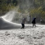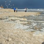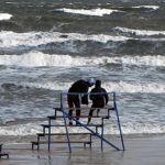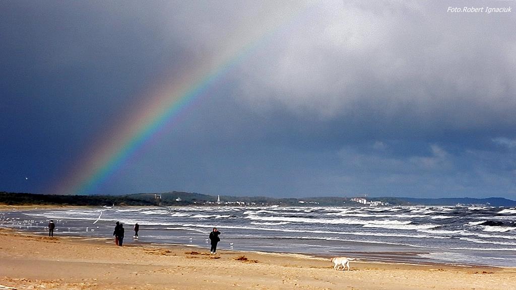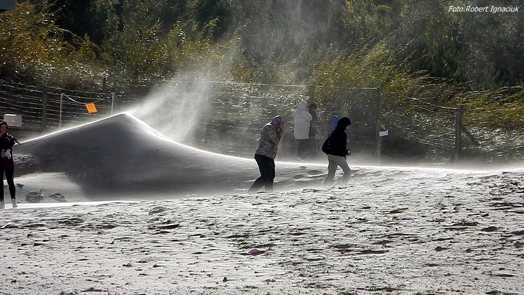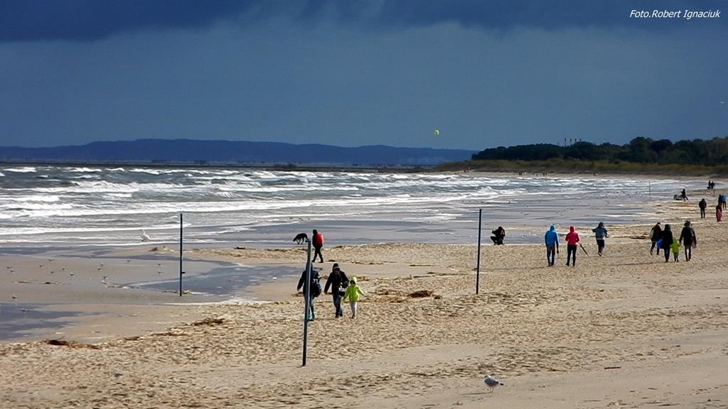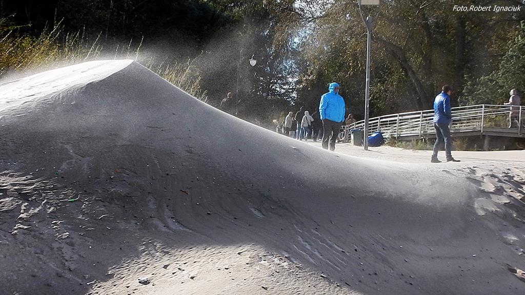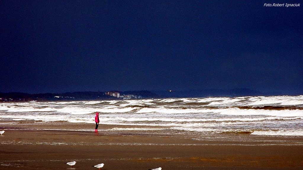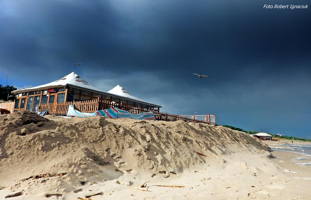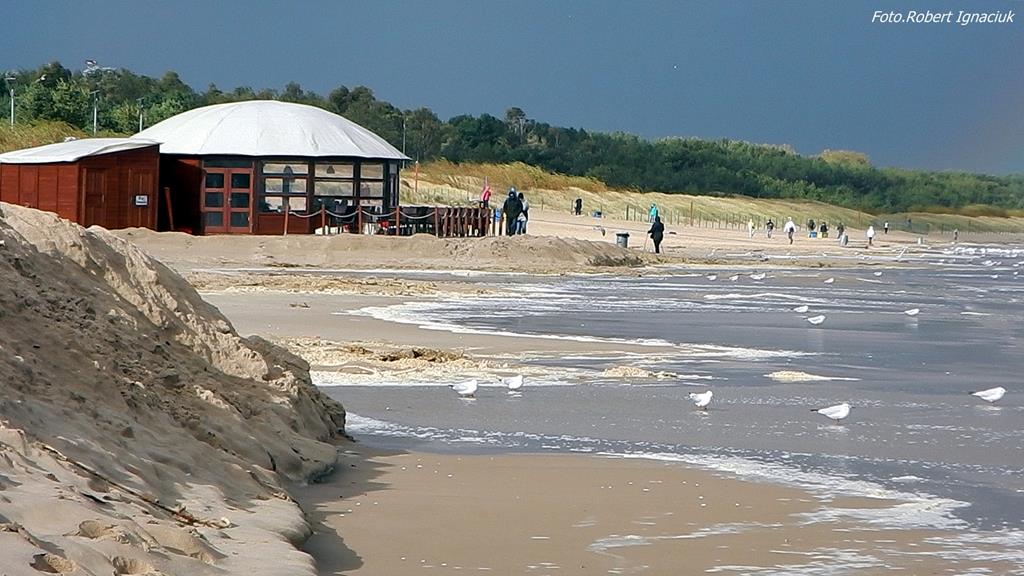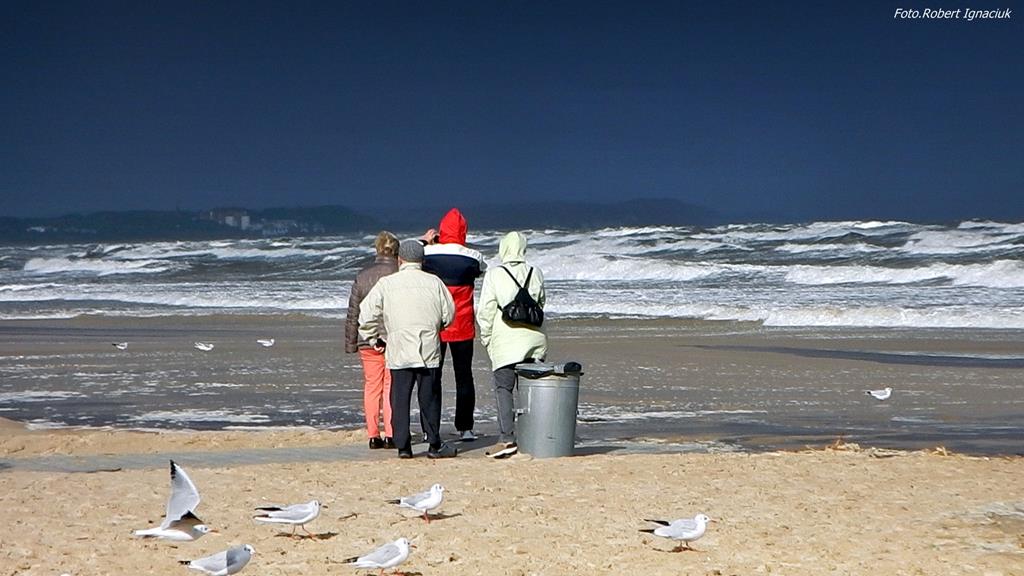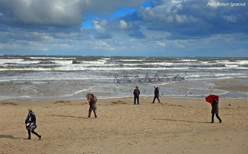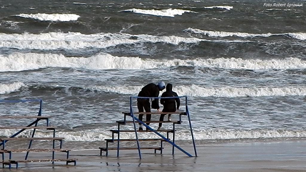 Od dwóch dni w Świnoujściu szaleje porywisty wiatr. Podmuchy dochodzą do 90 km/h. Na Bałtyku szaleje sztorm do 9 stopni w skali Beauforta. Morze jest bardzo wzburzone. Fale wdzierają się na plażę. Zalany jest falochron zachodni. Woda zalała połowę plaży. Większość wejść jest zasypana piaskiem. Spacerowicze mają problem z utrzymaniem równowagi.