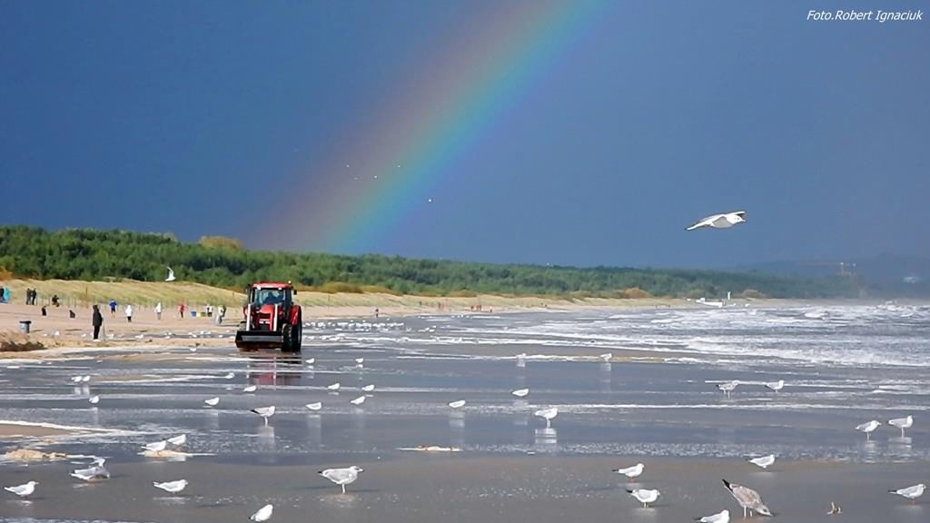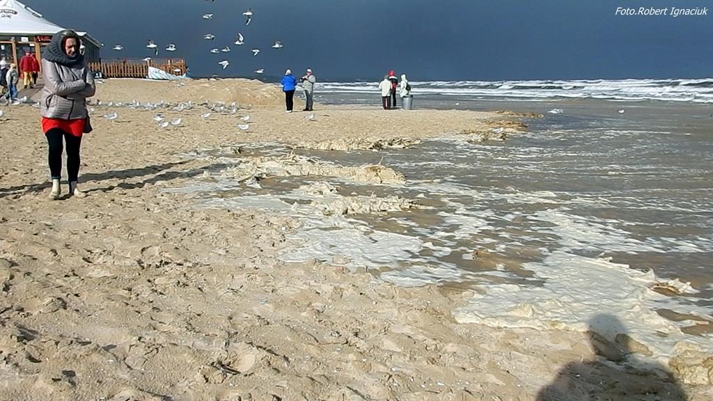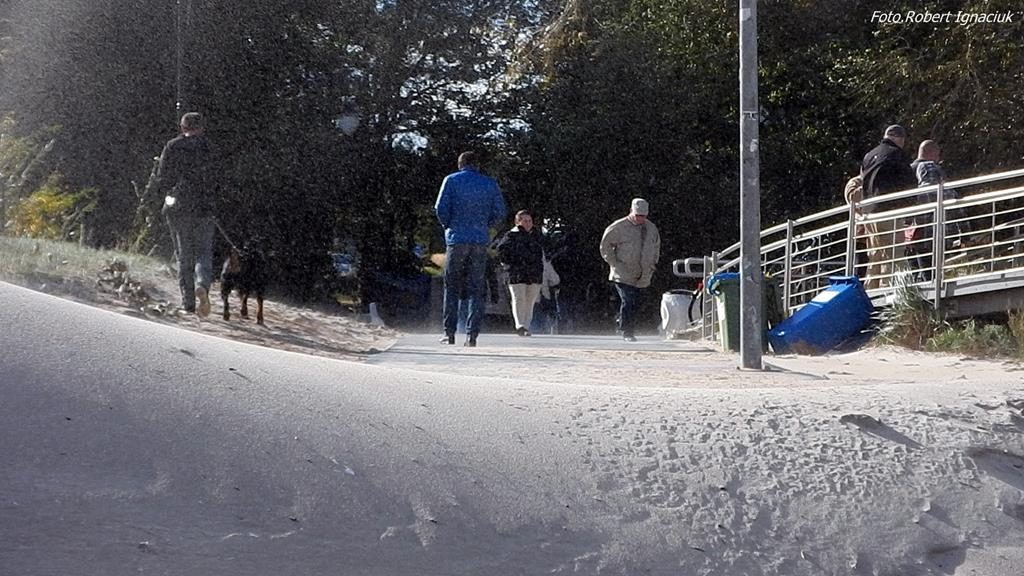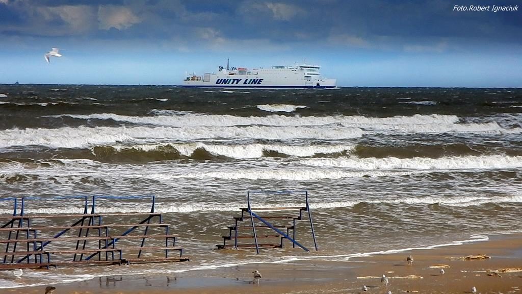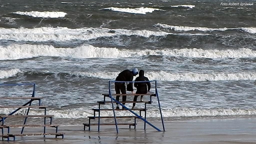 Od dwóch dni w Świnoujściu szaleje porywisty wiatr. Podmuchy dochodzą do 90 km/h. Na Bałtyku szaleje sztorm do 9 stopni w skali Beauforta. Morze jest bardzo wzburzone. Fale wdzierają się na plażę. Zalany jest falochron zachodni. Woda zalała połowę plaży. Większość wejść jest zasypana piaskiem. Spacerowicze mają problem z utrzymaniem równowagi.