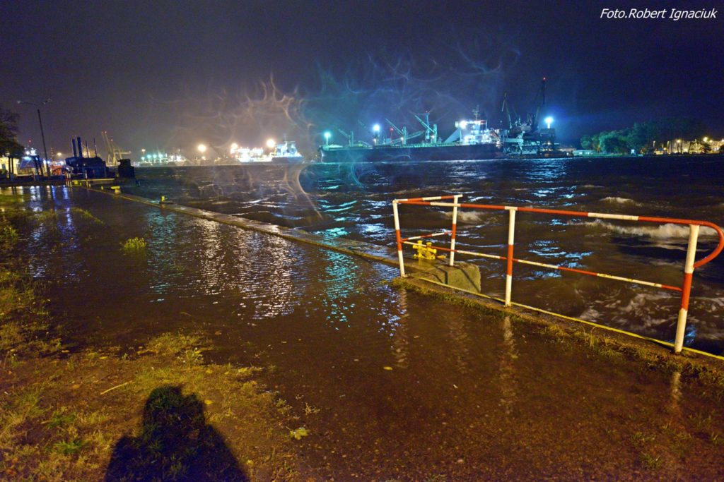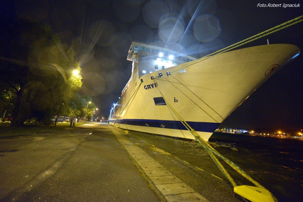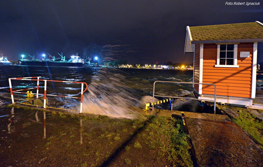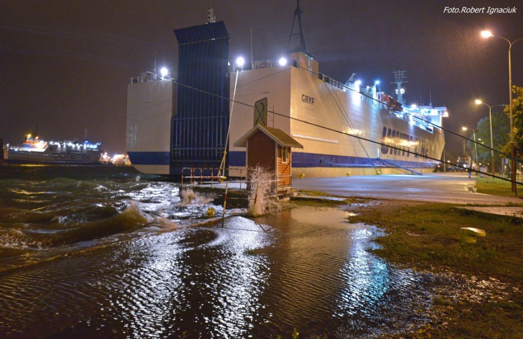 Spada poziom wody w kanale portowym. O 6 rano na wodowskazie IMGW wskazywał 587 cm. To oznacza, że stan alarmowy przekroczony jest o 7 centymetrów. Najwyższe wskazanie miał w środę o godzinie 16. Wówczas stan alarmowy był przekroczony o 25 centymetrów. Meteorolodzy ostrzegają przed wiatrem północno-wschodnim 6 do 7, w porywach 8, początkowo lokalnie porywy 9 w skali B. Silny wiatr będzie powodował tzw. cofkę. Przeprawa promowa funkcjonuje bez zakłóceń. Kursują promy Bielik i Karsibór. Z powodu wysokiego stanu wody, załadunek samochodów może trwać nieco dłużej.
