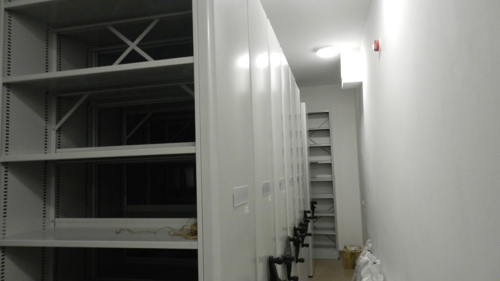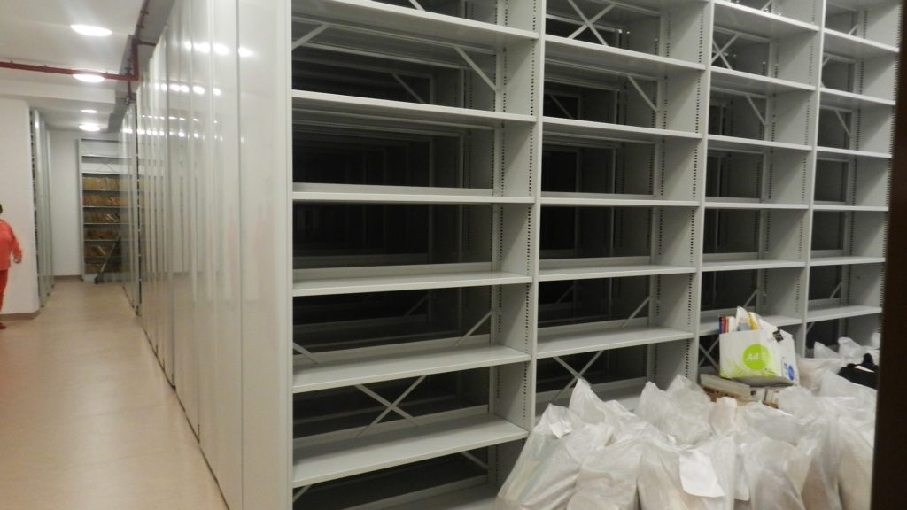 Wszystkie regały są kompaktowe. Każdy taki kompakt składa się z zestawu regałów zamontowanych na ruchomych podstawach przesuwających się po szynach. Dokładnie 34 regały na akta kosztowały 110 tys. złotych.