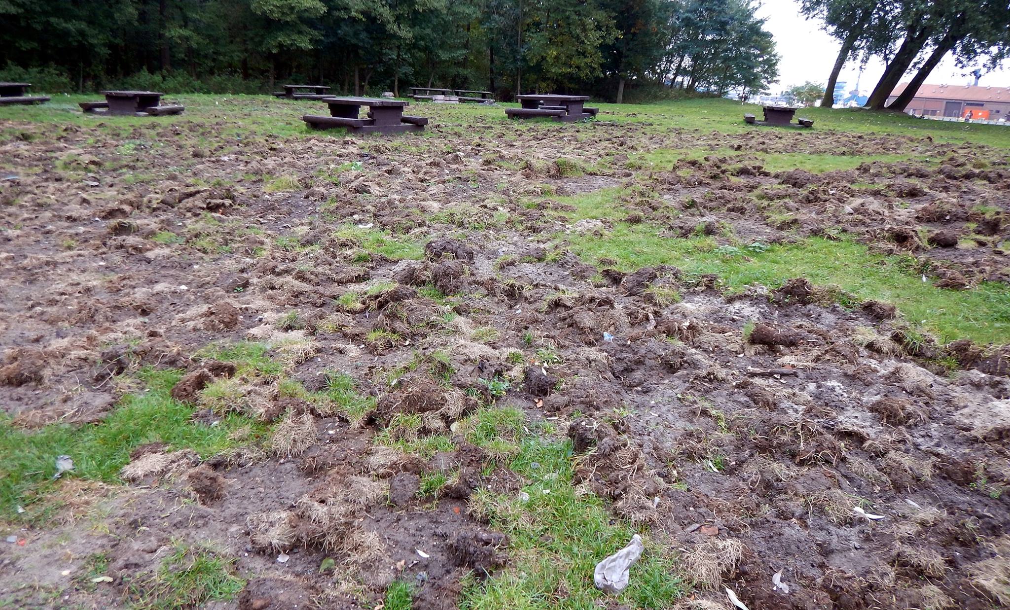 Coraz większe spustoszenie robią dziki żyjące w Świnoujściu. Kilka dni temu, w poszukiwaniu jedzenia, dosłownie przeorały trawnik na polu do grillowania w Parku Zdrojowym. Jeżeli nie podejmie się szybko redukcji populacji dzików w naszym mieście, wkrótce tak będą wyglądać zieleńce i kwietniki w parkach i mieście.