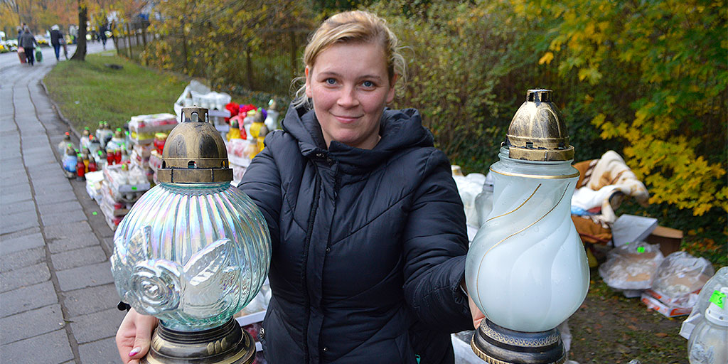 – Cena zależy od wielkości. W tym roku nowością są lampiony w kolorze białym, ale mleczne. Wyglądają bardzo ładnie na nagrobku. Ludzie kupują także te kolorowe – mówi pani Lucyna.