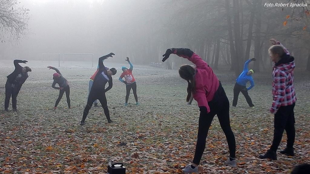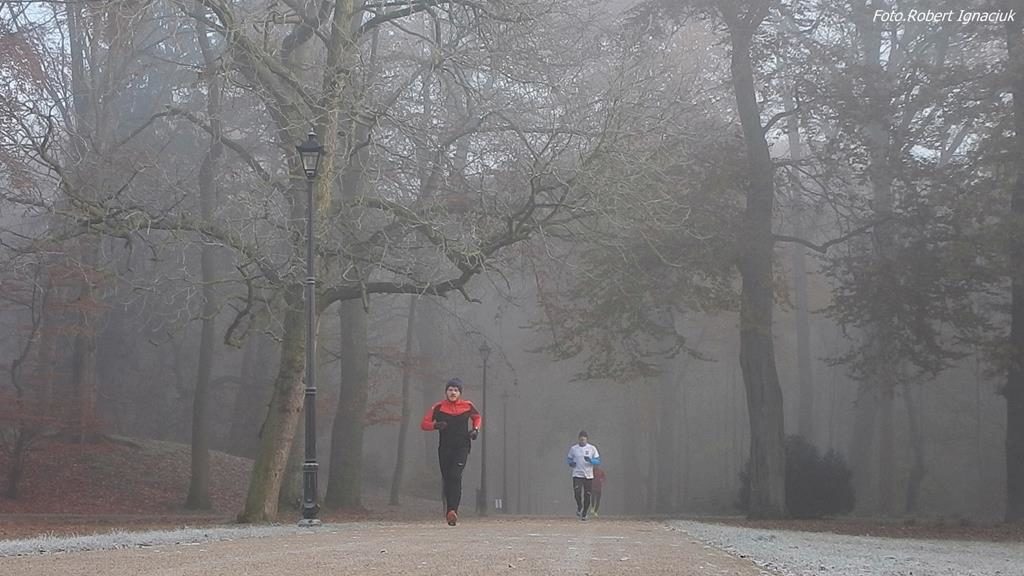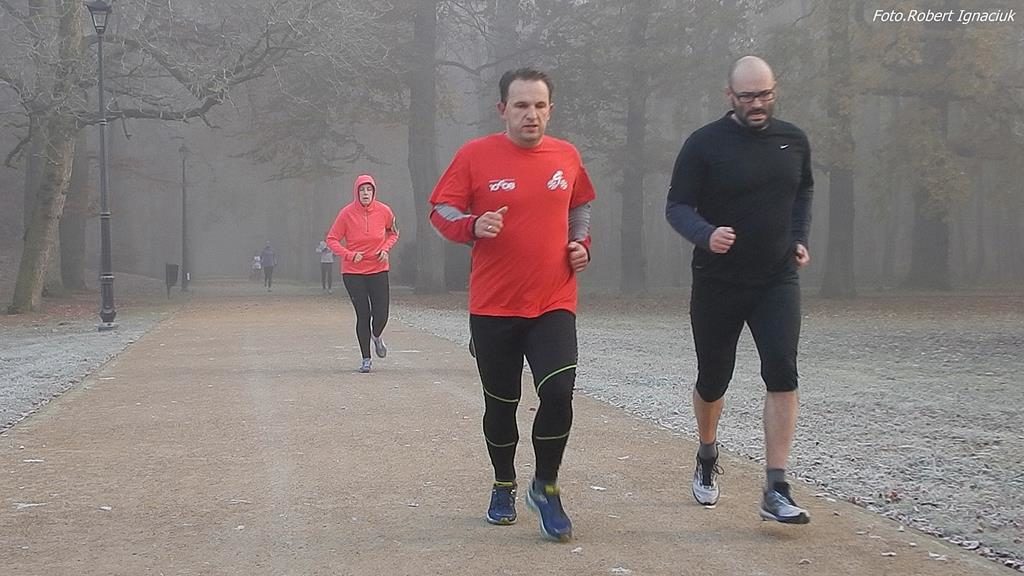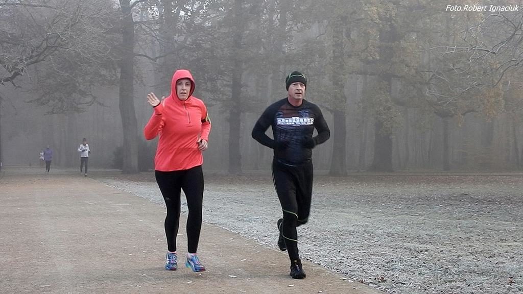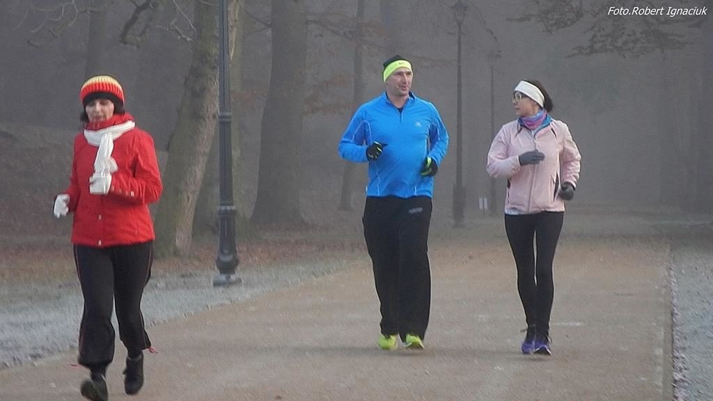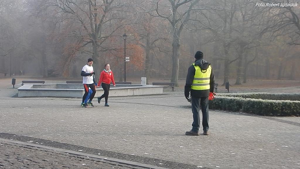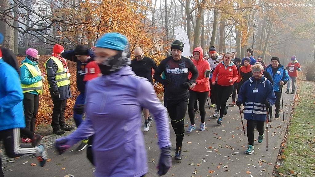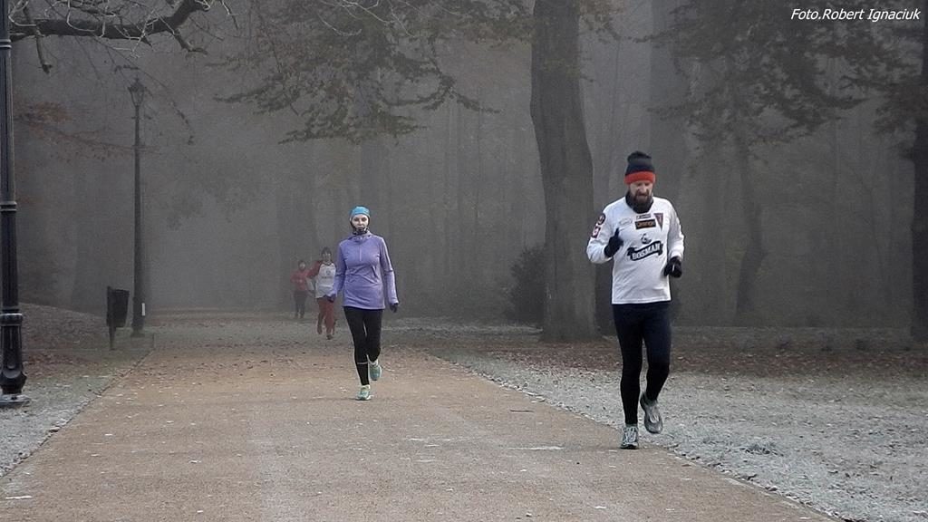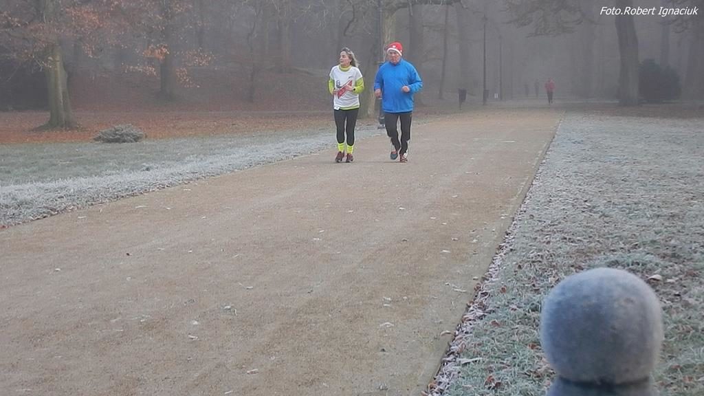 Pomimo mroźnej aury do Parku Zdrojowego o poranku przyszło 15 wolontariuszy i 52 biegaczy. Rozgrzewkę przed biegiem poprowadziły profesjonalnie – młode zawodniczki MKL Maraton – Asia Zając i Gabrysia Zienko. Bieg odbył się w bardzo nastrojowej mglistej aurze, wśród oszronionych drzew i krzewów. Może mniej romantycznie było bliżej ziemi, bo jak mróz to i ślisko bywa, ale wszyscy bez uszczerbku na zdrowiu, za to w doskonałym humorze przekroczyli linię mety.