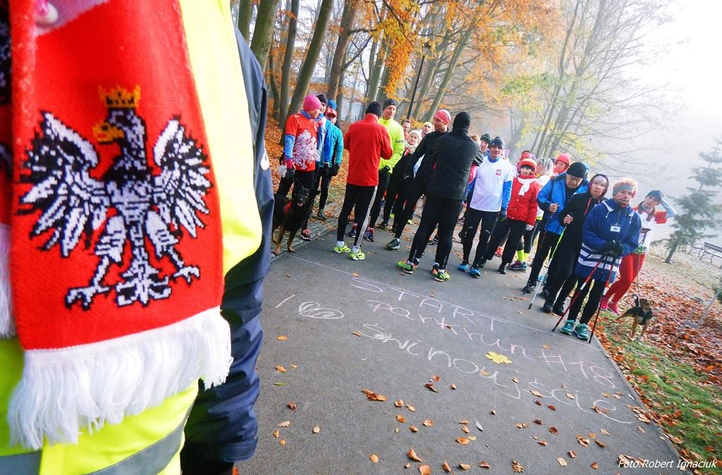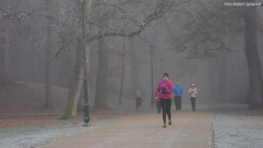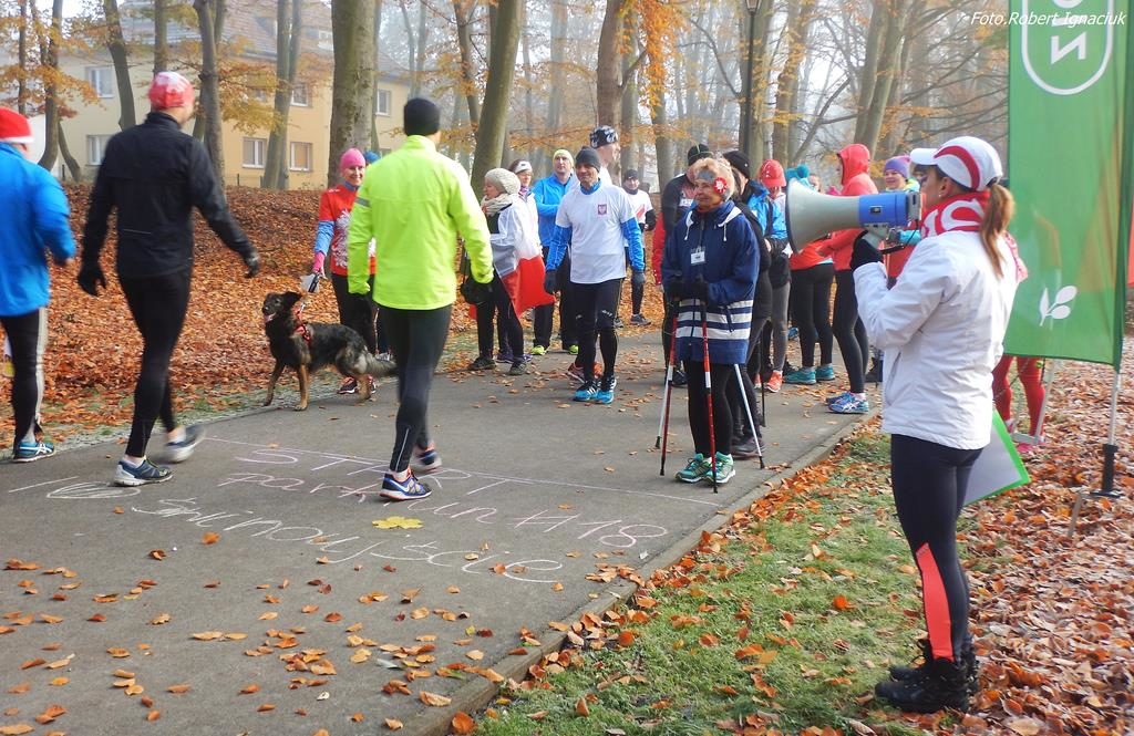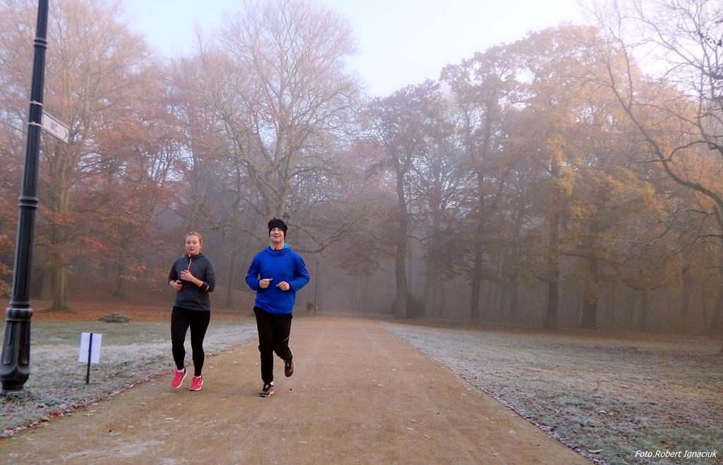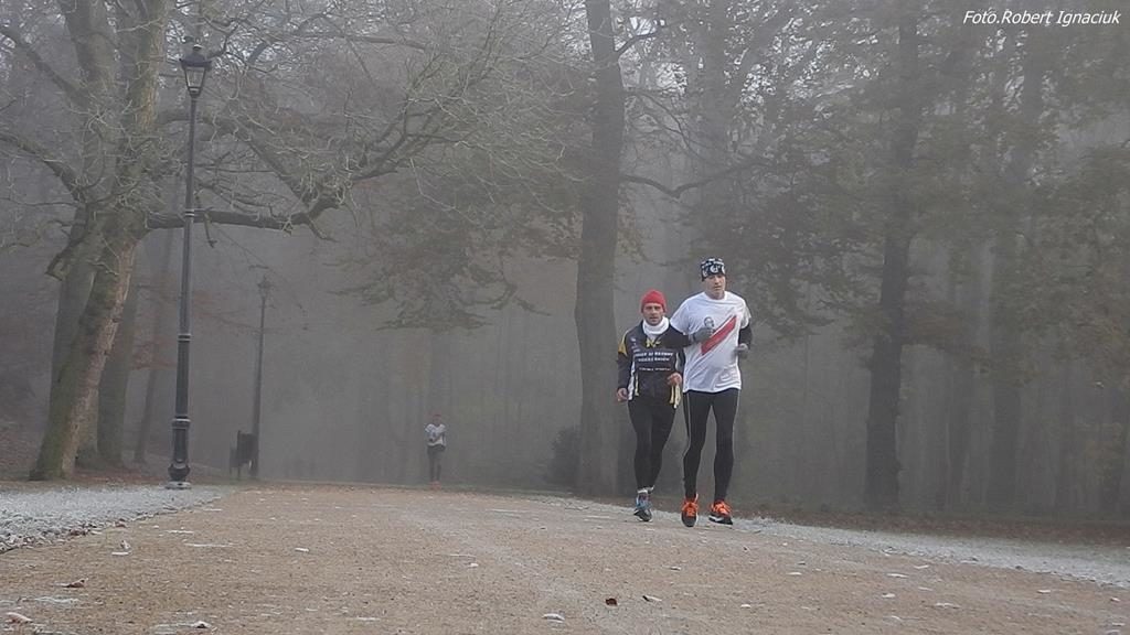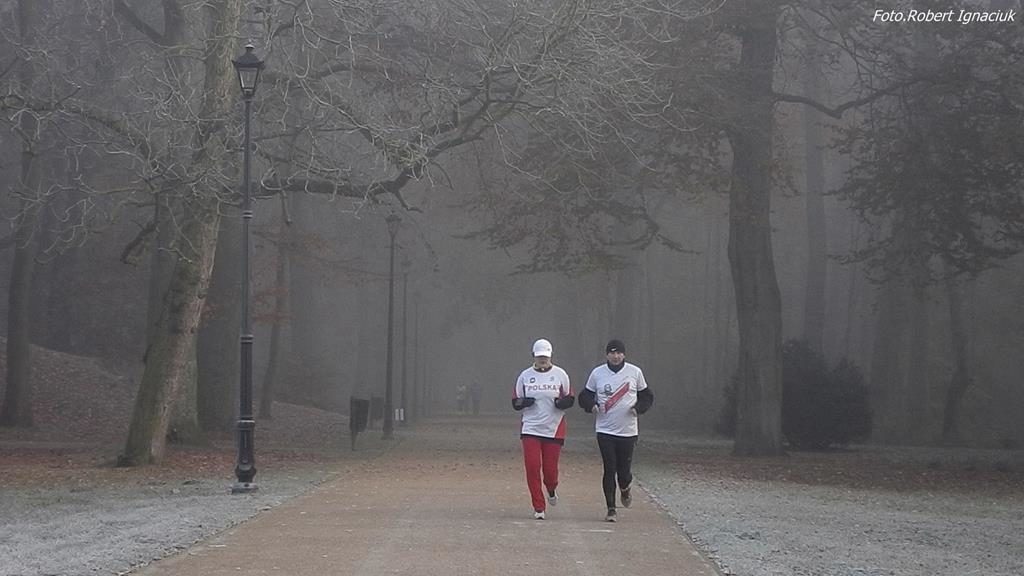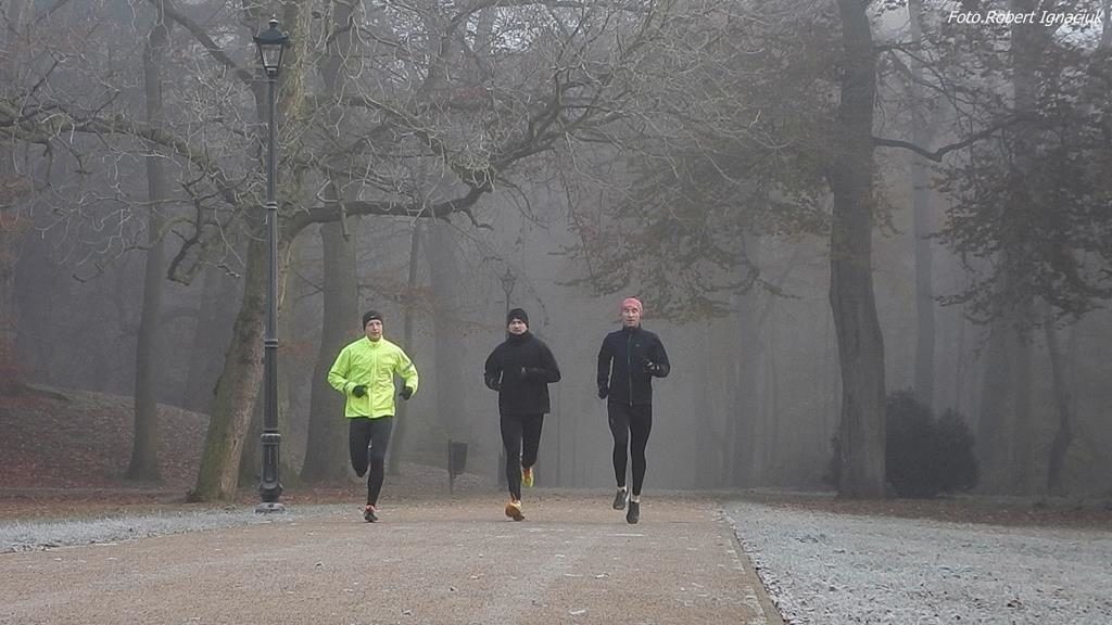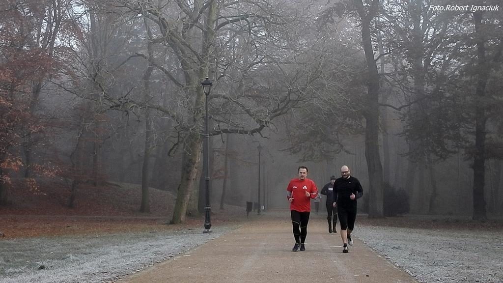Pomimo mroźnej aury do Parku Zdrojowego o poranku przyszło 15 wolontariuszy i 52 biegaczy. Rozgrzewkę przed biegiem poprowadziły profesjonalnie – młode zawodniczki MKL Maraton – Asia Zając i Gabrysia Zienko. Bieg odbył się w bardzo nastrojowej mglistej aurze, wśród oszronionych drzew i krzewów. Może mniej romantycznie było bliżej ziemi, bo jak mróz to i ślisko bywa, ale wszyscy bez uszczerbku na zdrowiu, za to w doskonałym humorze przekroczyli linię mety.