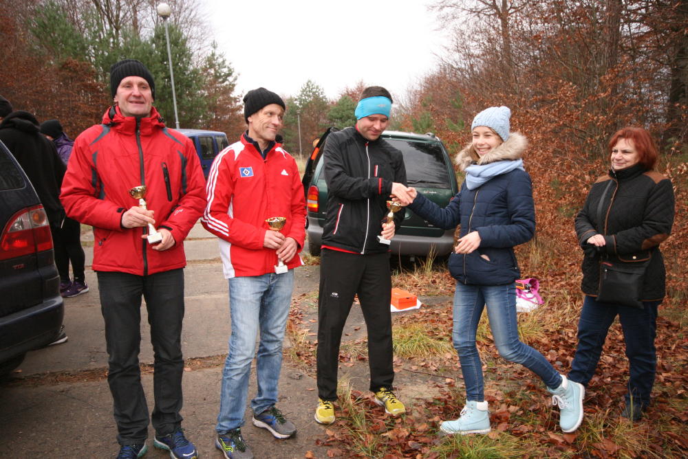 Zdobywcy trzech pierwszych miejsc wśród pań i panów otrzymali z rąk fundatorki, córki śp. Pawła (Agnieszki Otockiej, która przebiegła jedno okrążenie jeziora) puchary. Wręczały je wnuki ( Werka i Patryk) oraz żona Pawła (Urszula). Zawody sędziowała Samanta, a obsługę foto sprawował Sebastian Błaż. Wśród zawodników znajdowało się trzech spośród licznej świnoujskiej reprezentacji w maratonie w Atenach niewiele dni wcześniej – Kamil Mazur,Jacek Giba i Andrzej Skrzypiec.