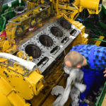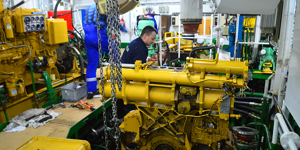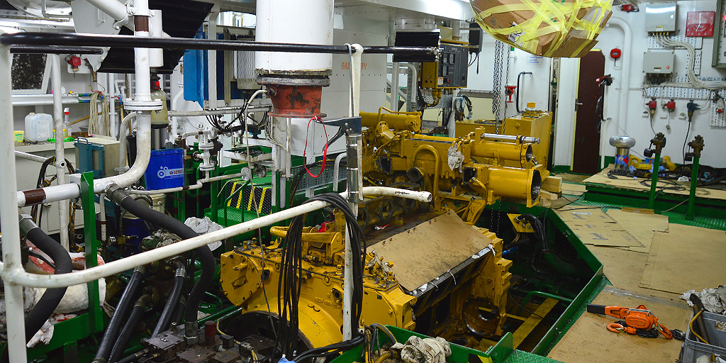 Żółty silnik Catepillar 3508 można spotkać w wielu promach, statkach wycieczkowych, łodziach rybackich i patrolowych, a nawet statkach towarowych. Taki właśnie jest zamontowany na świnoujskich Bielikach. Od kilku dni,  remontem jednego z nich zajmuje się firma MG CAT SERVICE z Gdyni. To standardowa procedura wykonywana po osiągnięciu odpowiedniej ilości godzin pracy.