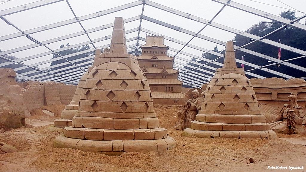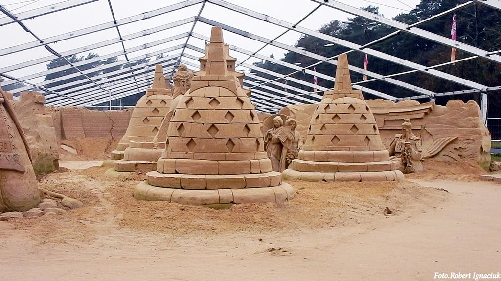 Każdego roku ekspozycja jest zmieniana. W tym roku prezentowane są najciekawsze budowle z całego świata. Z piasku wyrzeźbiono m.in. Bramę Brandenburską (Niemcy), Faraona (Egipt), bogactwo Inków, Azteków i Majów.