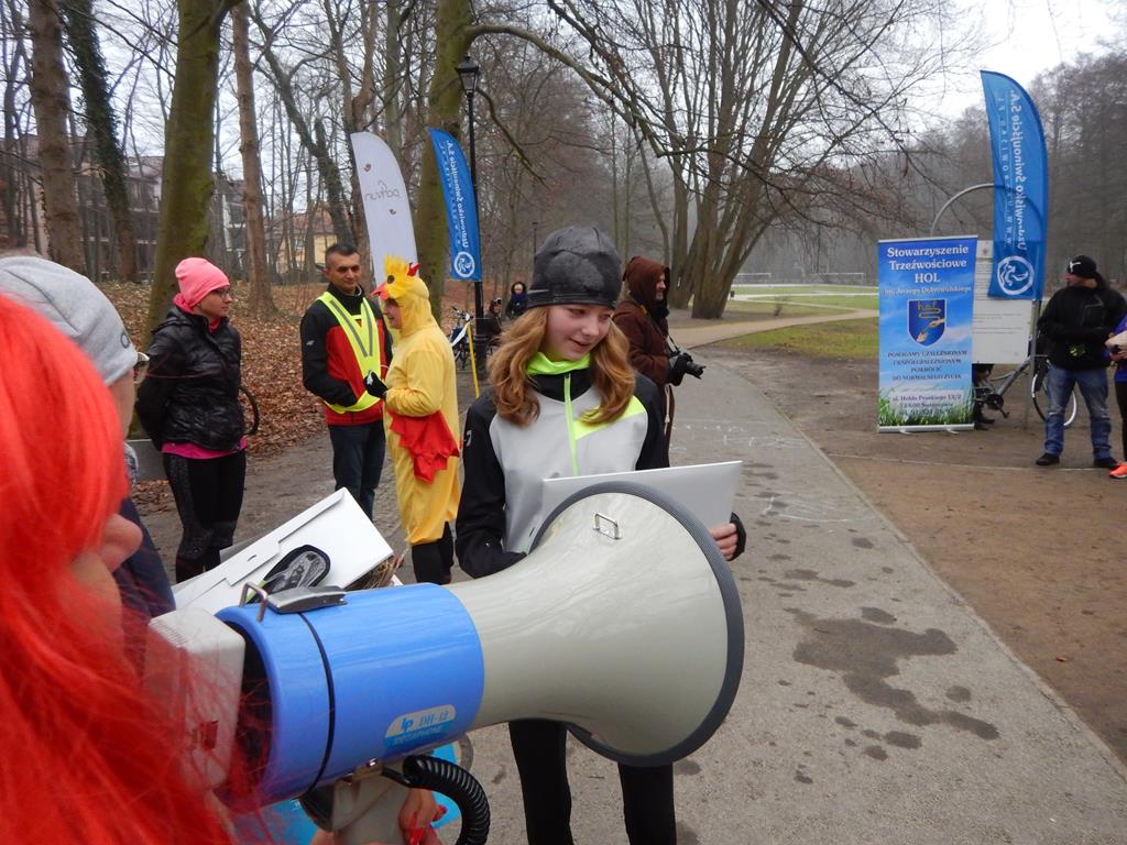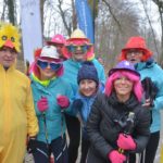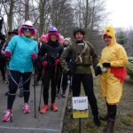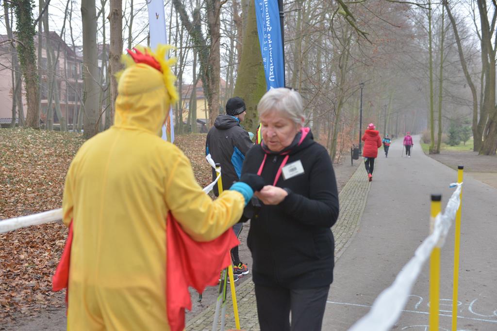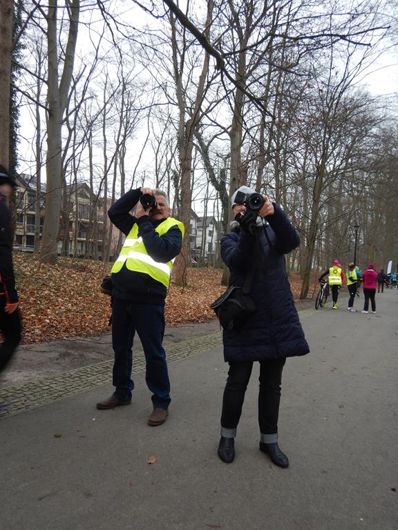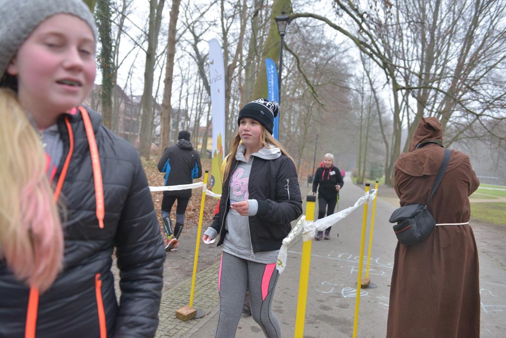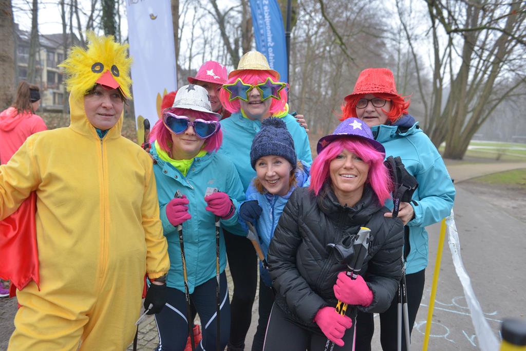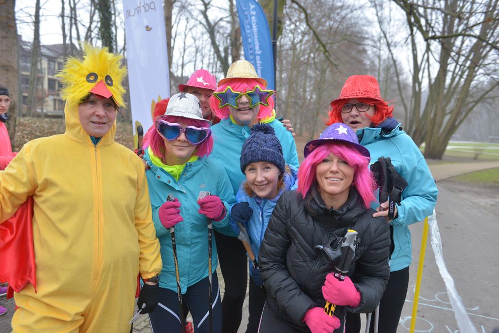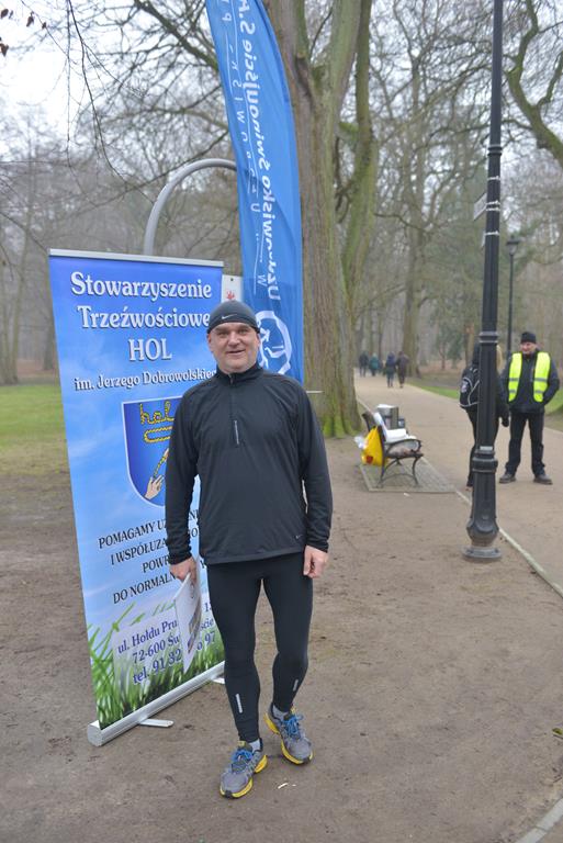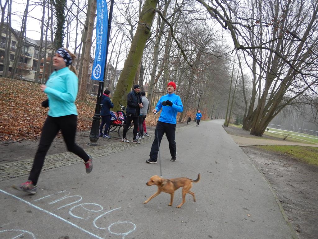 Na starcie stanęło 68 osób i cztery czworonogi i rower bezpieczeństwa, czyli Joanna Bilard. Fotoreporterzy, których było wielu, mieli swoją chwilę, aby uwiecznić ten szczególny moment, ale biegacze byli dzisiaj wyjątkowo rozgadani, rozbawieni i niesforni i jakoś trudno im było stanąć do wspólnego zdjęcia, a było co fotografować. Na bieg zagościł kurczak, groźny niedźwiedź, zakonnica, mnich, kowboj, Smerfetek, radosne i kolorowe morświnki i damy z neonowymi fryzurami. Było na co popatrzeć, gdy cała barwna gromada wystartowała na znak dany przez Wiceprezydenta Miasta Pawła Sujkę. Dodatkową, choć nie zamierzoną, atrakcją już po starcie okazała się wizyta policjantów i żeby nie było”…to nie byli przebierańcy tylko polscy policjanci”.