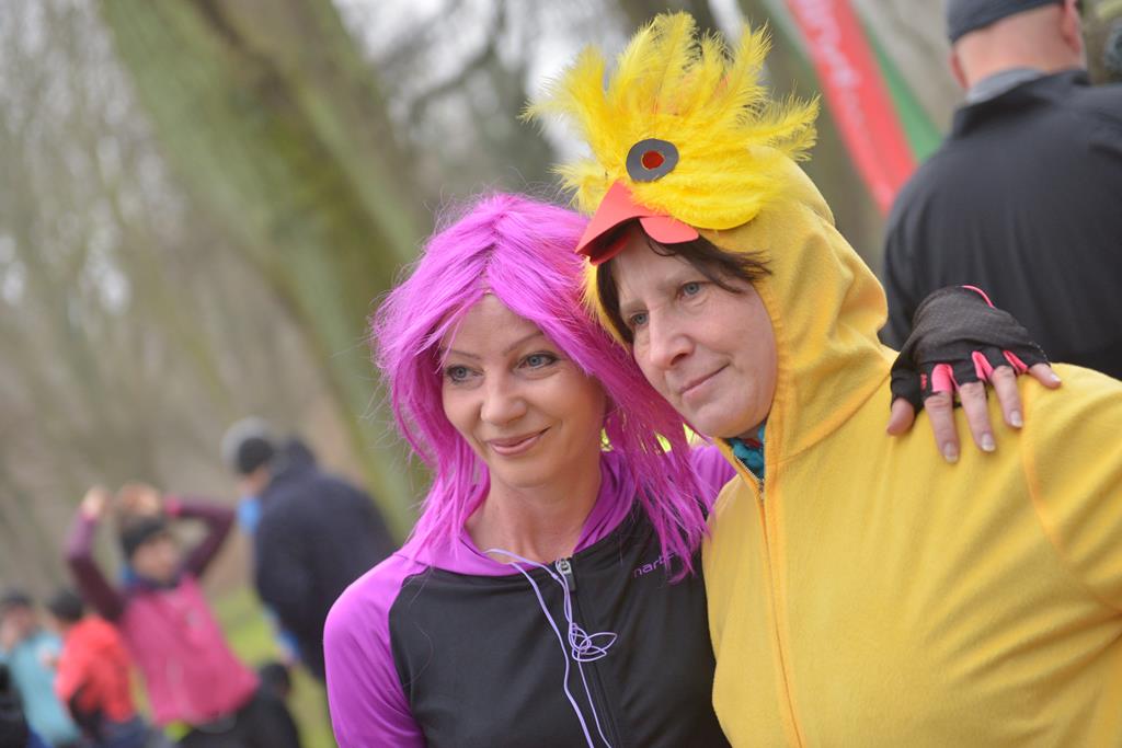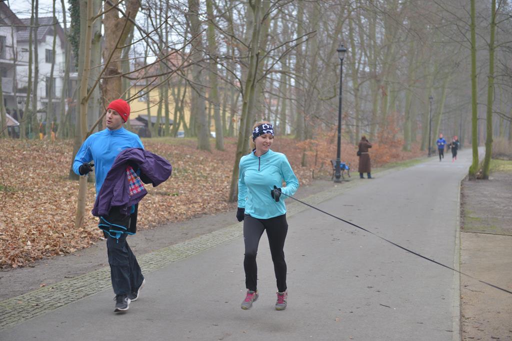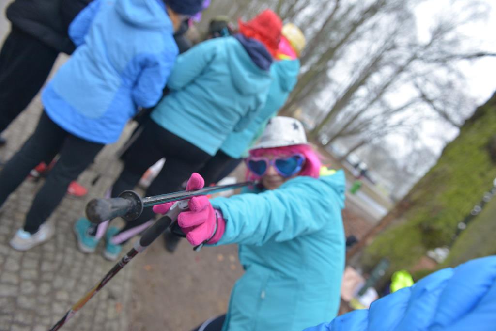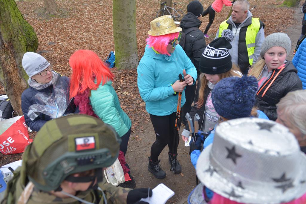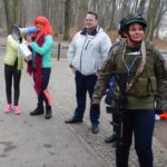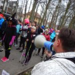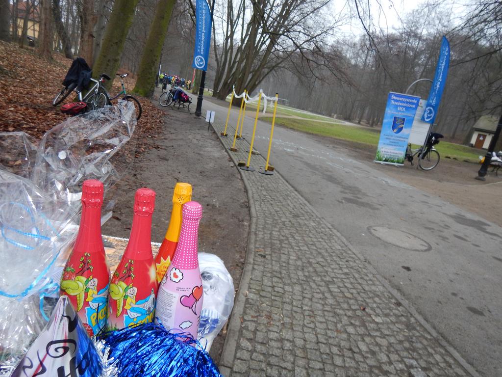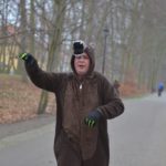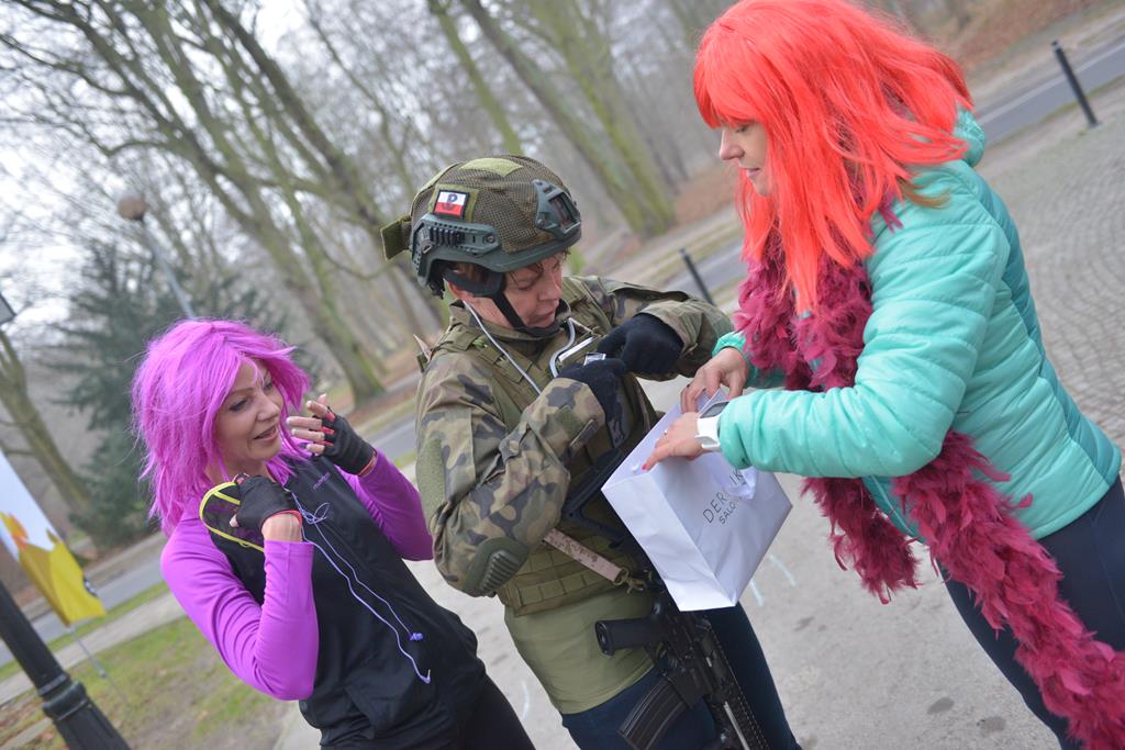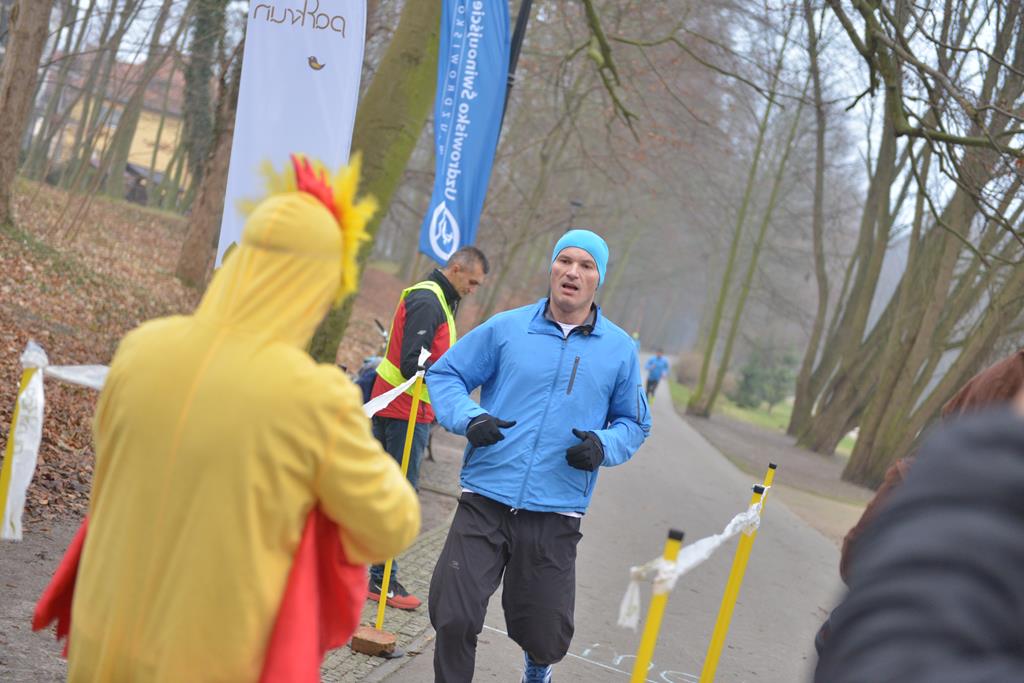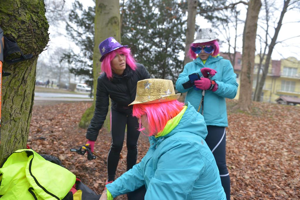 Na starcie stanęło 68 osób i cztery czworonogi i rower bezpieczeństwa, czyli Joanna Bilard. Fotoreporterzy, których było wielu, mieli swoją chwilę, aby uwiecznić ten szczególny moment, ale biegacze byli dzisiaj wyjątkowo rozgadani, rozbawieni i niesforni i jakoś trudno im było stanąć do wspólnego zdjęcia, a było co fotografować. Na bieg zagościł kurczak, groźny niedźwiedź, zakonnica, mnich, kowboj, Smerfetek, radosne i kolorowe morświnki i damy z neonowymi fryzurami. Było na co popatrzeć, gdy cała barwna gromada wystartowała na znak dany przez Wiceprezydenta Miasta Pawła Sujkę. Dodatkową, choć nie zamierzoną, atrakcją już po starcie okazała się wizyta policjantów i żeby nie było”…to nie byli przebierańcy tylko polscy policjanci”.