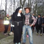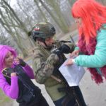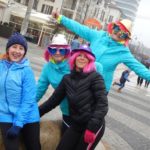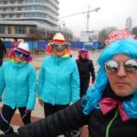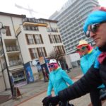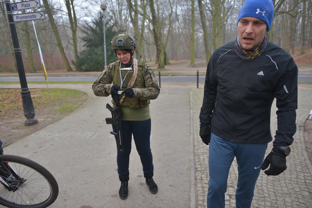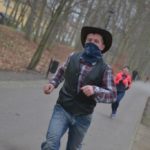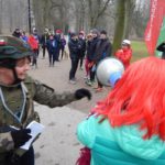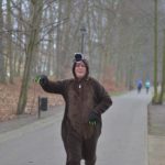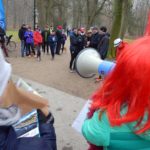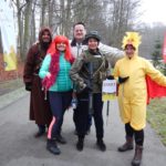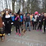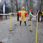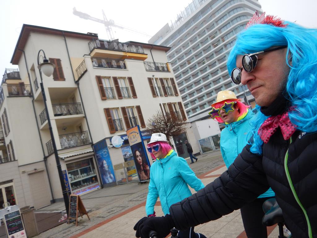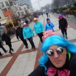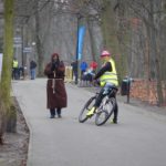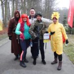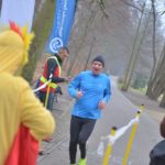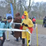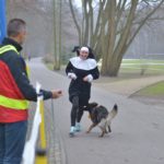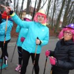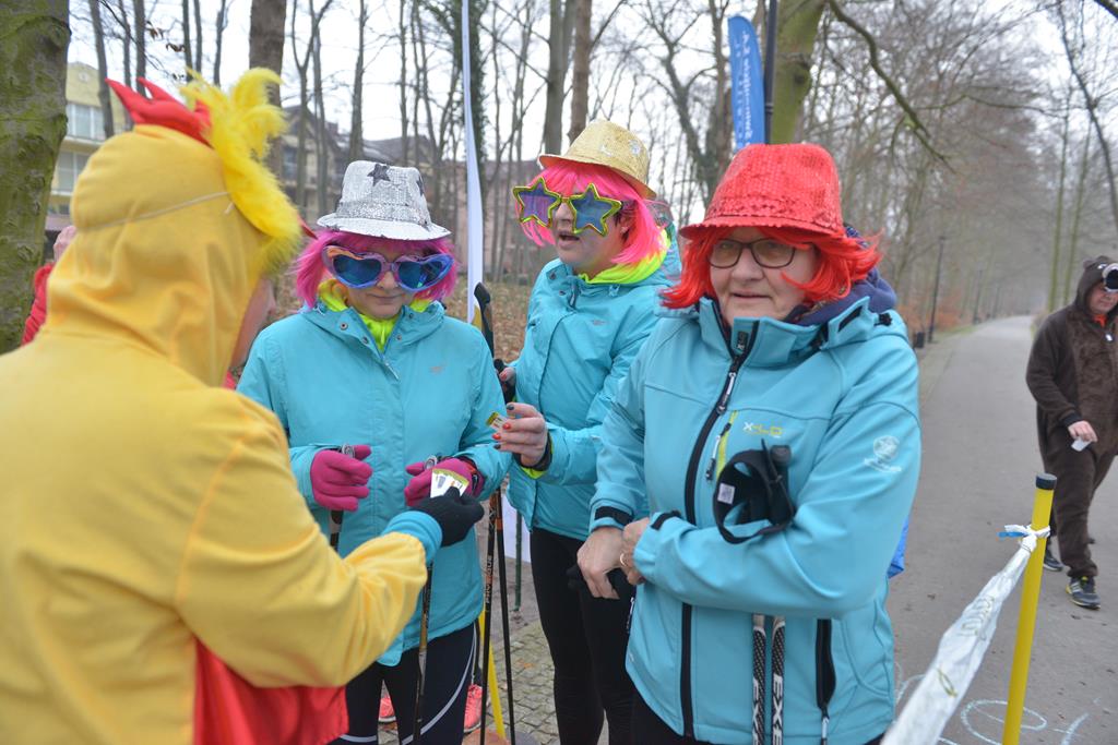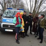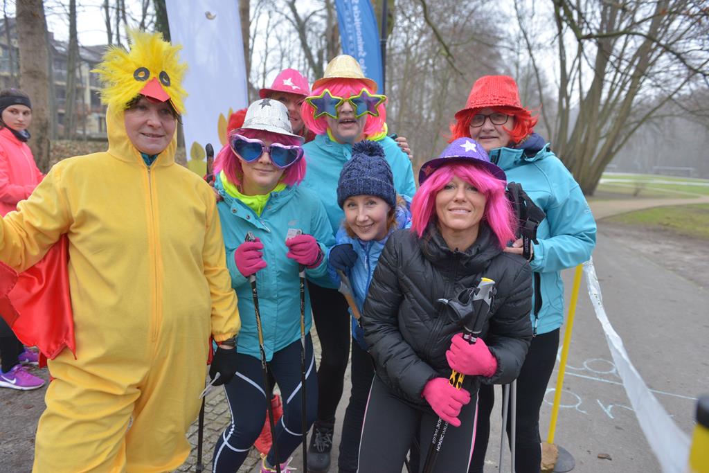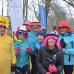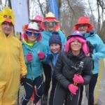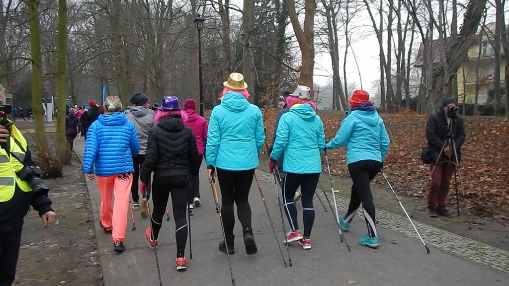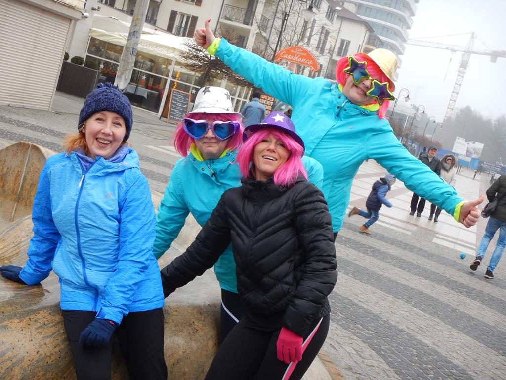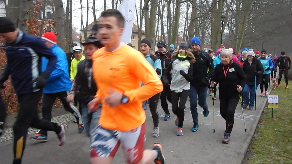Na starcie stanęło 68 osób i cztery czworonogi i rower bezpieczeństwa, czyli Joanna Bilard. Fotoreporterzy, których było wielu, mieli swoją chwilę, aby uwiecznić ten szczególny moment, ale biegacze byli dzisiaj wyjątkowo rozgadani, rozbawieni i niesforni i jakoś trudno im było stanąć do wspólnego zdjęcia, a było co fotografować. Na bieg zagościł kurczak, groźny niedźwiedź, zakonnica, mnich, kowboj, Smerfetek, radosne i kolorowe morświnki i damy z neonowymi fryzurami. Było na co popatrzeć, gdy cała barwna gromada wystartowała na znak dany przez Wiceprezydenta Miasta Pawła Sujkę. Dodatkową, choć nie zamierzoną, atrakcją już po starcie okazała się wizyta policjantów i żeby nie było”…to nie byli przebierańcy tylko polscy policjanci”.
