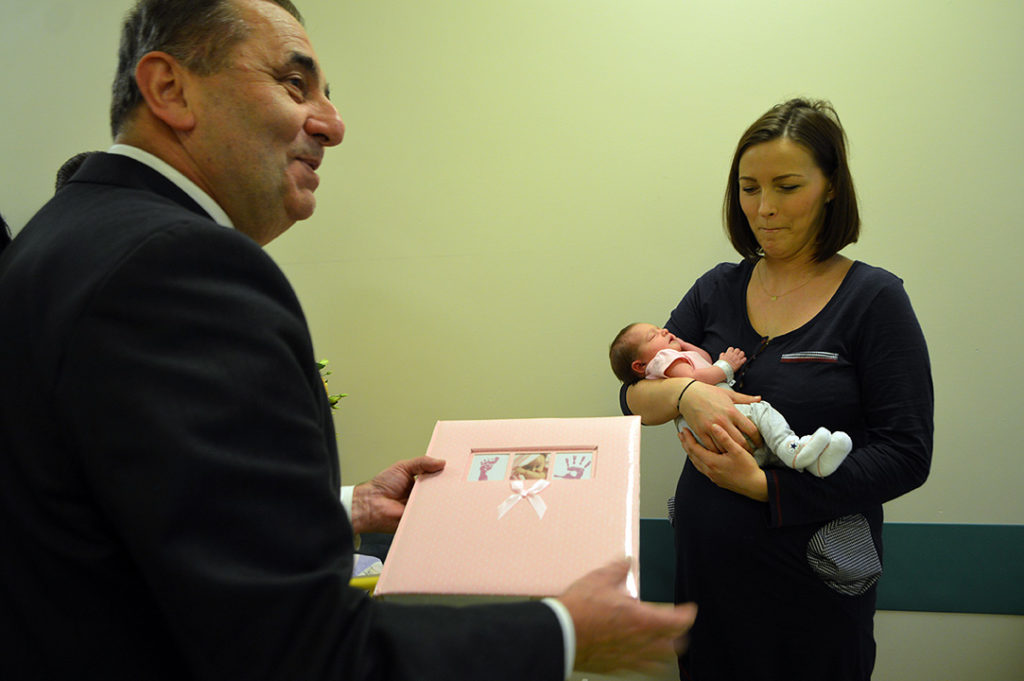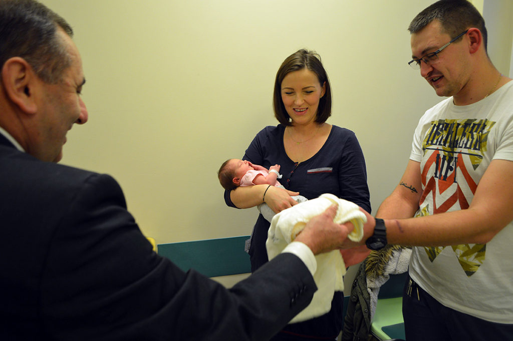 Szczęśliwych rodziców, na oddziale położniczym świnoujskiego szpitala, odwiedził prezydent Janusz Żmurkiewicz z zastępca Pawłem Sujką. Oprócz kwiatów, podarował szczęśliwym rodzicom pamiątki.
