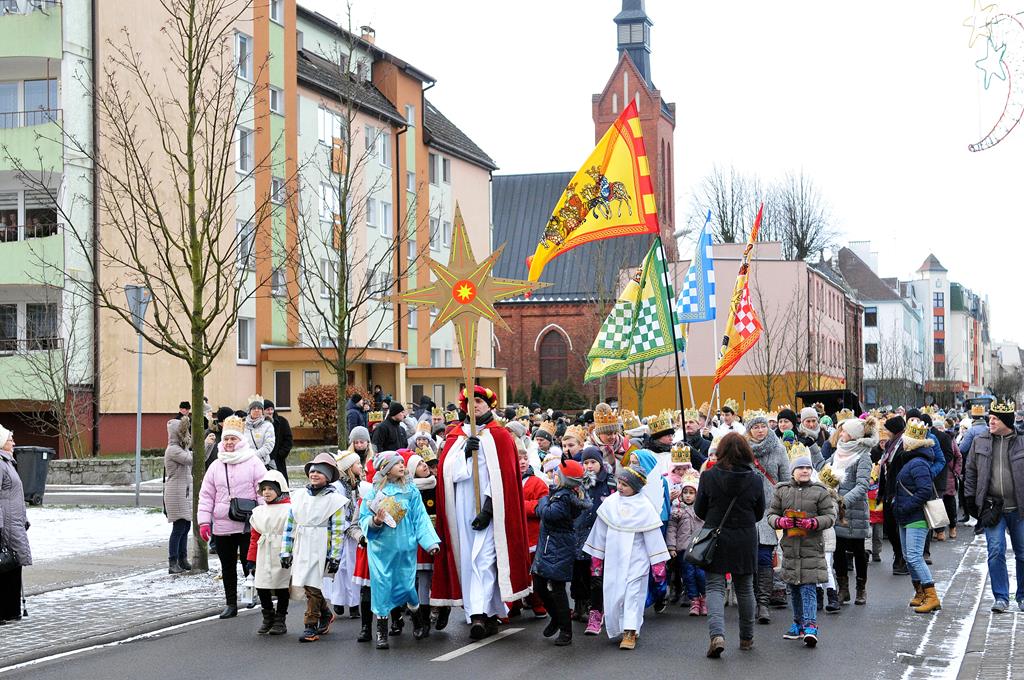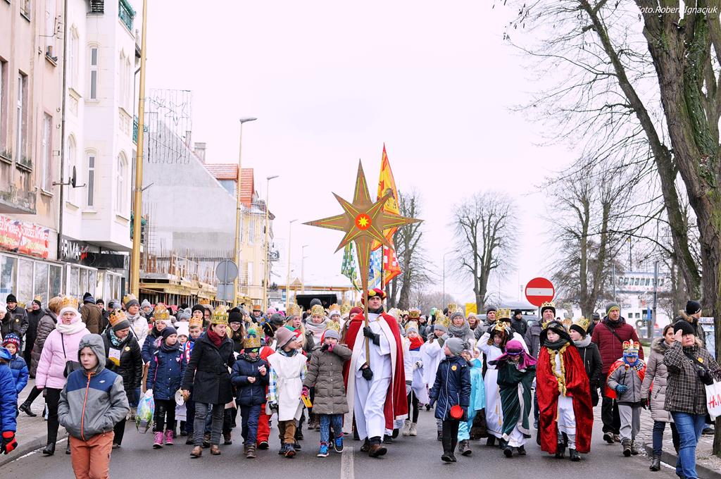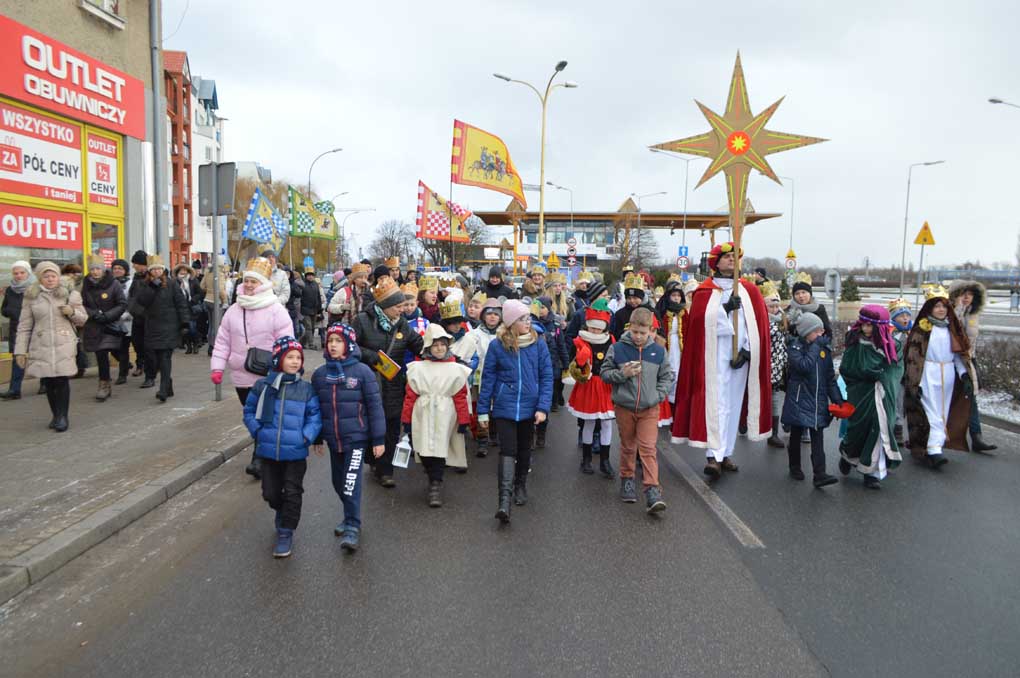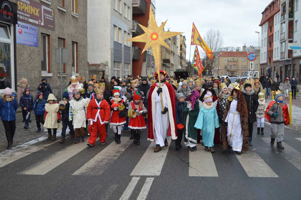 Uliczny korowód jasełkowy rozpoczął się Mszą św. o godz. 11:30 w kościele pw. NMP Gwiazdy Morza (przy ul. Piastowskiej). O godz. 12:30 wyruszył z kościoła i przeszedł ulicami miast Piastowską, B. Chrobrego, Armii Krajowej na Plac Wolności, gdzie Trzej Królowie złożyli pokłon Dzieciątku Jezus. Trasę orszaku zabezpieczali policjanci.
