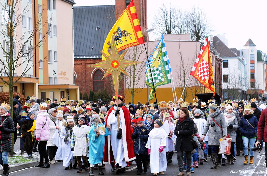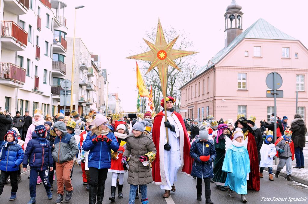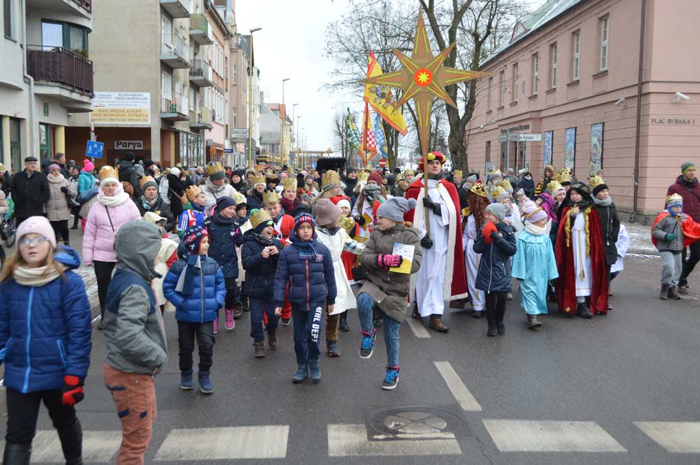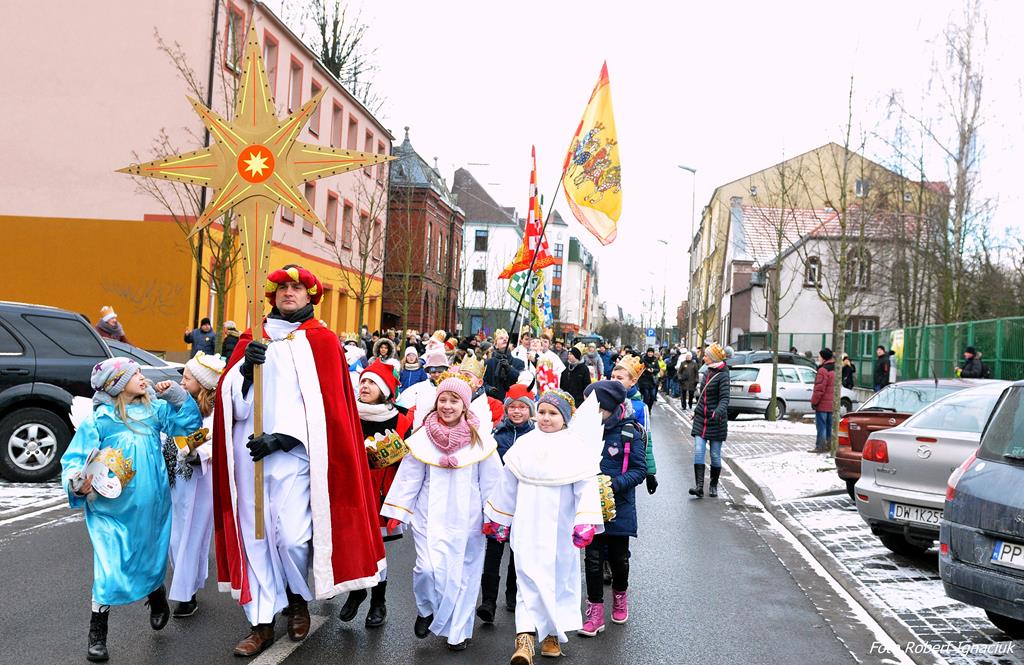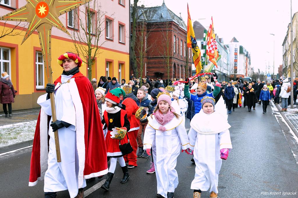 Uliczny korowód jasełkowy rozpoczął się Mszą św. o godz. 11:30 w kościele pw. NMP Gwiazdy Morza (przy ul. Piastowskiej). O godz. 12:30 wyruszył z kościoła i przeszedł ulicami miast Piastowską, B. Chrobrego, Armii Krajowej na Plac Wolności, gdzie Trzej Królowie złożyli pokłon Dzieciątku Jezus. Trasę orszaku zabezpieczali policjanci.