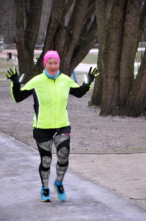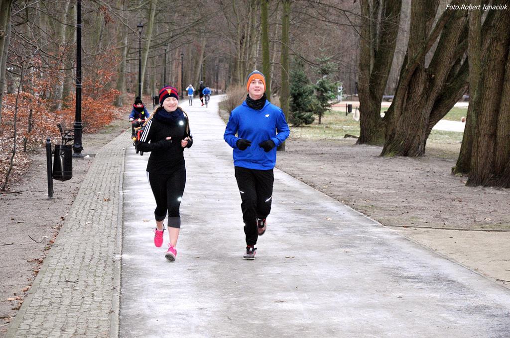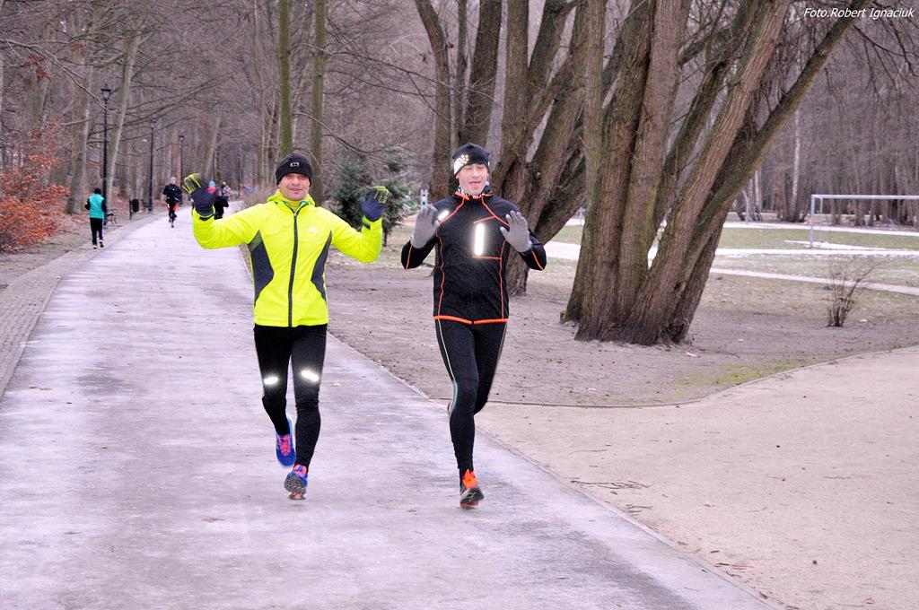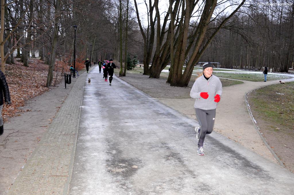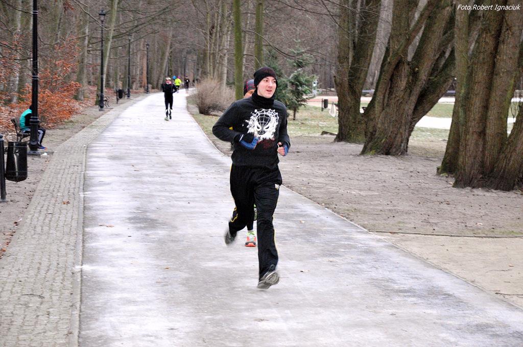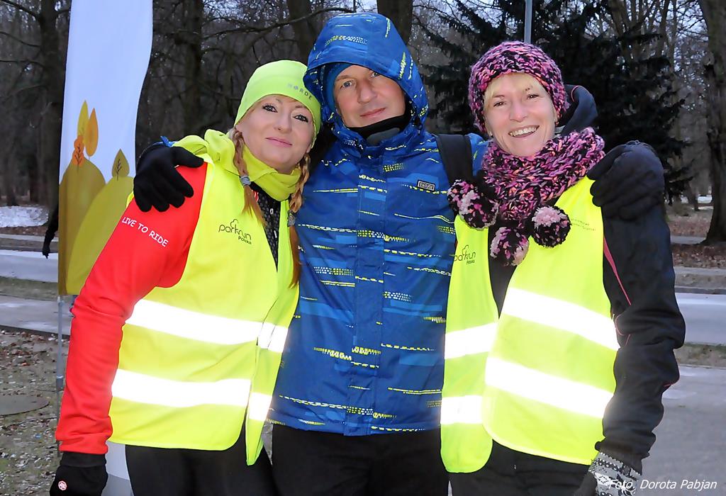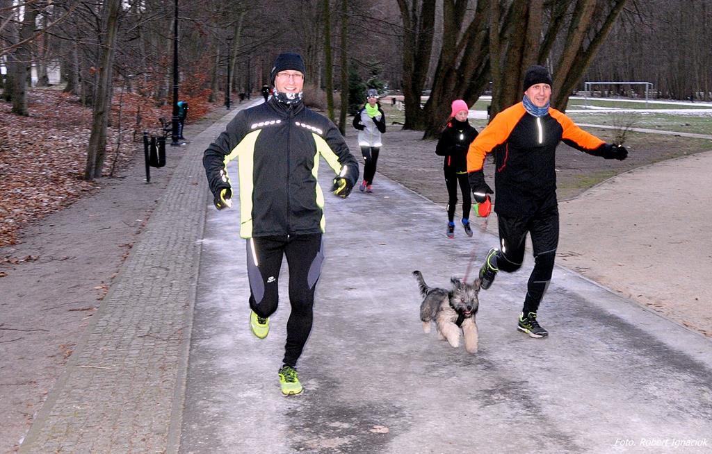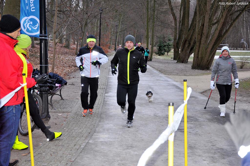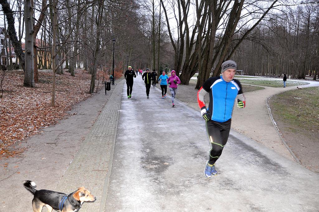 Parkrun # 26 minął pod znakiem mrozu. Temperatura odczuwalna była dużo niższa niż wskazywał termometr, ale nie miało to wpływu na 69 osób, które przebiegły dzisiaj 5-cio kilometrowy dystans z uśmiechem na twarzy. Echo niosło po parku tupot nóg i łap (cztery razy po cztery łapy).