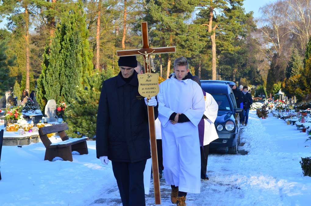 Kilkaset osób uczestniczyło we wtorek w ostatniej drodze 19-letniego Piotra Wawrzynowicza, który został zamordowany w mieszkaniu przy ul. Matejki w Świnoujściu. W uroczystościach pogrzebowych uczestniczyła najbliższa rodzina zamordowanego, przyjaciel oraz koleżanki i koledzy. W eskorcie służby więziennej przywieziono brata zamordowanego. Urna z prochami Piotra spoczęła na cmentarzu komunalnym w Świnoujściu.