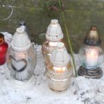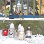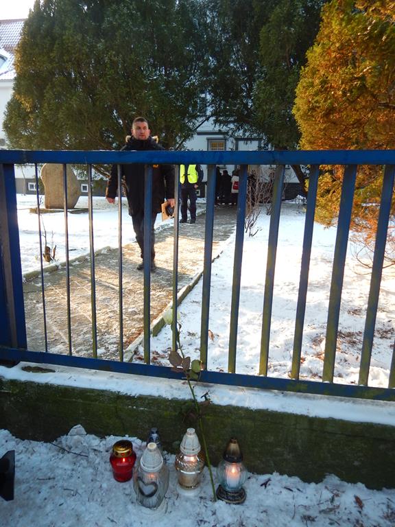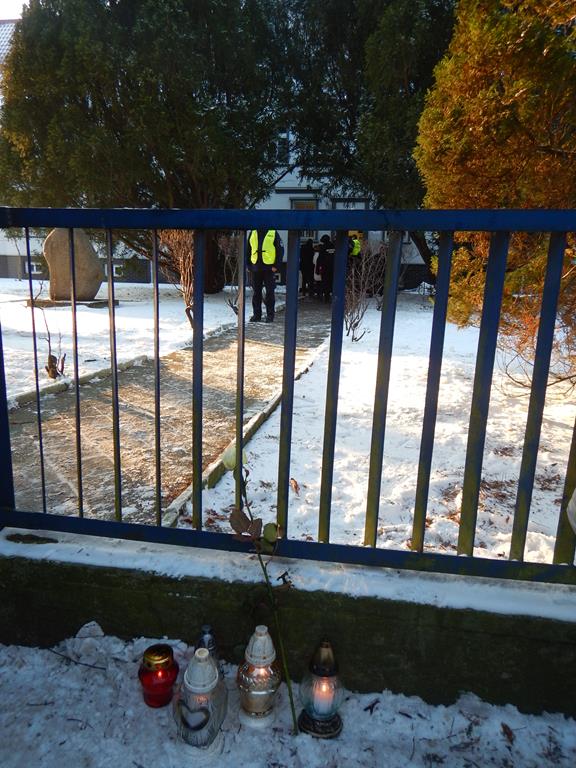 Pod ogrodzeniem komendy zapalono kilka zniczy.