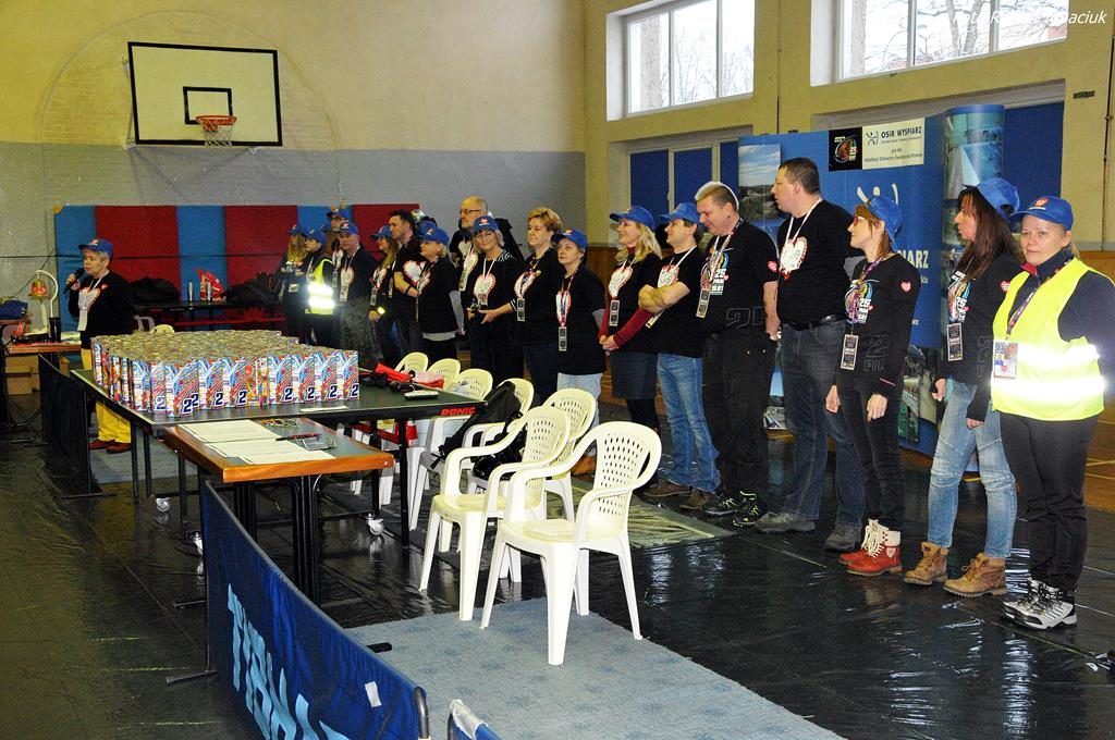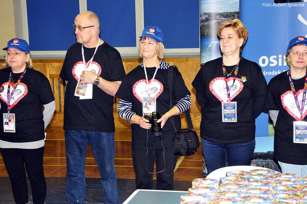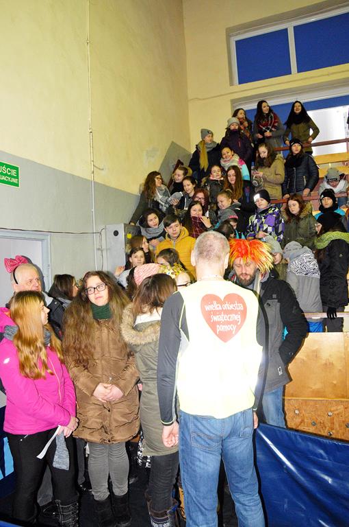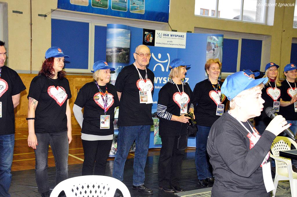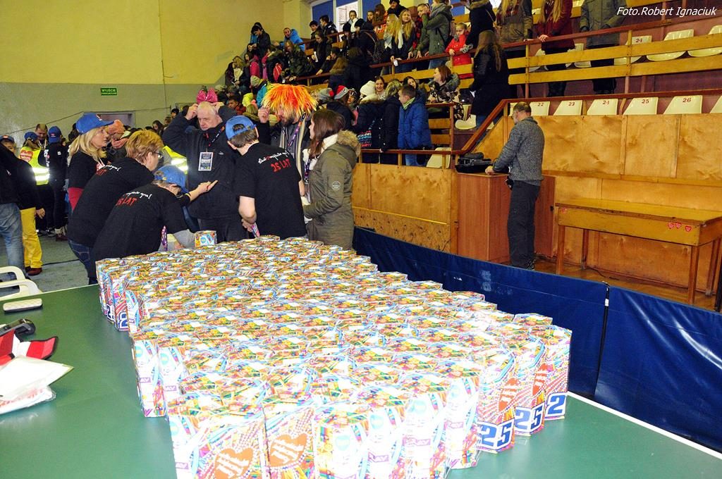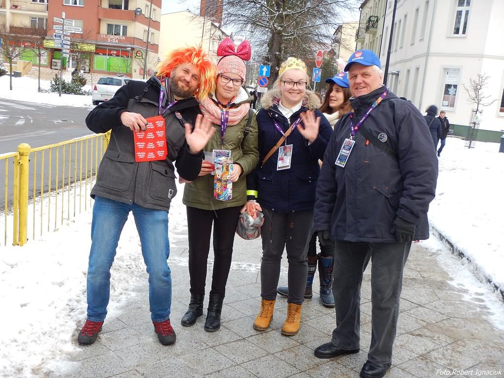 Punktualnie o godz. 9 wolontariusze spotkali się w hali sportowej OSiR przy ul. Piłsudskiego. To w tym miejscu corocznie doprawiani są wolontariusze. Otrzymują identyfikatory, puszki, serduszka oraz przygotowane gadżety. Następnie wyruszają z tekturowymi puszkami w miasto, aby kwestować.