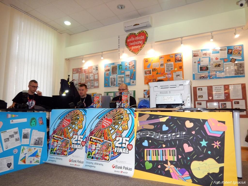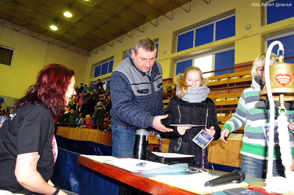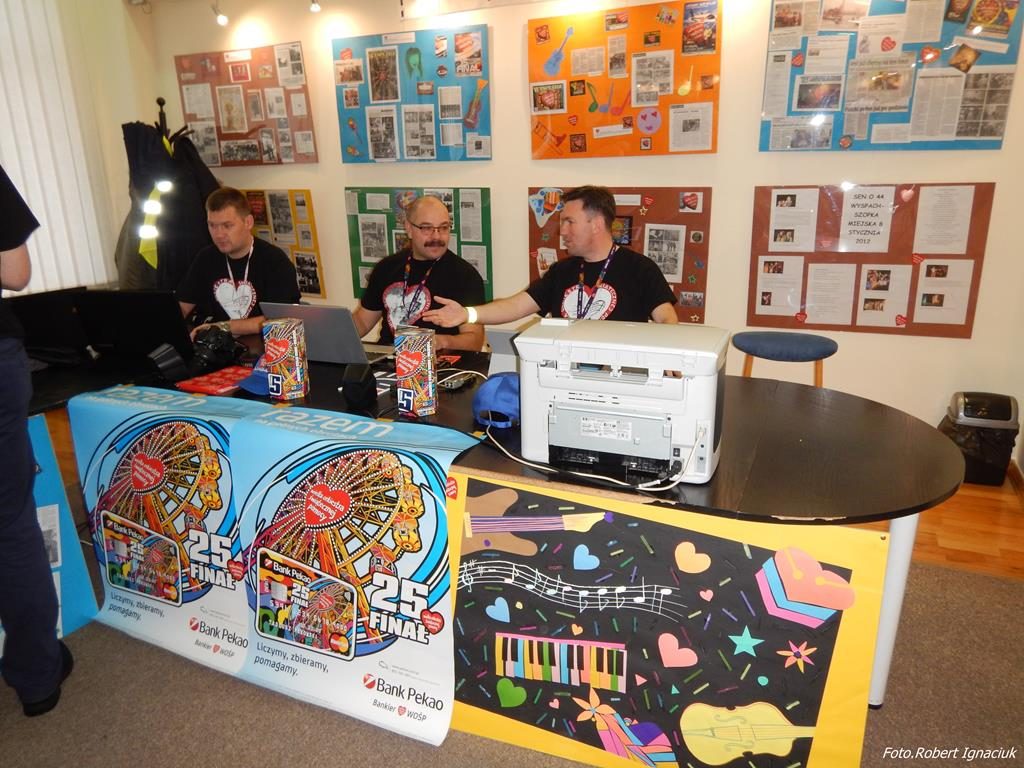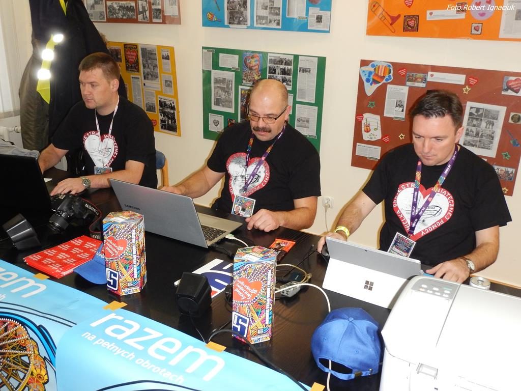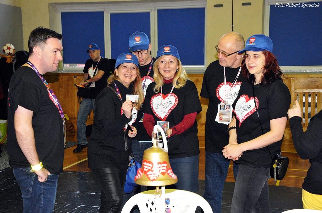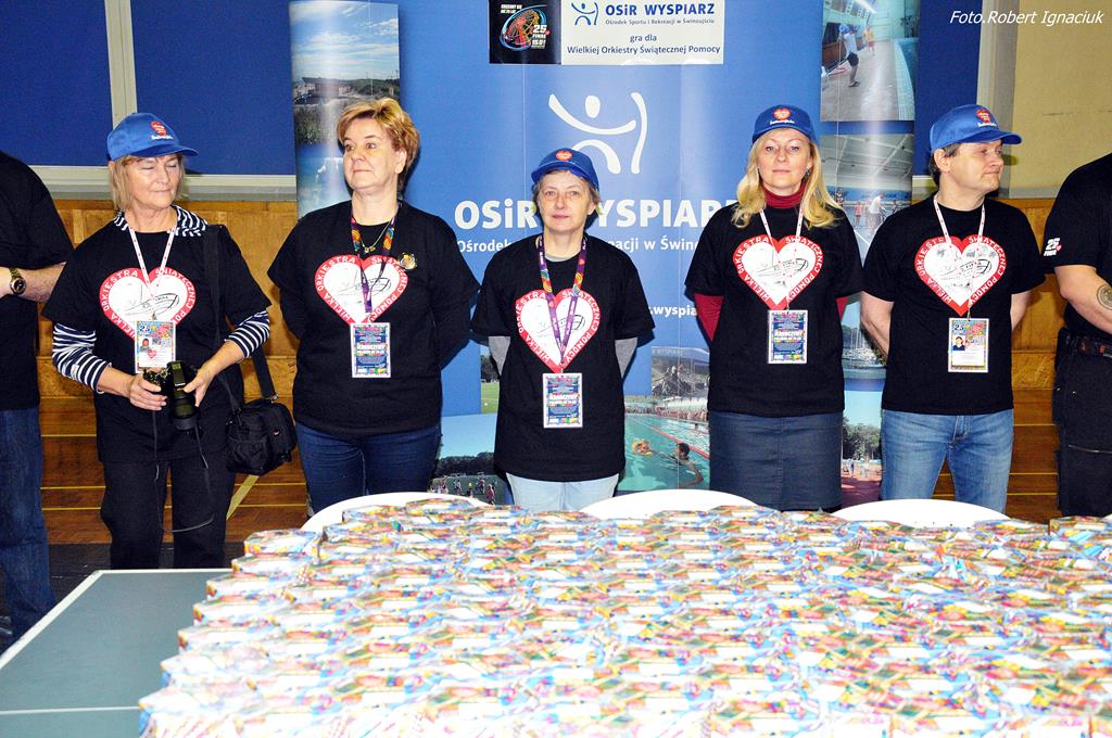 Punktualnie o godz. 9 wolontariusze spotkali się w hali sportowej OSiR przy ul. Piłsudskiego. To w tym miejscu corocznie doprawiani są wolontariusze. Otrzymują identyfikatory, puszki, serduszka oraz przygotowane gadżety. Następnie wyruszają z tekturowymi puszkami w miasto, aby kwestować.