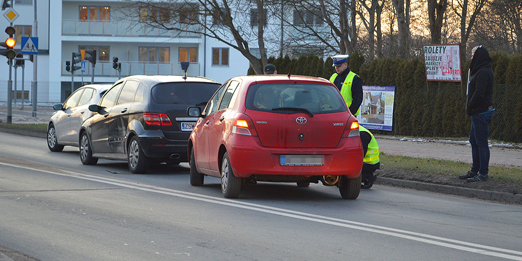 Do zderzenia doszło przy sklepie Lidl na ul. 11 Listopada. Kierująca toyotą obywatelka Niemiec wymusiła prawdopodobnie pierwszeństwo i uderzyła w bok mercedesa. Na miejsce wezwano policjantów ruchu drogowego i pogotowie ratunkowe. Jedna z osób z potłuczeniami trafiła do szpitala.