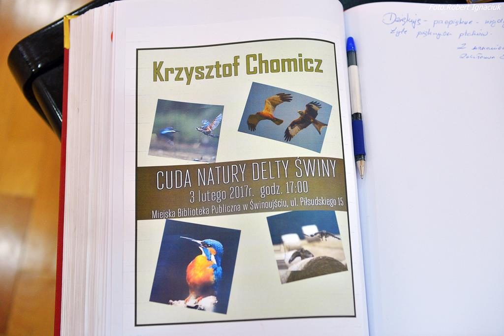 Od piątku w galerii Miejskiej Biblioteki Publicznej można oglądać wystawę fotograficzną pt.„Cuda natury Delty Świny”. Autorem jest Krzysztof Chomicz, który od lat fotografuje głownie ptaki. Jego zdjęcia podziwia cały świat. Na swoim koncie ma wydanie kilka albumów. Zdjęcie pod tytułem „Tango orłów” zostało wyróżnione w Wielkim Konkursie National Geographic. Niedawno zasłynął uratowaniem bielika z bagna.