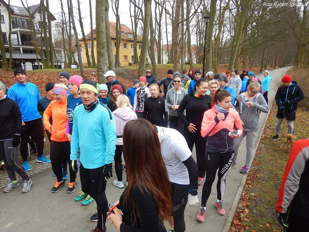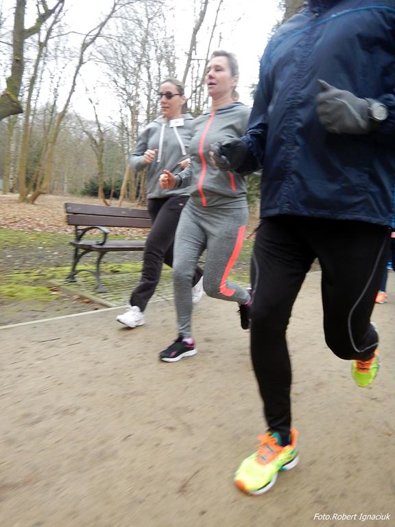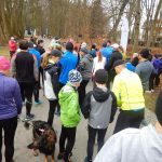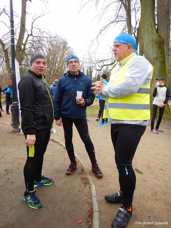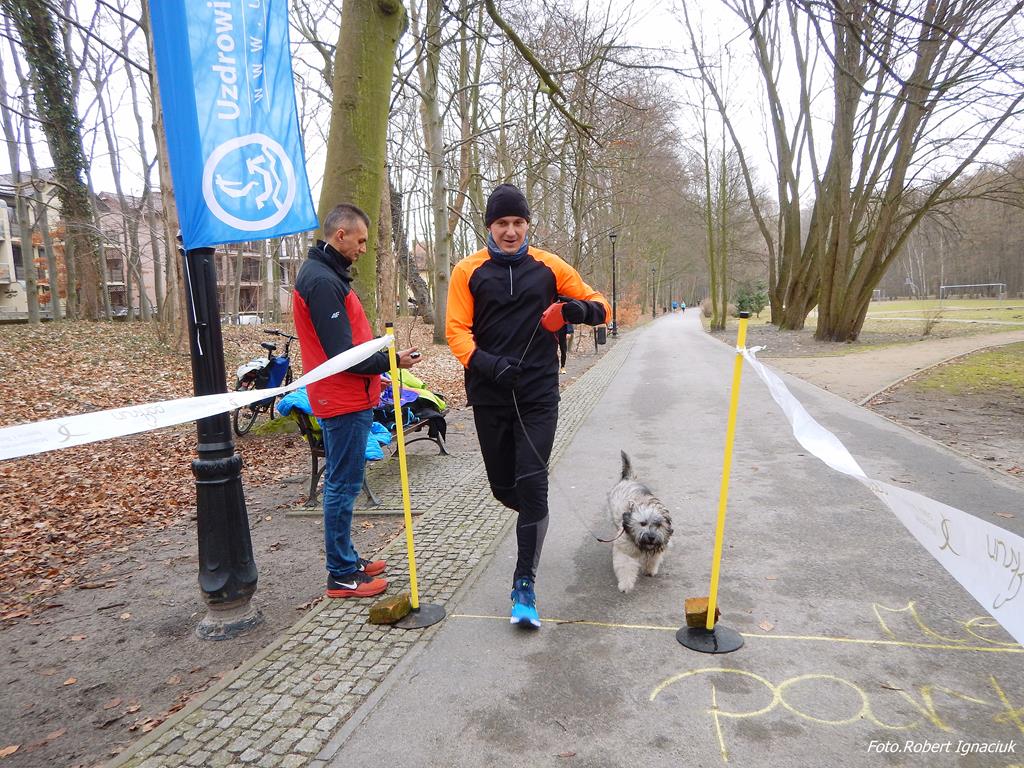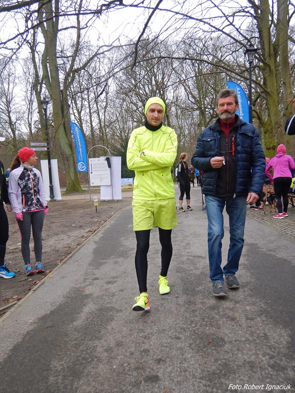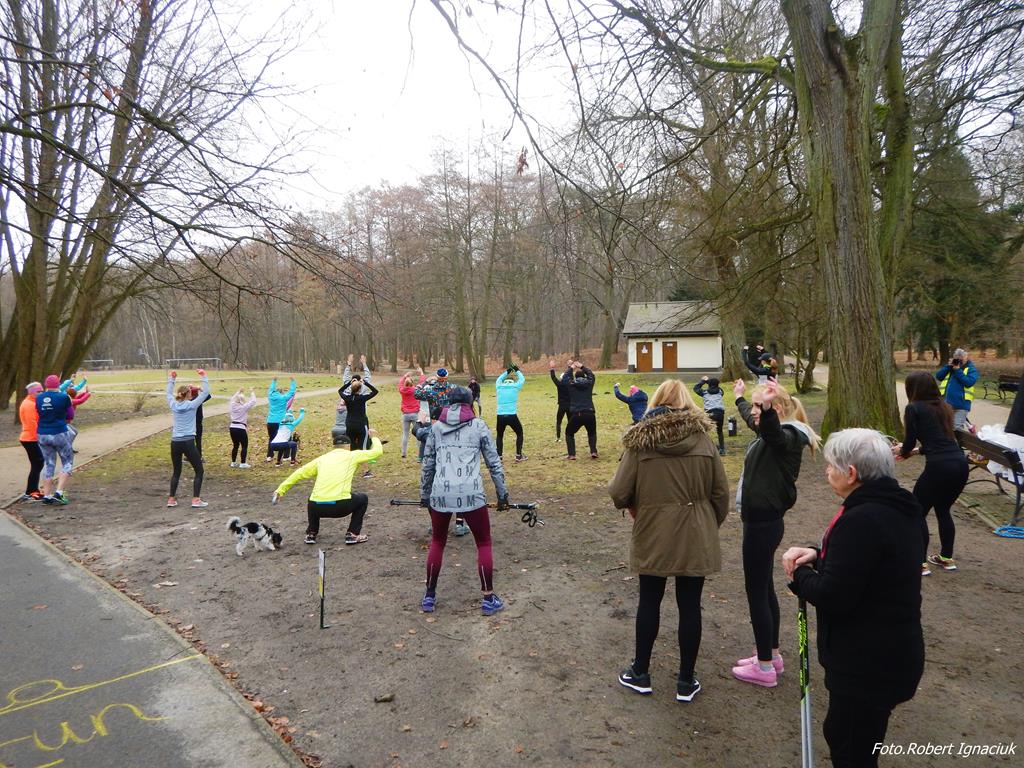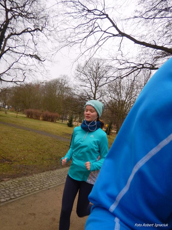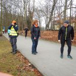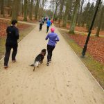 Ewa Mikołajek wraz z Muffinem rozruszała przed biegiem tych bardziej ospałych i tych, którzy lekko zziębnięci przybyli na parkrun. Na starcie stanęło 64 uczestników dwunożnych i 6 czworonożnych.