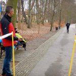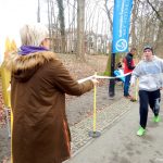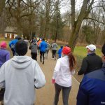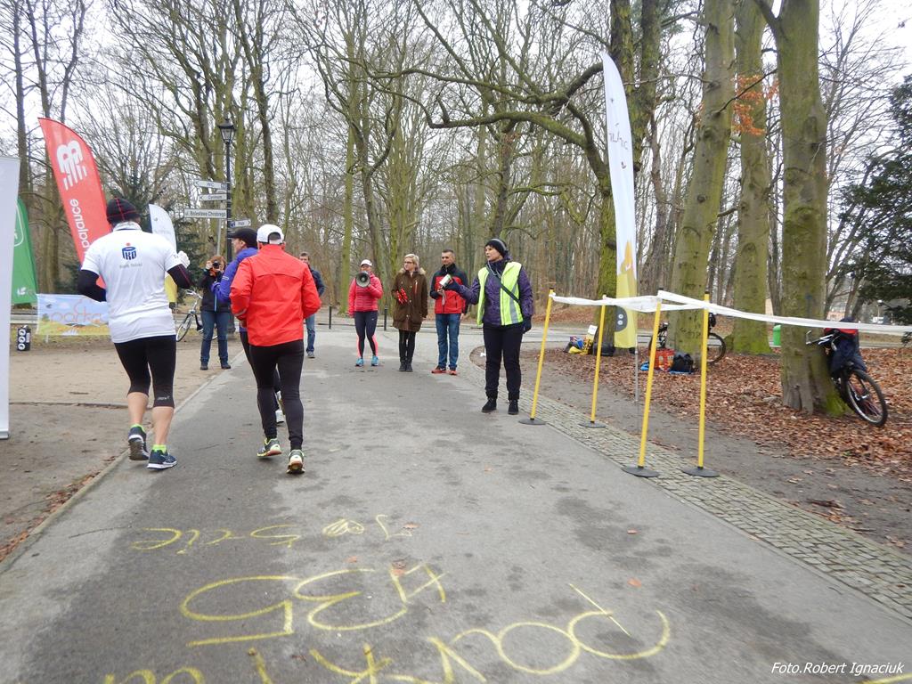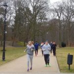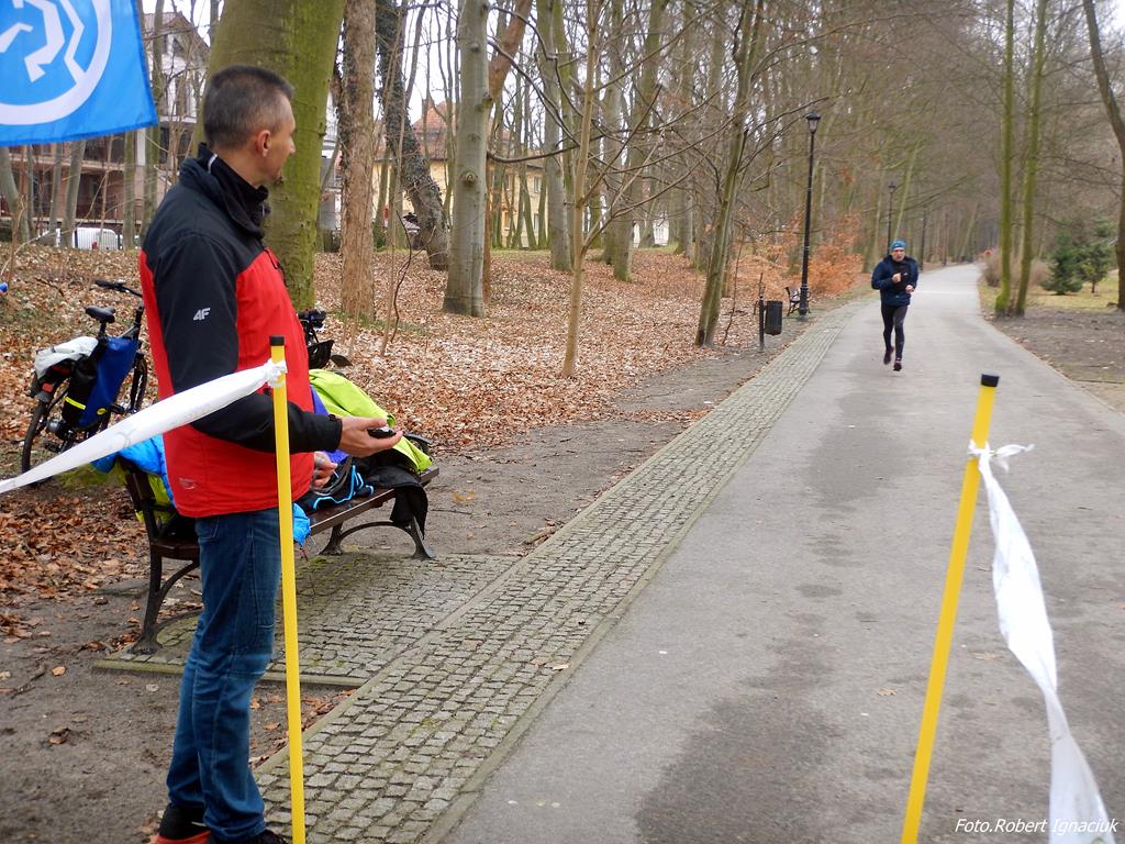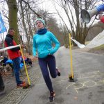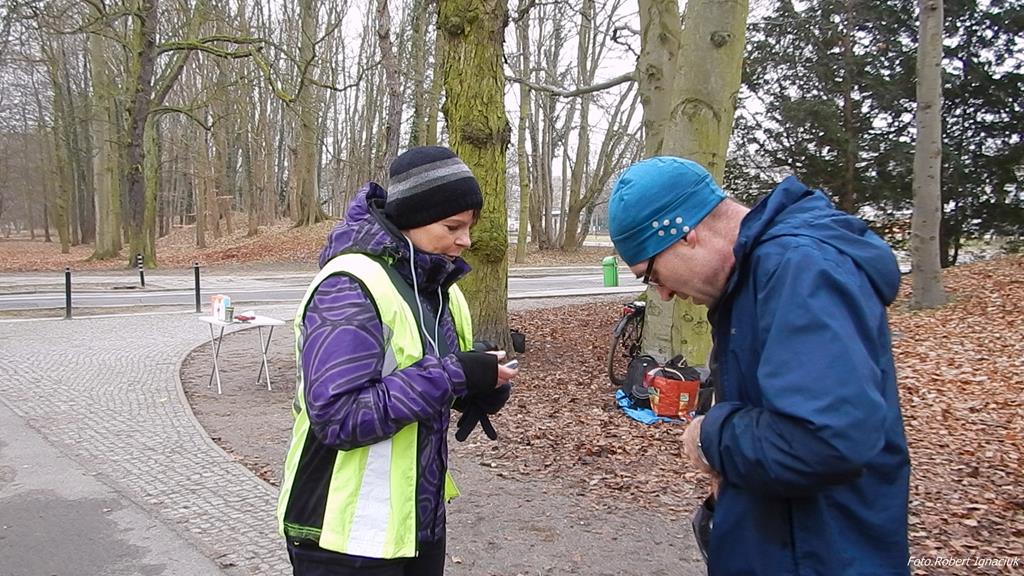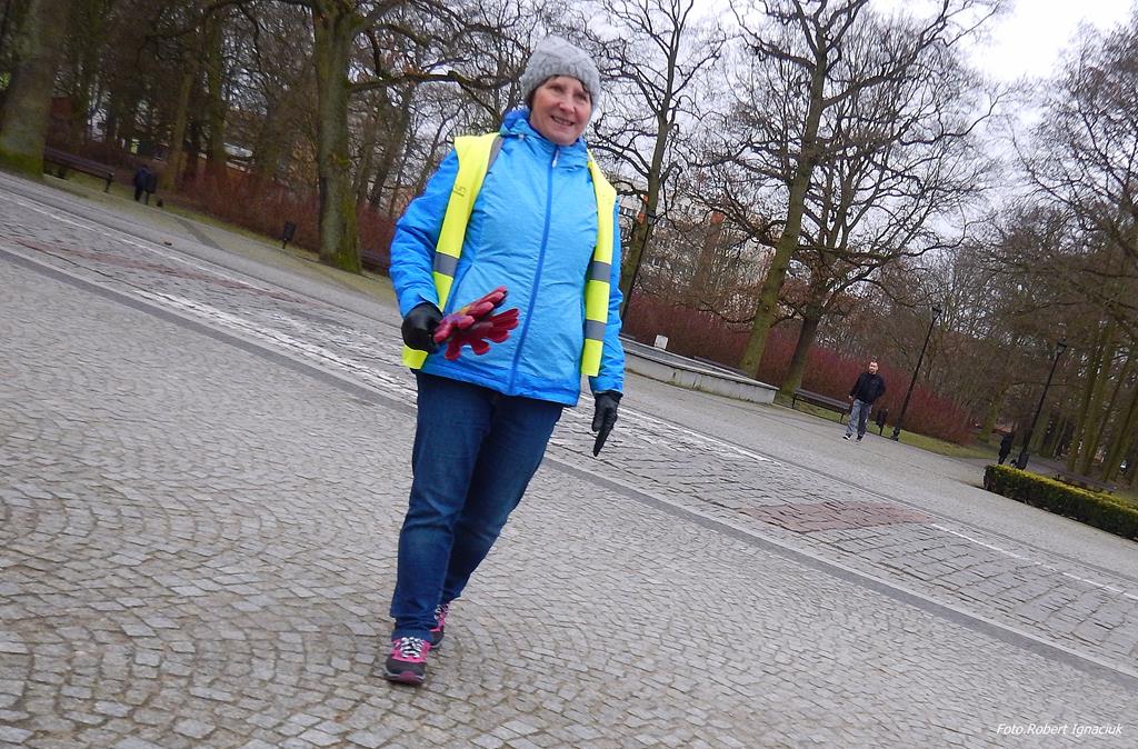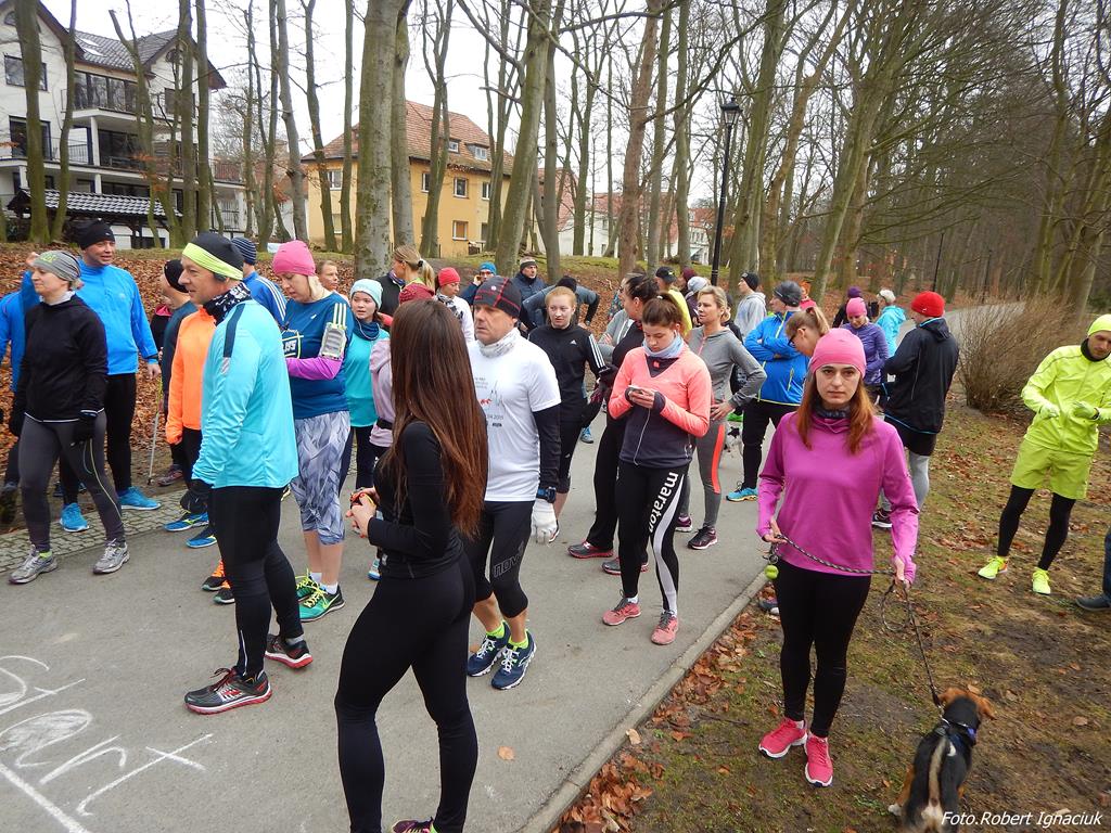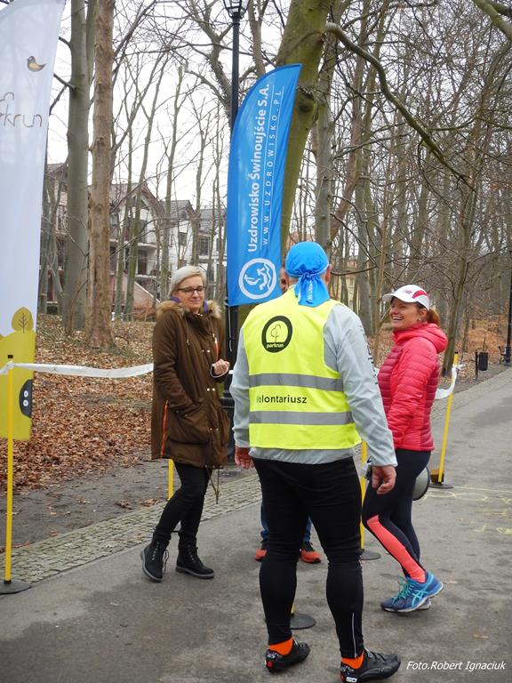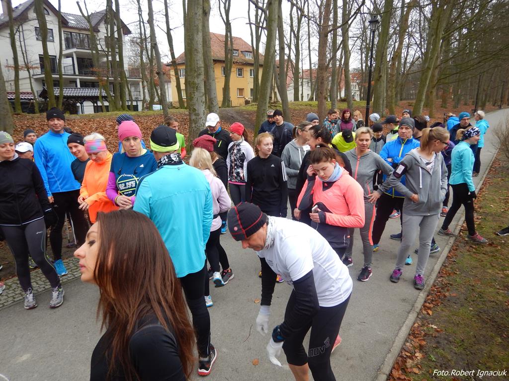 Ewa Mikołajek wraz z Muffinem rozruszała przed biegiem tych bardziej ospałych i tych, którzy lekko zziębnięci przybyli na parkrun. Na starcie stanęło 64 uczestników dwunożnych i 6 czworonożnych.