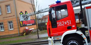Z elewacji budynku przy ul. Grunwaldzkiej 58 oderwała się wielka płachta reklamowa. Baner zagrażał przechodzącym po chodniku przechodniom. Na pomoc wezwano strażaków. Do akcji zadysponowano dwa zastępy straży pożarnej.