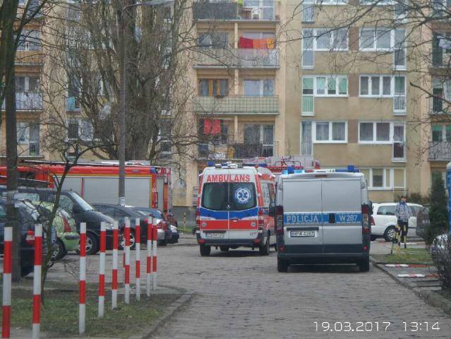 Głośne wołanie o pomoc zaniepokoiło sąsiadów bloku przy ul. Konstytucji 3 Maja. W mieszkaniu była starsza kobieta. Na pomoc wezwano strażaków. Na miejsce wysłano dwa zastępy. Przyjechała także policja i pogotowie ratunkowe. Strażacy wyważyli drzwi, aby dostać się do wołającej o pomoc kobiety.