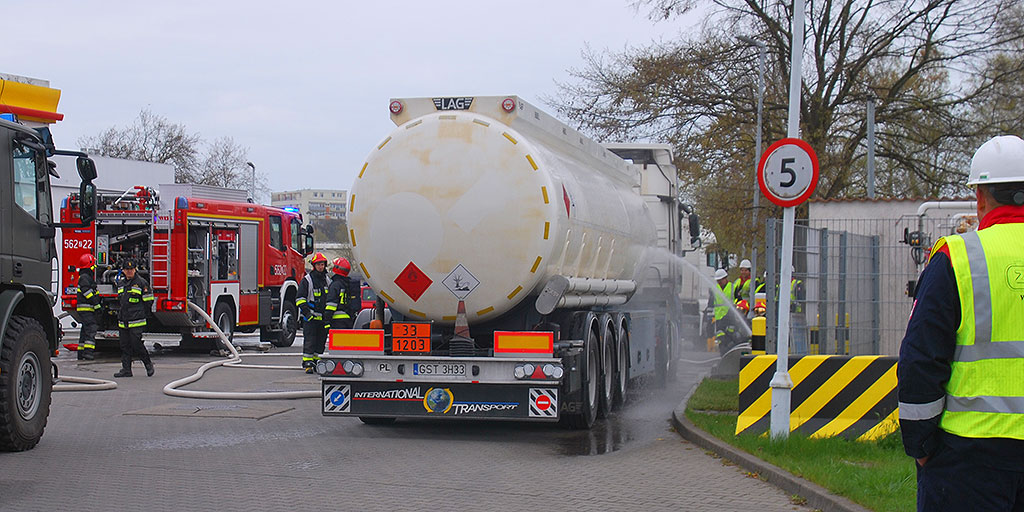 Wyciek paliwa z cysterny na stacji paliw. W akcji trzy zastępy strażaków – to tylko ćwiczenia