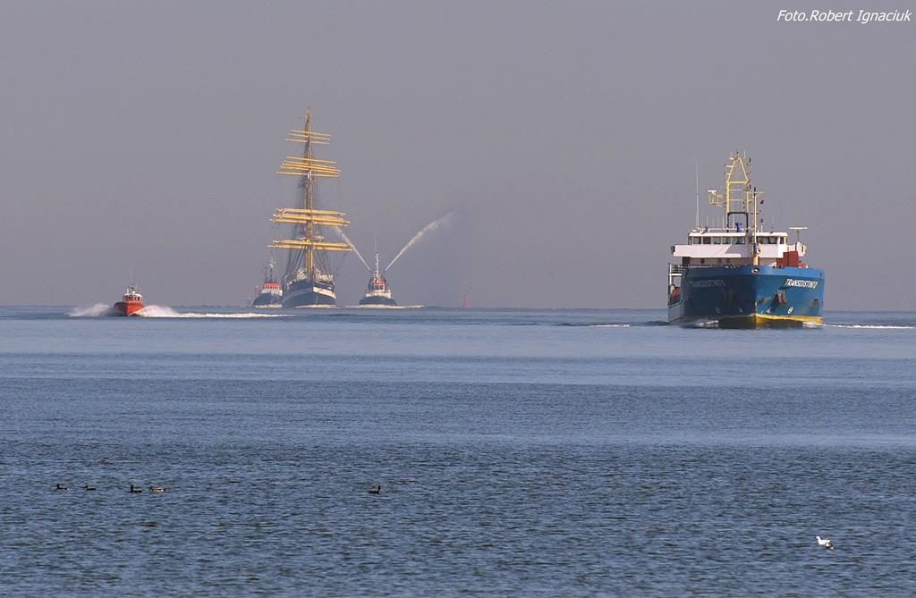 Reporterzy gazety Ahoj Świnoujście mieli okazję wejść na pokład znacznie wcześniej. Zanim stopa szczura lądowego stanie na drewnianym pokładzie żaglowca wybudowanego w 1926 roku, trzeba przejść po kilkumetrowym trapie. Do zwiedzania uśmiechem zaprasza młody marynarz z trzema białymi pasami na marynarskim kołnierzu. – Paski to na upamiętnienie trzech wielkich zwycięstw admirała Fiodora Uszakowa – mówi z dumą Oleg.