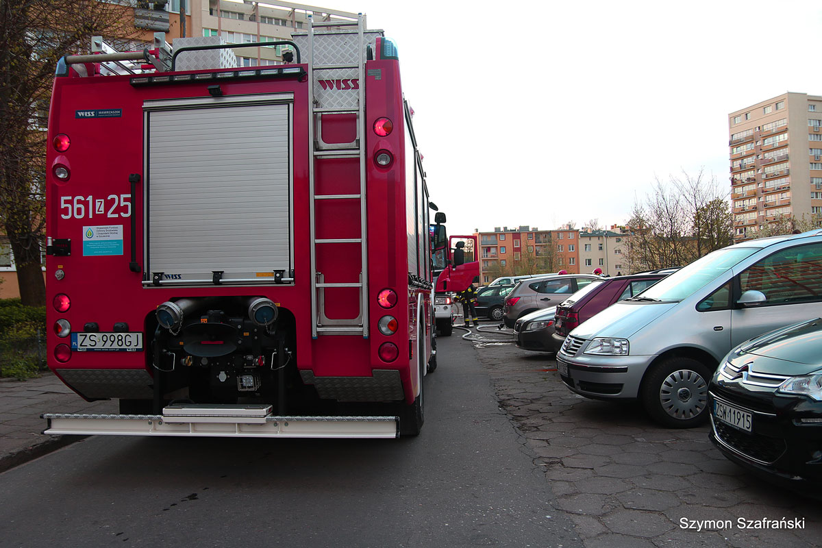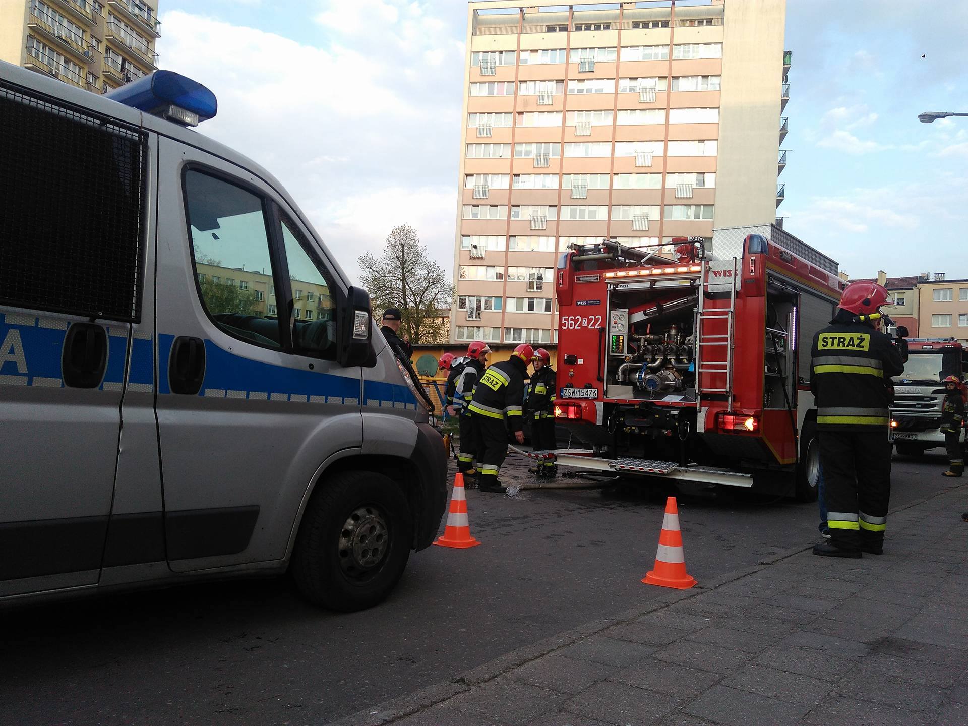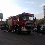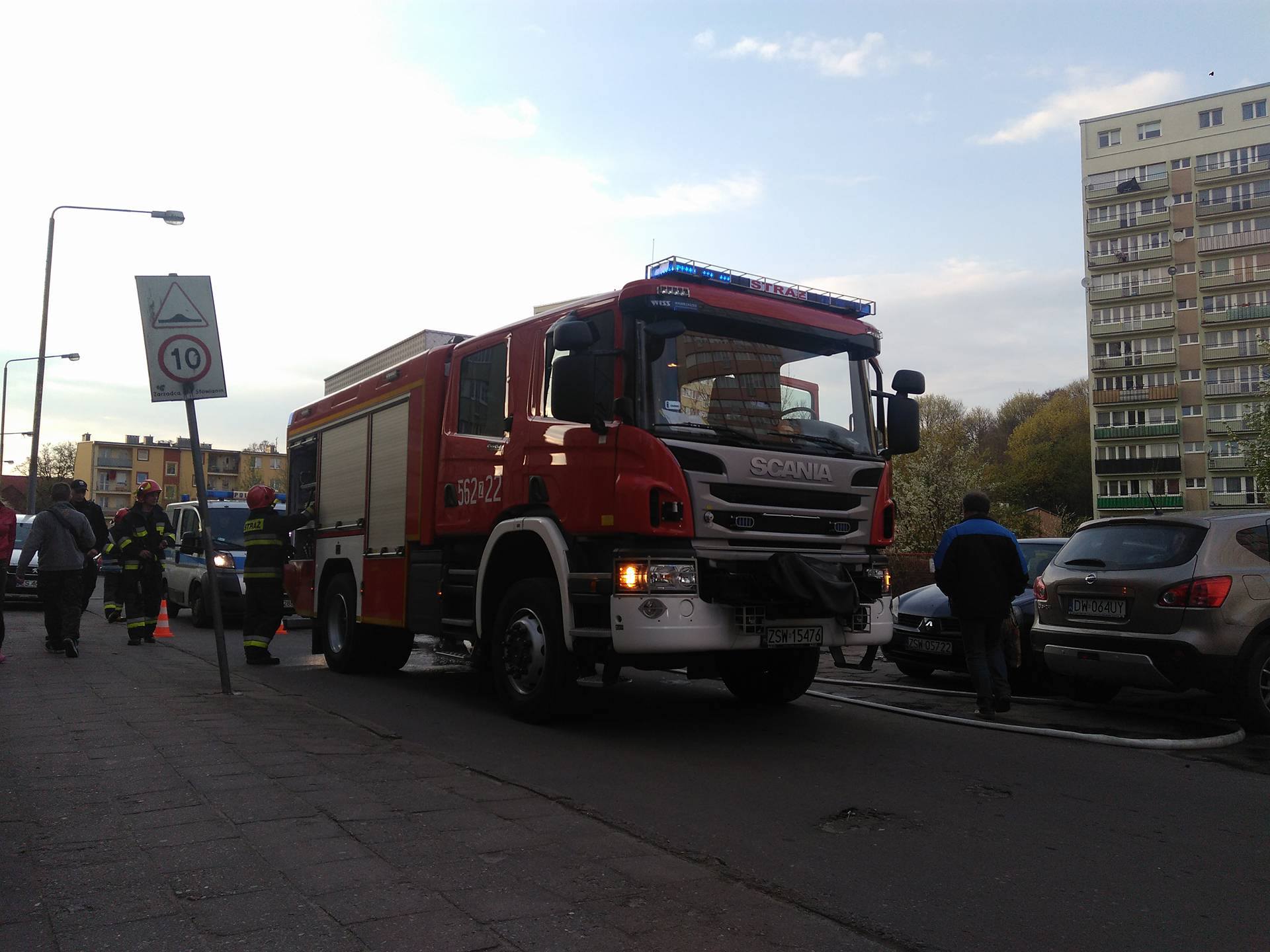 Pierwszy wóz straży pożarnej zamulił i wjechał prawie w Wyspiańskiego, tzn, zrobił nawrotkę na skrzyżowaniu.