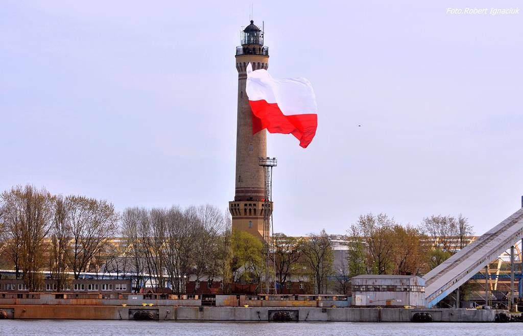 Największa flaga narodowa zawisła we wtorek na cokole latarni morskiej w Świnoujściu. Biało-czerwona flaga była szyta przez ponad tydzień w jednej ze świnoujskich pracowni krawieckich. Na latarnię morską wciągali ją alpiniści za pomocą specjalnego zespołu lin. Podczas uroczystości akompaniowała orkiestra wojskowa ze Świnoujścia. Organizatorzy obawiali się, czy przy tak porywistym wietrze, uda się ją wciągnąć. Udało się!