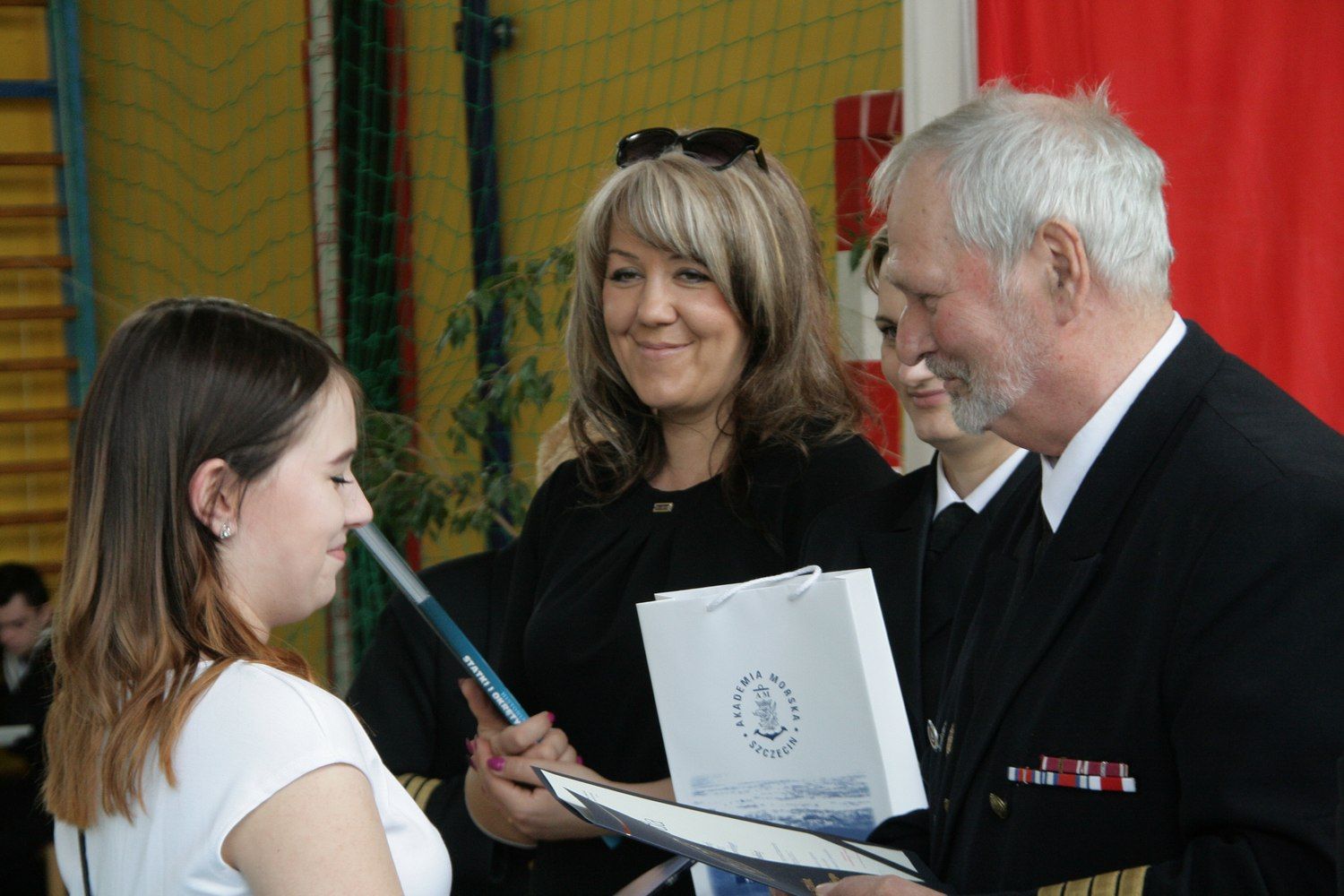 W uroczystości uczestniczyli przedstawiciele władz miasta: wiceprzewodniczący Rady Miasta Zdzisław Merchelski, Przewodniczący Komisji Edukacji RM-Waldemar Buczyński oraz przedstawiciele władz Akademii Morskiej w Szczecinie Prorektor ds. Nauczania dr inż. Agnieszka Deja, Dziekan Wydziału Nawigacyjnego kpt. ż.w. Remigiusz Dzikowski oraz kpt.ż.w. i kpt. ż.ś. Jacek Frydecki . Podczas uroczystości wyróżniono najlepszych absolwentów. Złoty Medal Absolwenta przyznawany najlepszemu absolwentowi szkoły otrzymała z rąk pierwszego absolwenta szkoły, Przewodniczącego Komisji Edukacji RM kpt. ż.w. Waldemara Buczyńskiego absolwentka Technikum Morskiego w zawodzie technik logistyk Magdalena Jaskulska. Za ukończenie szkoły z wyróżnieniem nagrodzono: Paulinę Ekiert- absolwentkę kierunku technik informatyk oraz Julię Kudlińską z klasy technik logistyk. Wyróżniono również najlepszych absolwentów kierunku nawigator morski- Martynę Jagodzińską i Adriana Borowskiego oraz Jakuba Rymszę absolwenta kierunku technik mechanik okrętowy Nagrody za aktywna pracę w Samorządzie Uczniowskim odebrał Karol Zdunkiewicz, a za aktywność  w działalności sportowej  otrzymała Marianna Litwiniec. Nagrody najlepszym absolwentom ufundowała również Pani Prorektor Akademii Morskiej dr inż Agnieszka Deja. Dyrektor ZSM podziękowała Pani Przewodniczącej Rady Rodziców Agnieszce Nowickiej za wieloletnią pracę w Radzie Rodziców i wspieranie rozwoju szkoły.