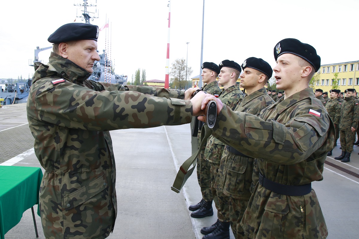 Komendant  Portu Wojennego Świnoujście, kmdr Marek Bartkowski, uroczyście przywitał nowoprzybyłych i omówił najważniejsze aspekty trwającego turnusu szkolenia przygotowawczego. Następnie wręczył broń delegacji elewów, którzy 8 maja 2017 r. przybyli brać udział w szkoleniu przygotowawczym do Narodowych Sił Rezerwowych.
