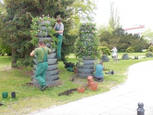Także w innych miejscach Świnoujścia pracują ogrodnicy układając kwiatowe kompozycje.