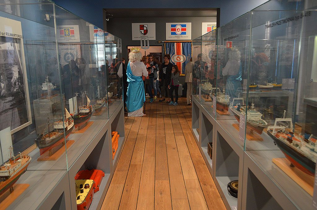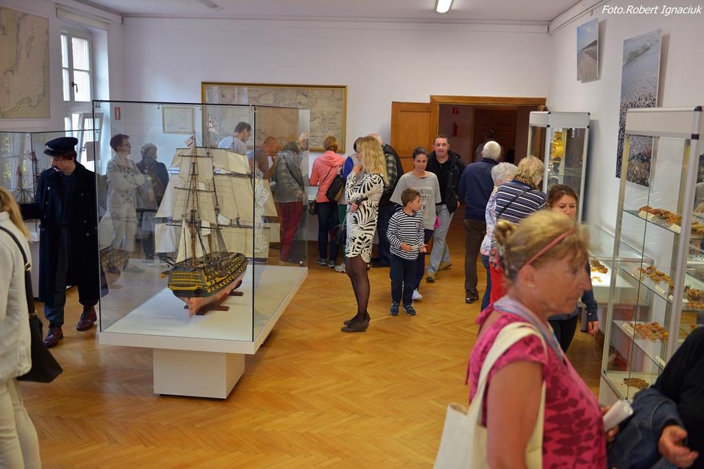 Tego wieczoru można było zobaczyć tematyczne wystawy. Wśród nich: dawne narzędzia połowowe, przyrządy nawigacyjne, modele żaglowców. Duże zainteresowanie wzbudziła wystawa związana z dawną Odrą.