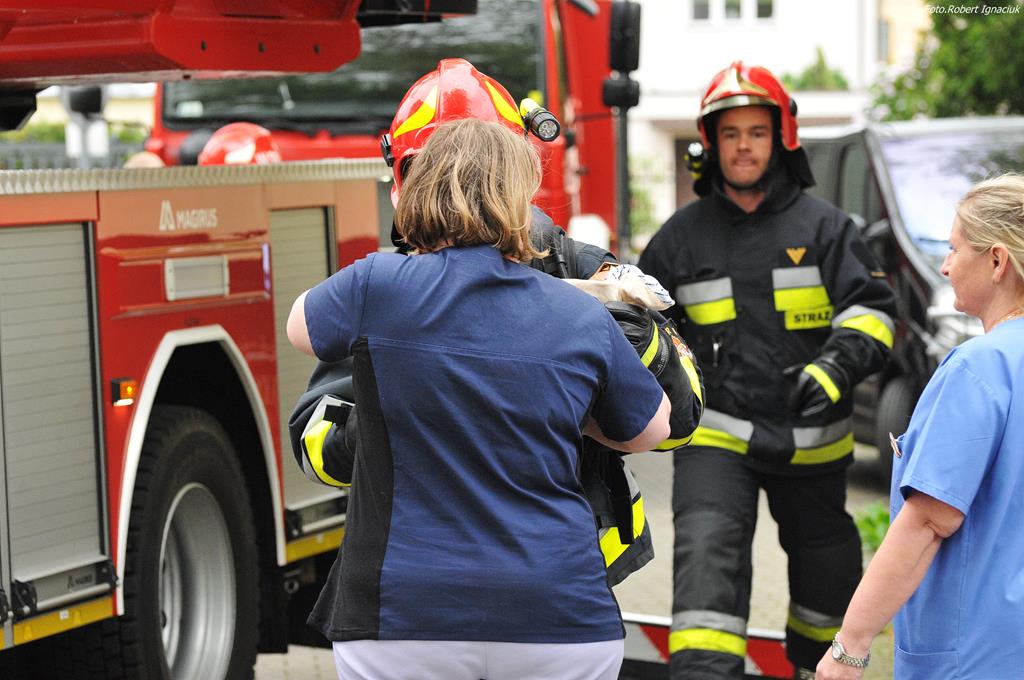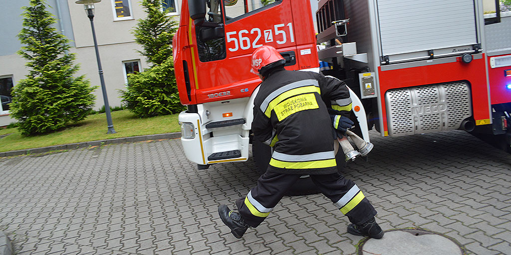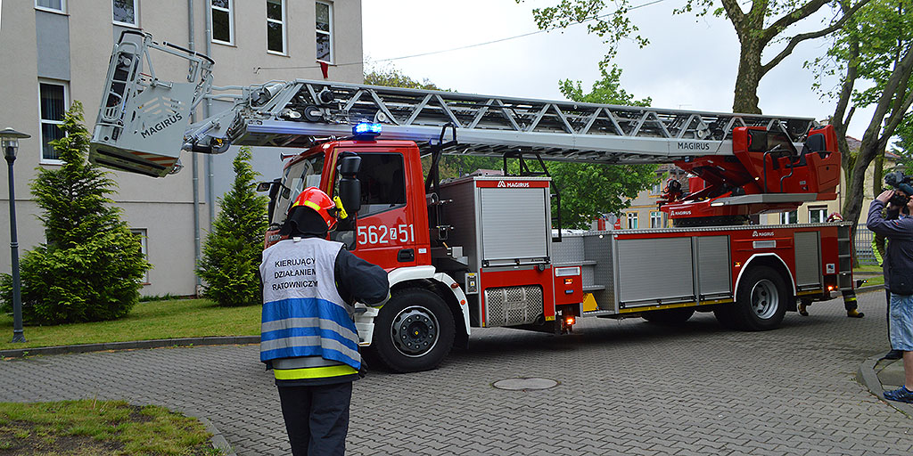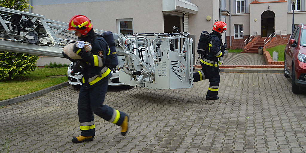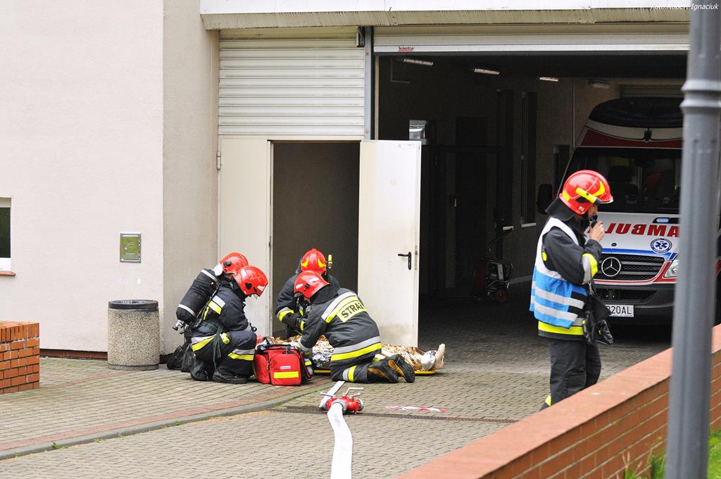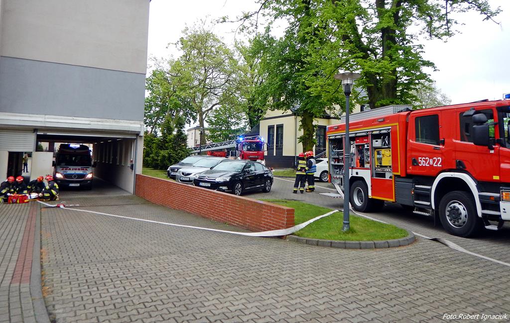 Trzy zastępy straży pożarnej uczestniczyły w ćwiczeniach zorganizowanych w Szpitalu Miejskim im. Jana Garduły. Scenariusz ćwiczeń zakładał pożar na oddziale położniczo-ginekologicznym. Strażacy za pomocą podnośnika ewakuowali noworodka z I piętra. W tym samym czasie inni ratownicy udzielali pomocy poszkodowanemu pracownikowi szpitala.