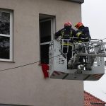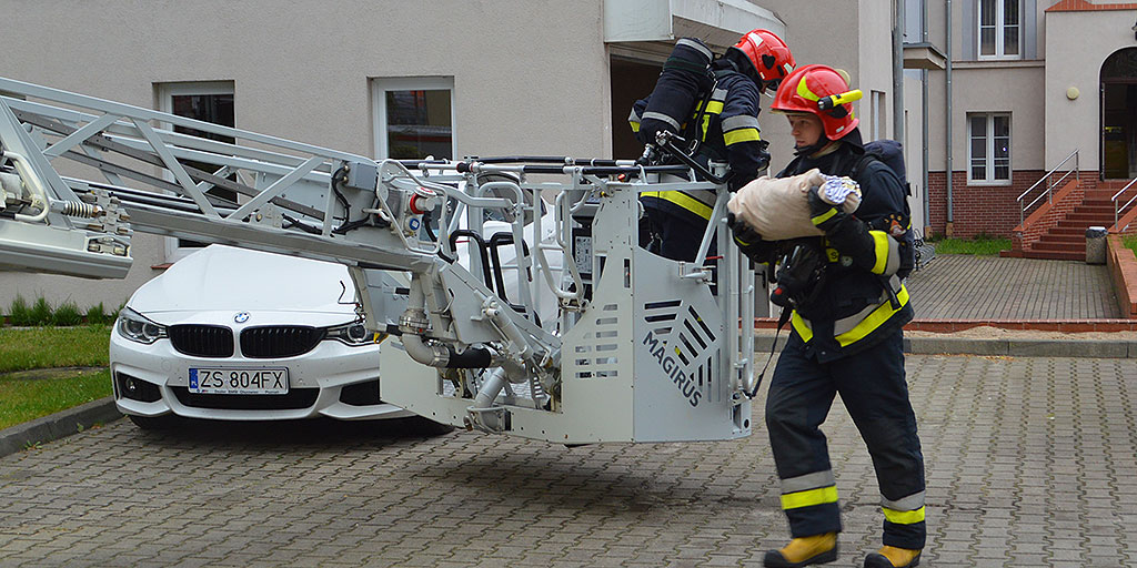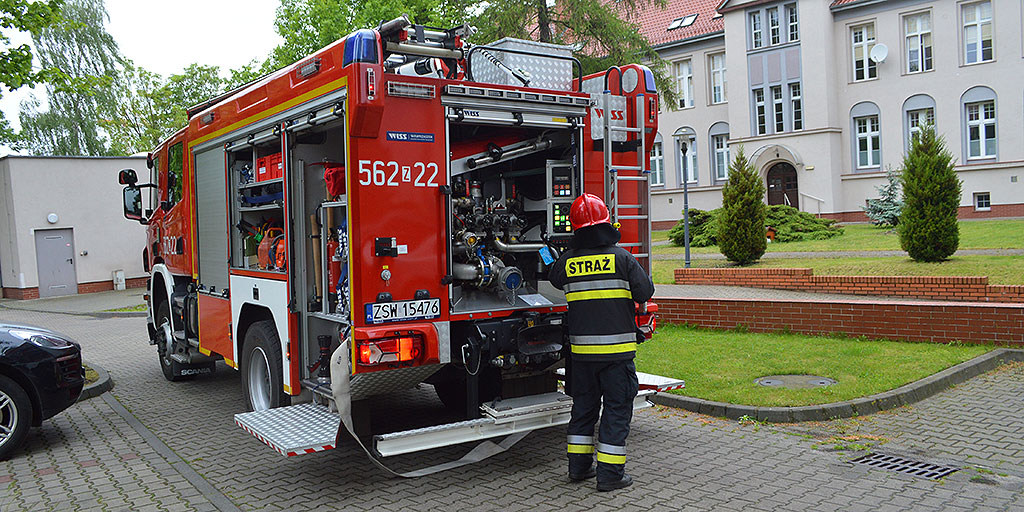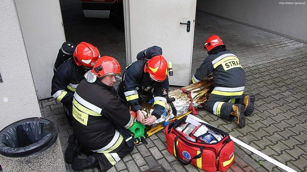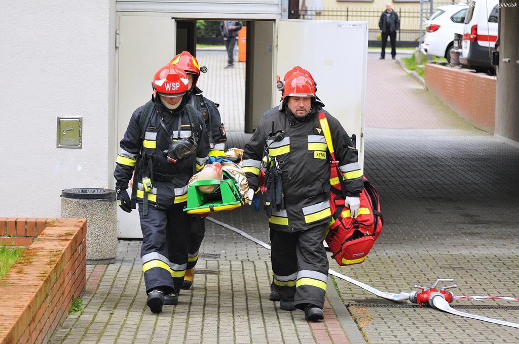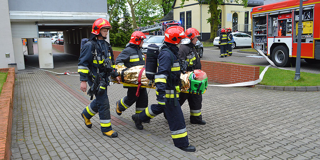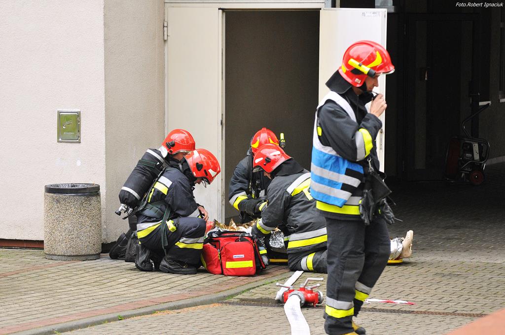 Trzy zastępy straży pożarnej uczestniczyły w ćwiczeniach zorganizowanych w Szpitalu Miejskim im. Jana Garduły. Scenariusz ćwiczeń zakładał pożar na oddziale położniczo-ginekologicznym. Strażacy za pomocą podnośnika ewakuowali noworodka z I piętra. W tym samym czasie inni ratownicy udzielali pomocy poszkodowanemu pracownikowi szpitala.