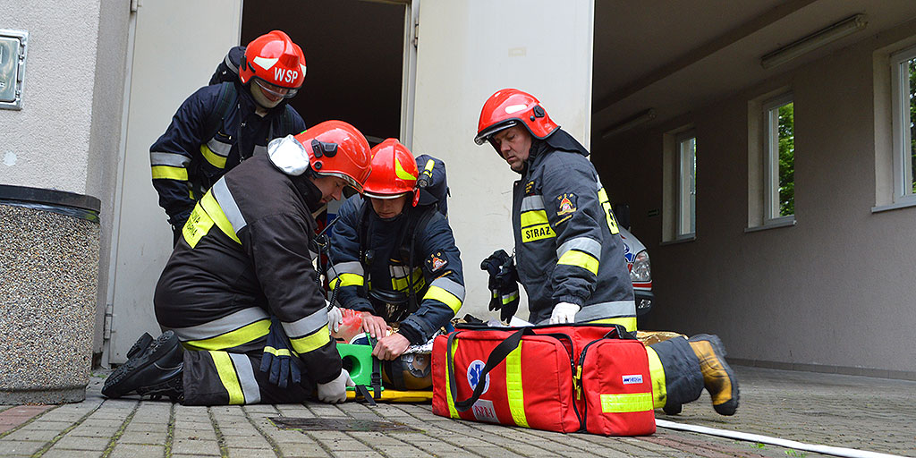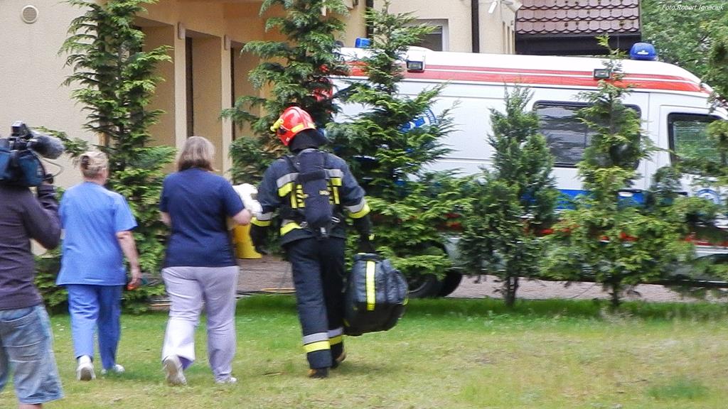 Ćwiczenia pożarniczo-ratownicze zorganizowano z udziałem pozorantów, personelu szpitala, i Komunikacji Autobusowej.