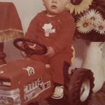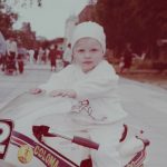 Pani Joanna była śliczna dziewczynka z bardzo rezolutnym spojrzeniem. Typ prymuski. Za to pan Jan jakiś taki pasujący do tego traktorka i wtedy i dzisiaj. Pan Janusz chyba chciał się pochwalić że miał swój mały rower co na tamte czasy było wyjątkiem. Za to pan redaktor bardzo patriotyczne od najmłodszych lat.