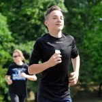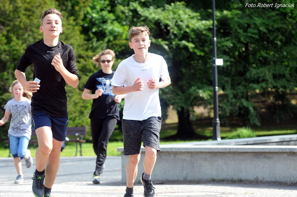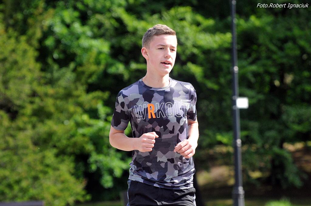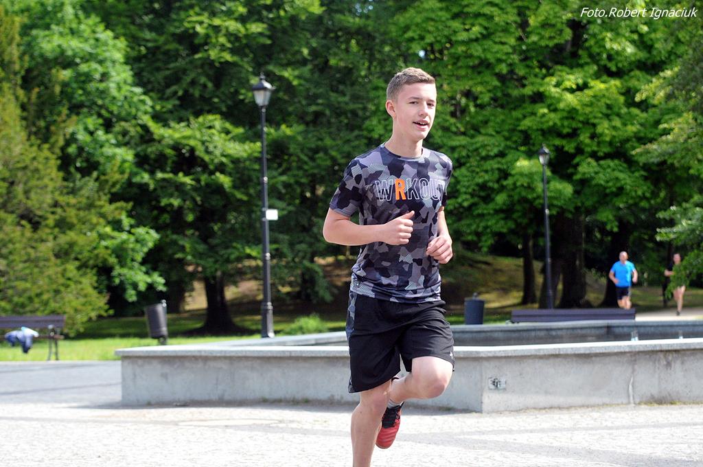 Po głównym biegu parkrunowym o godz. 10.00 wystartowali juniorzy na dystansie 600m. Blisko 40 sprinterów zmierzyło się z tym dystansem i tutaj walka była bardziej zacięta niż u przedszkolaków, bo puchary czekały dla zwycięzców na mecie.