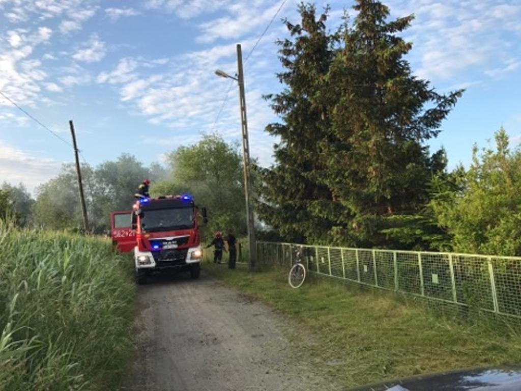 Tragiczny finał pożaru w Karsiborze. Strażacy nad ranem zostali powiadomieni o przyczepie stojącej w ogniu. Po dojechaniu na miejsce przyczepa była w końcowym stadium pożaru.