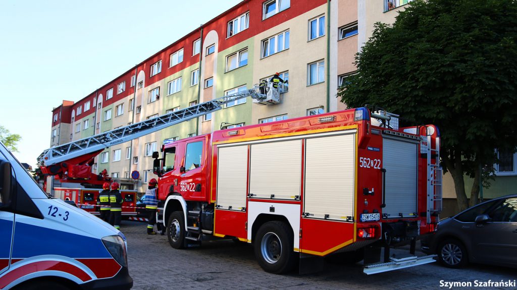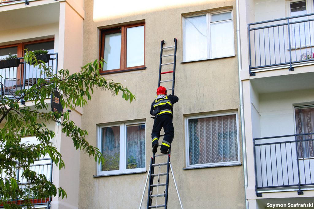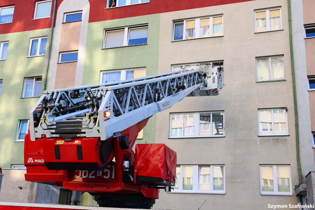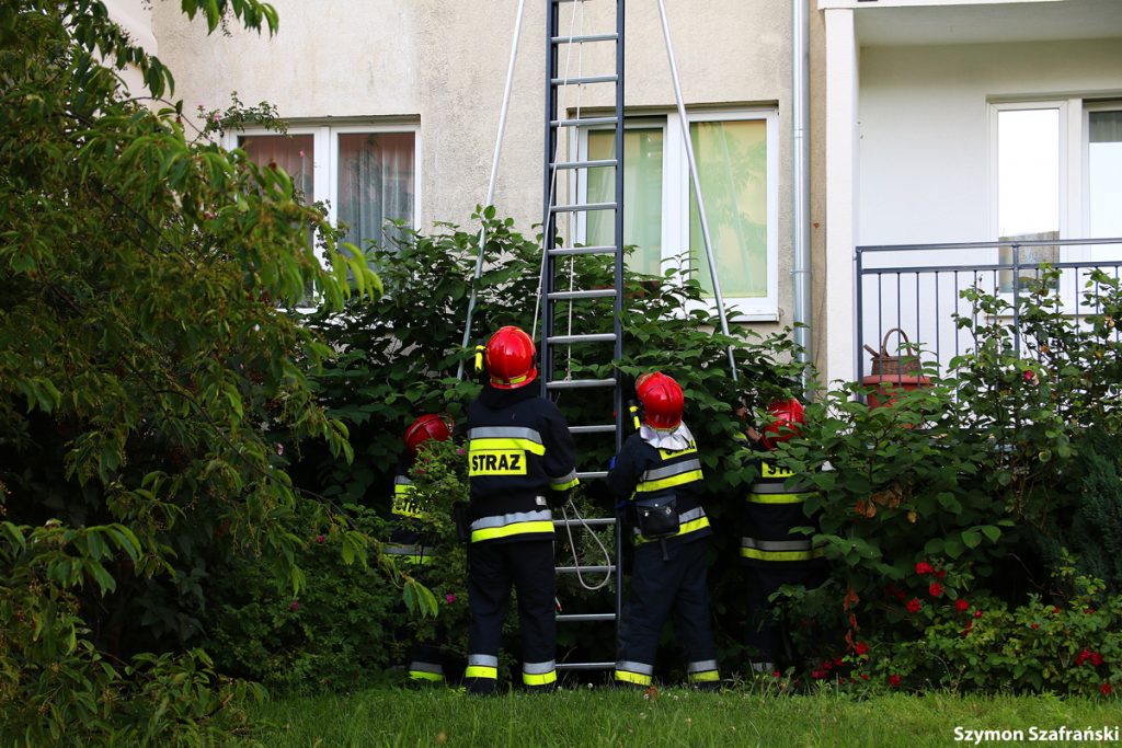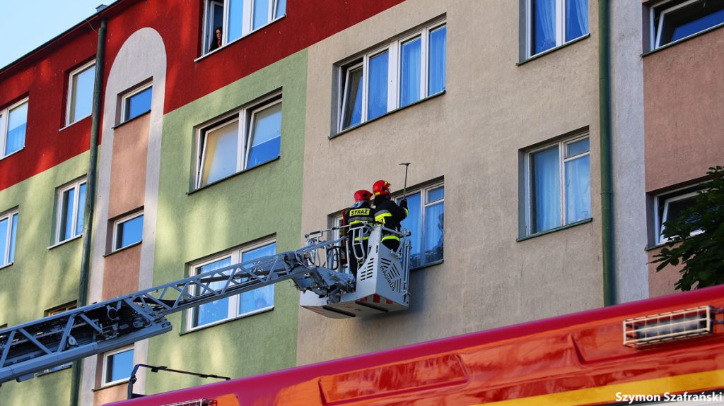 W poniedziałkowy wieczór około godziny 18.30 służby zostały zawiadomione przez zaniepokojonego sąsiada o kobiecie wołającej pomocy w mieszkaniu obok. Na miejsce zostały wysłane dwa zastępy straży pożarnej, zespół ratownictwa medycznego oraz patrol policji. Początkowo strażacy próbowali wejść do mieszkania za pomocą drabiny, ale ostatecznie użyto podnośnika hydraulicznego zamontowanego na wozie strażackim. Strażacy wybili okno i weszli do środka wpuszczając ratowników medycznych. Kobiecie została udzielona pierwsza pomoc. Została zabrana do szpitala.