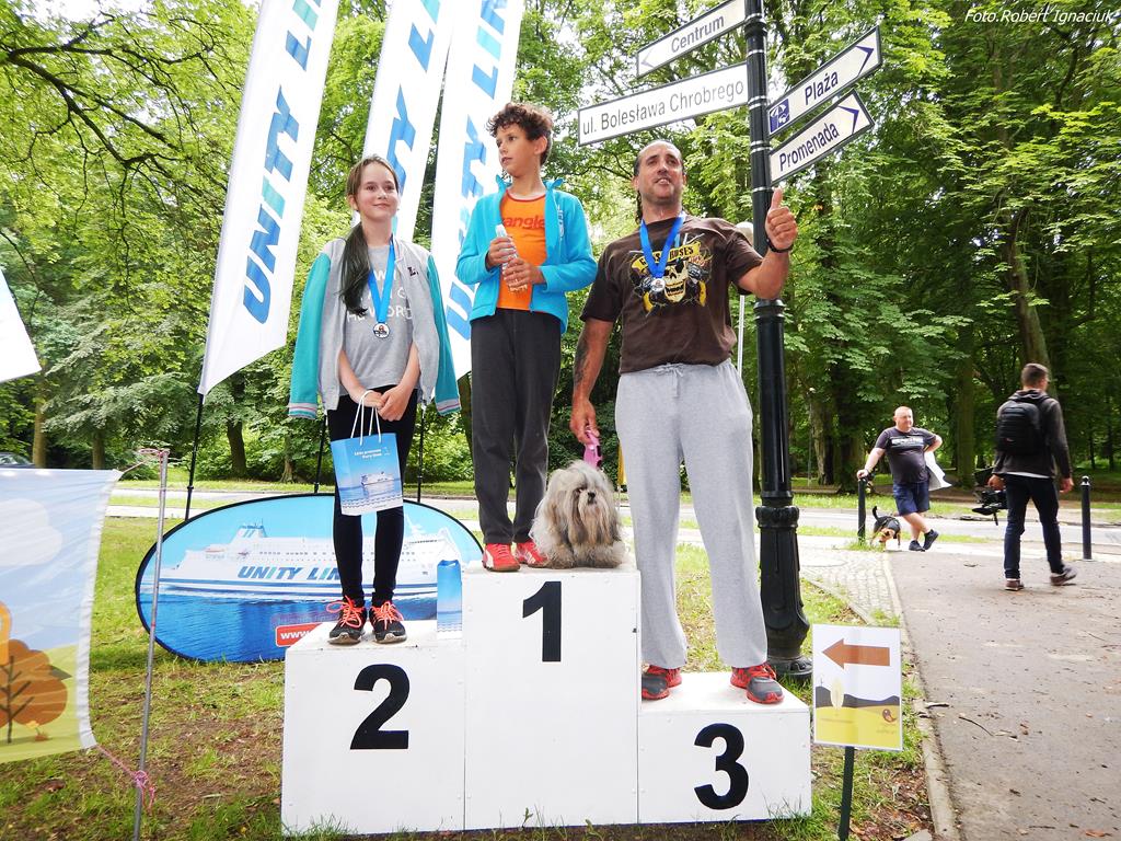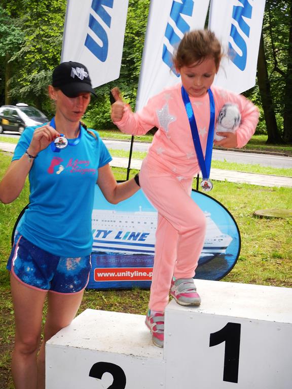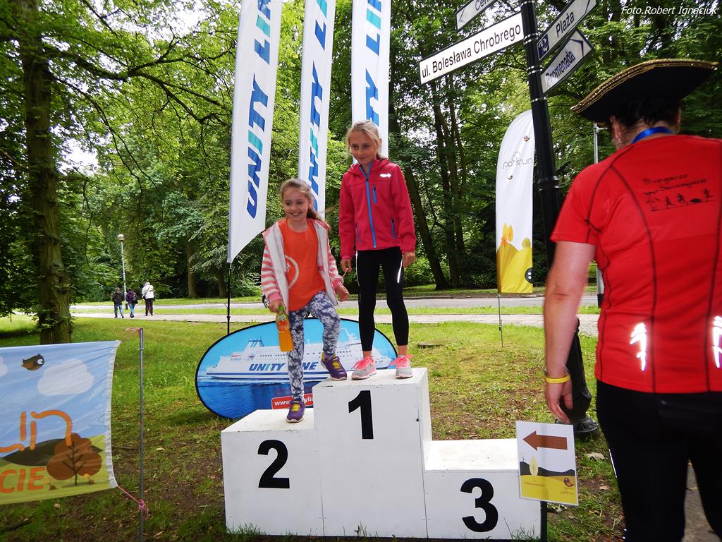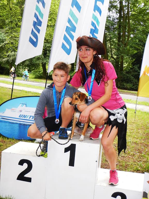 Na szczególne podziękowania zasługuje jednak nasza najmłodsza wolontariuszka piratka Zuzia Romańska, bo jeszcze nikt nie wręczał na mecie medali z takim wdziękiem. Jesteśmy wdzięczni naszym stałym sponsorom Uzdrowisku Świnoujście, Hotelowi „Trzy Wyspy” i Stowarzyszeniu Trzeźwościowemu „HOL” oraz sponsorom dzisiejszego biegu: Unity Line i Januszowi Walkowiakowi a także panu Wiceprezydentowi Pawłowi Sujce za wsparcie imprezy i pani Anecie Kruk z MDK za wypożyczenie pirackich strojów.